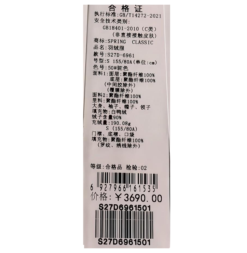 西贝伦羽绒服S27D6961