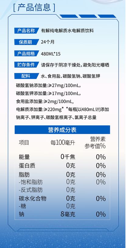 屈臣氏有解纯电解质饮料一箱(480mlx15)