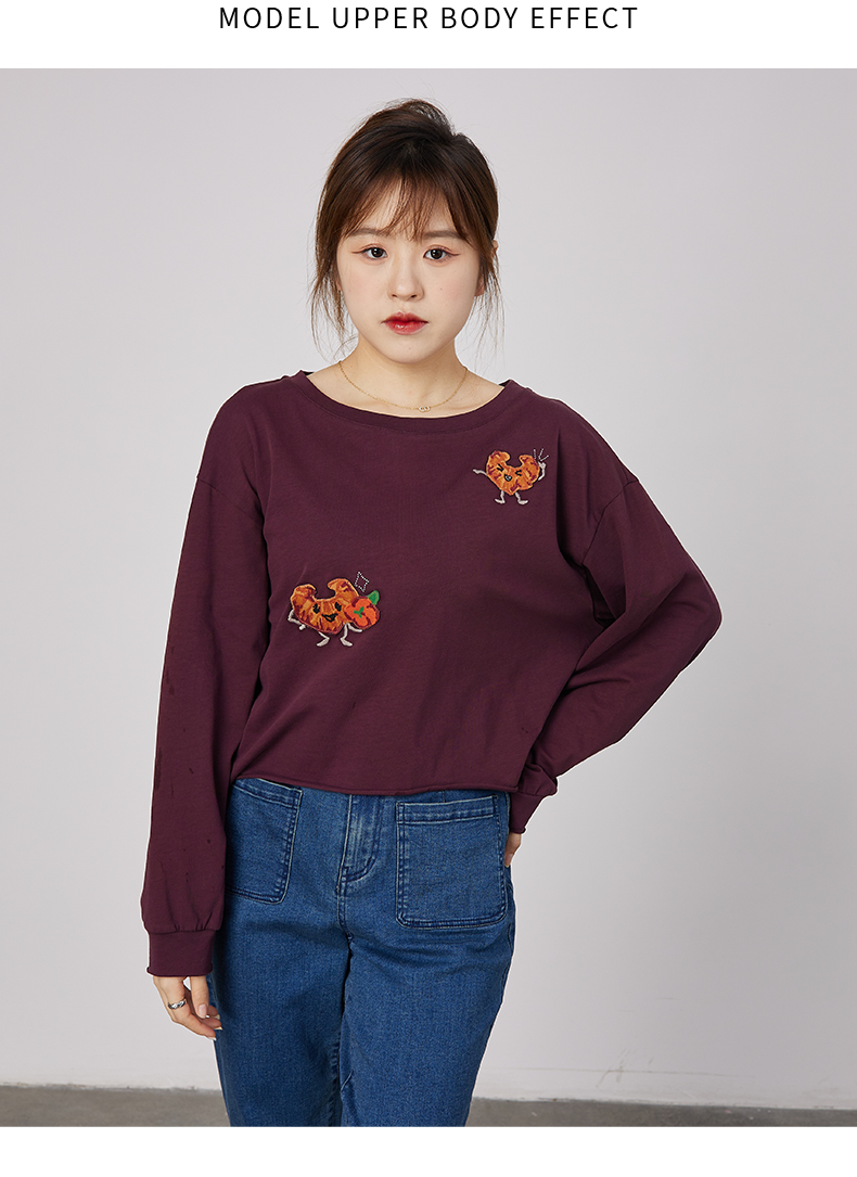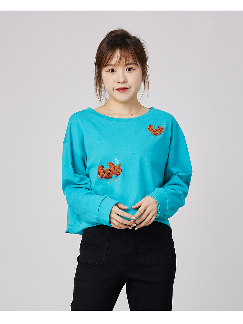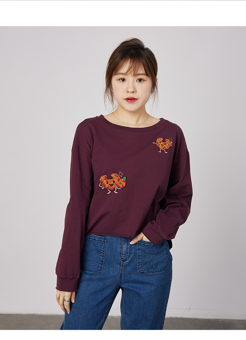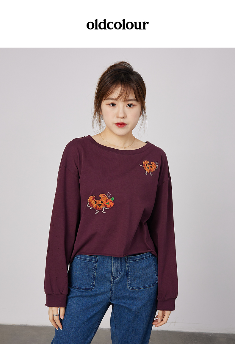 oldcolour春秋季商场同款刺绣上衣宽松长袖休闲T恤女N31023137