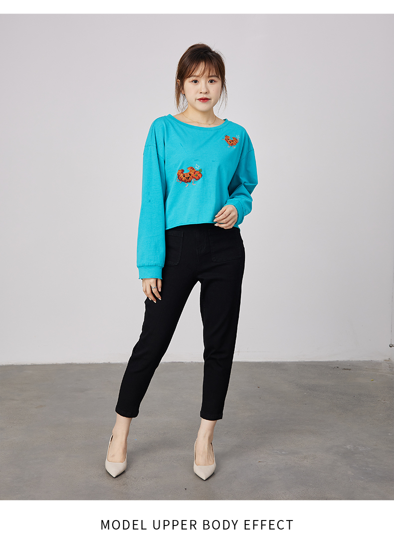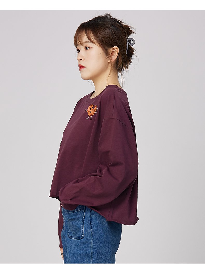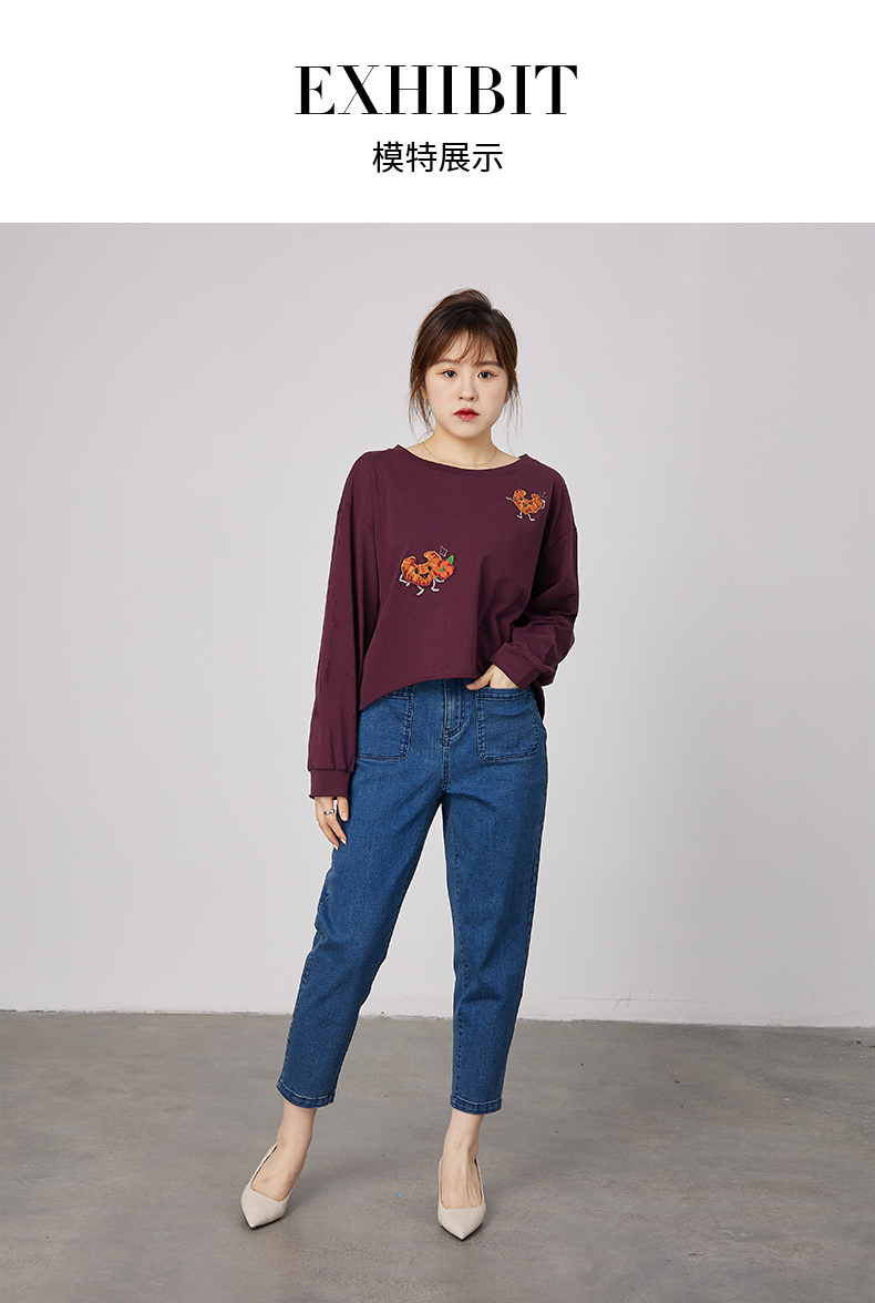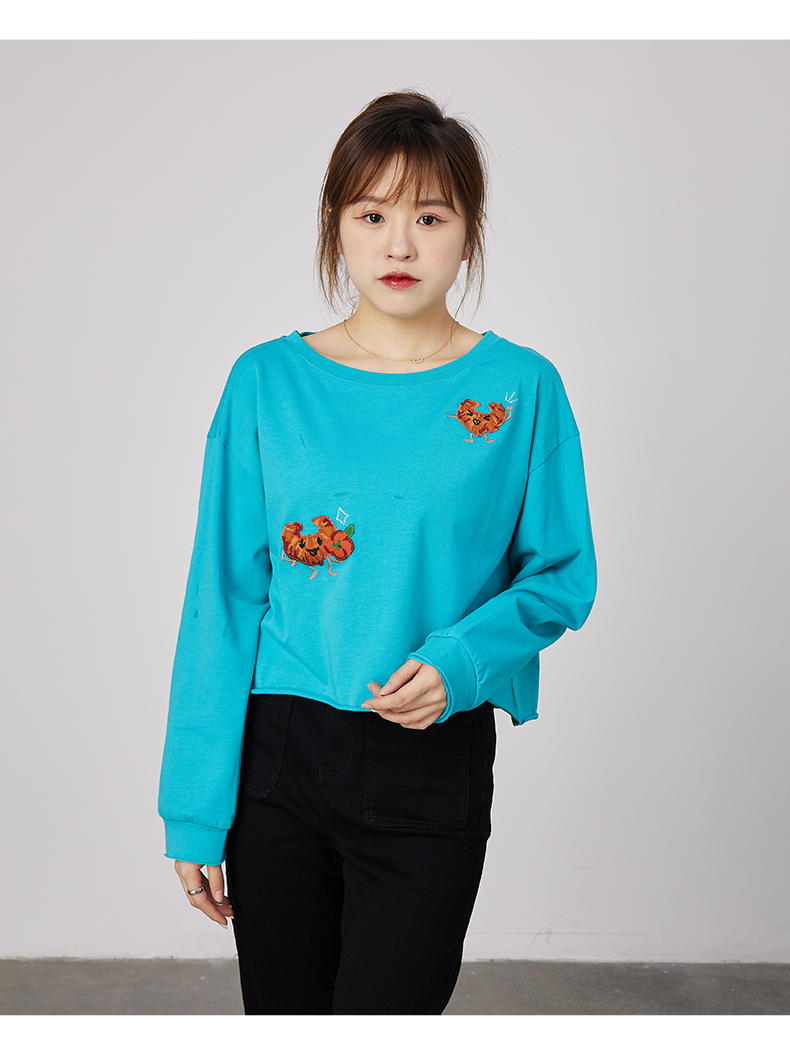 oldcolour春秋季商场同款刺绣上衣宽松长袖休闲T恤女N31023137