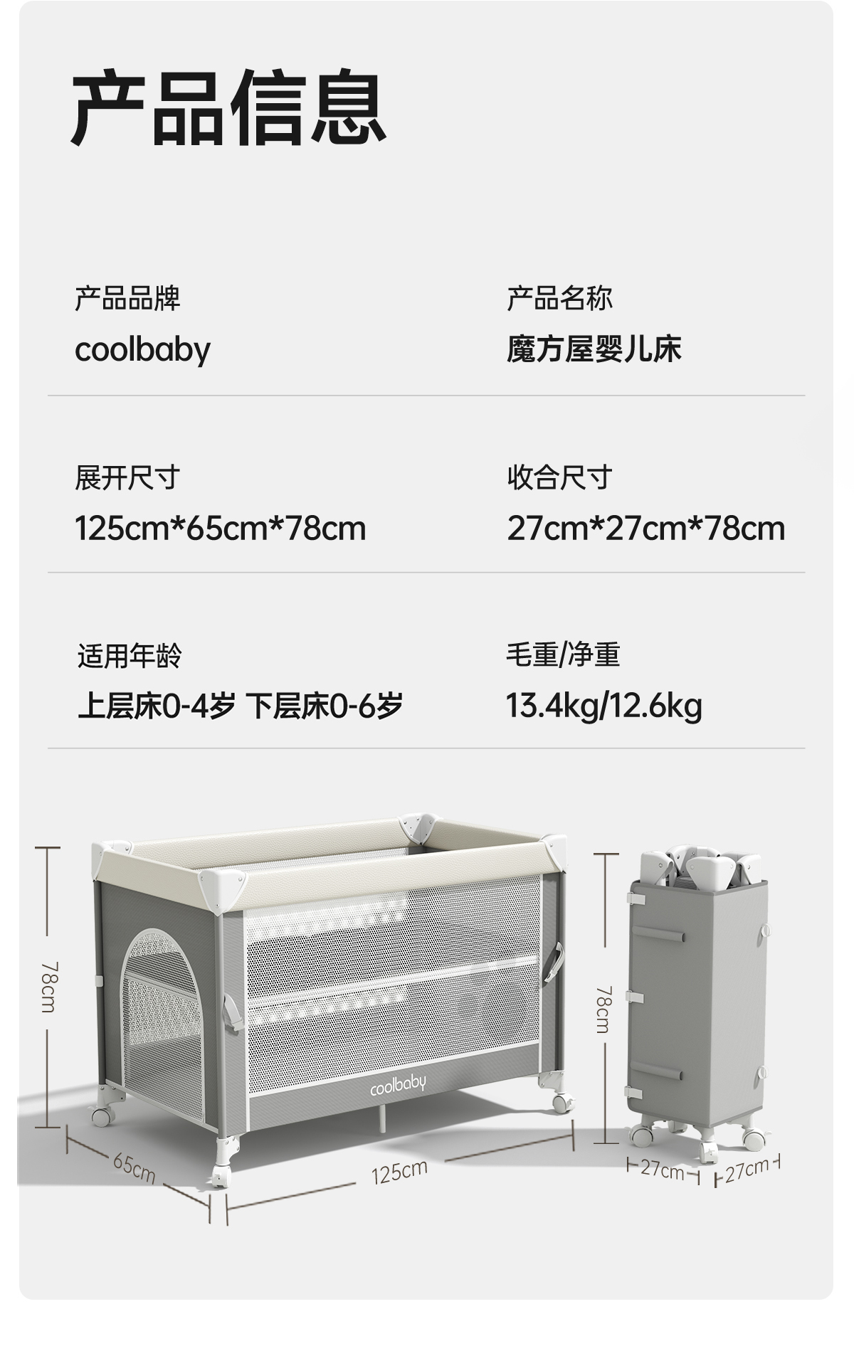 cool baby婴儿床可折叠宝宝床便携式外出简易床儿童床可移动小床