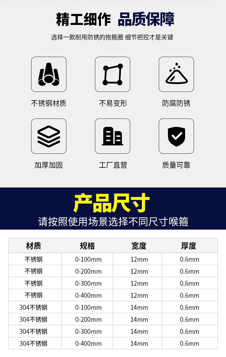 颜色分类: 12宽十字抱箍0-100 12宽十字抱箍0-200 12宽十字抱箍0-300 12宽十字抱箍0-400 14宽抱箍0-100 14宽抱箍0-200 14宽抱箍0-300 14宽抱箍0-400 20长不锈钢抱杆条 25长不锈钢抱杆条 30长不锈钢抱杆条 40长不锈钢抱杆条 50长不锈钢抱杆条