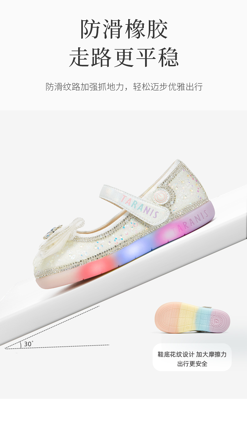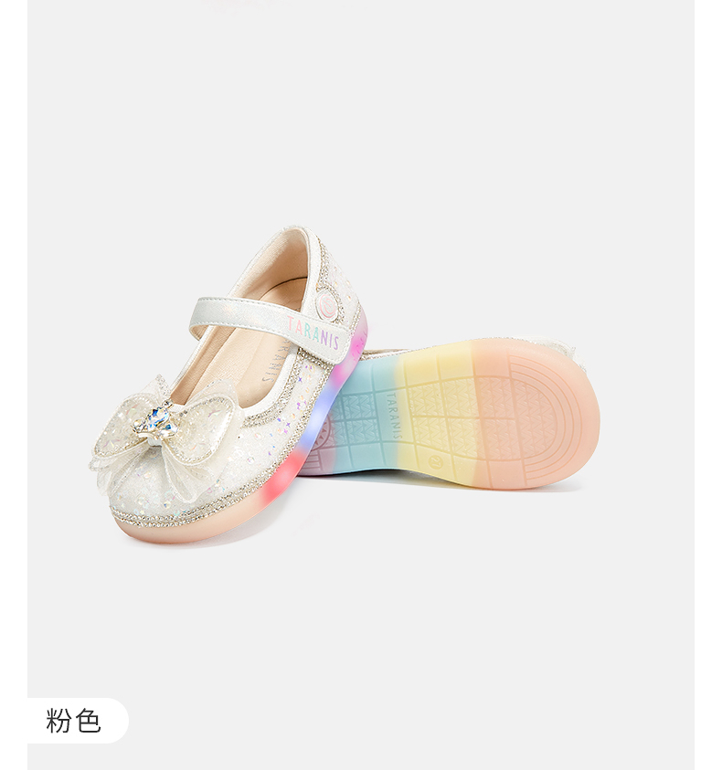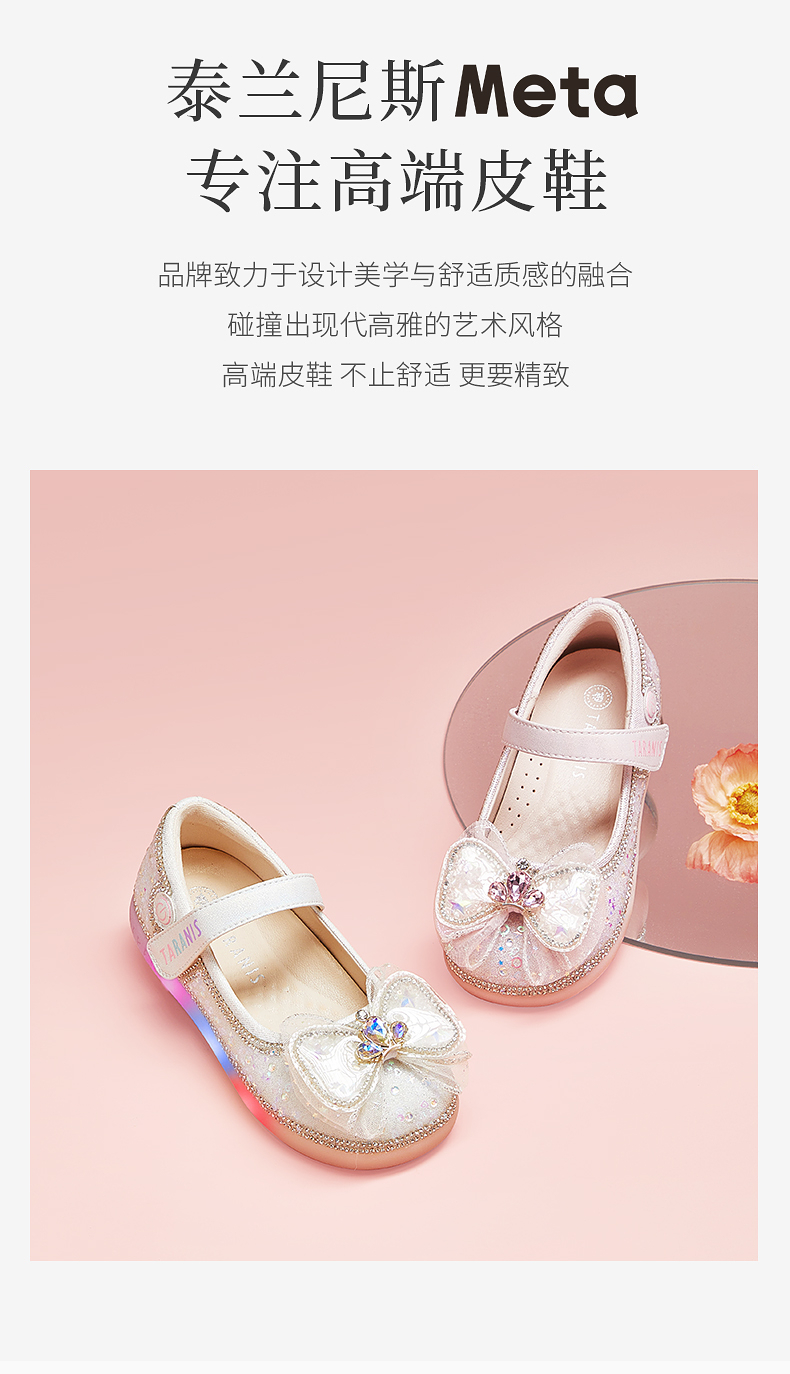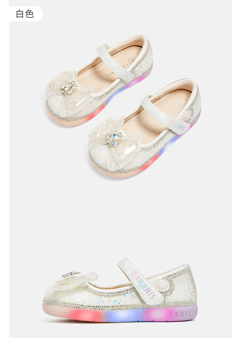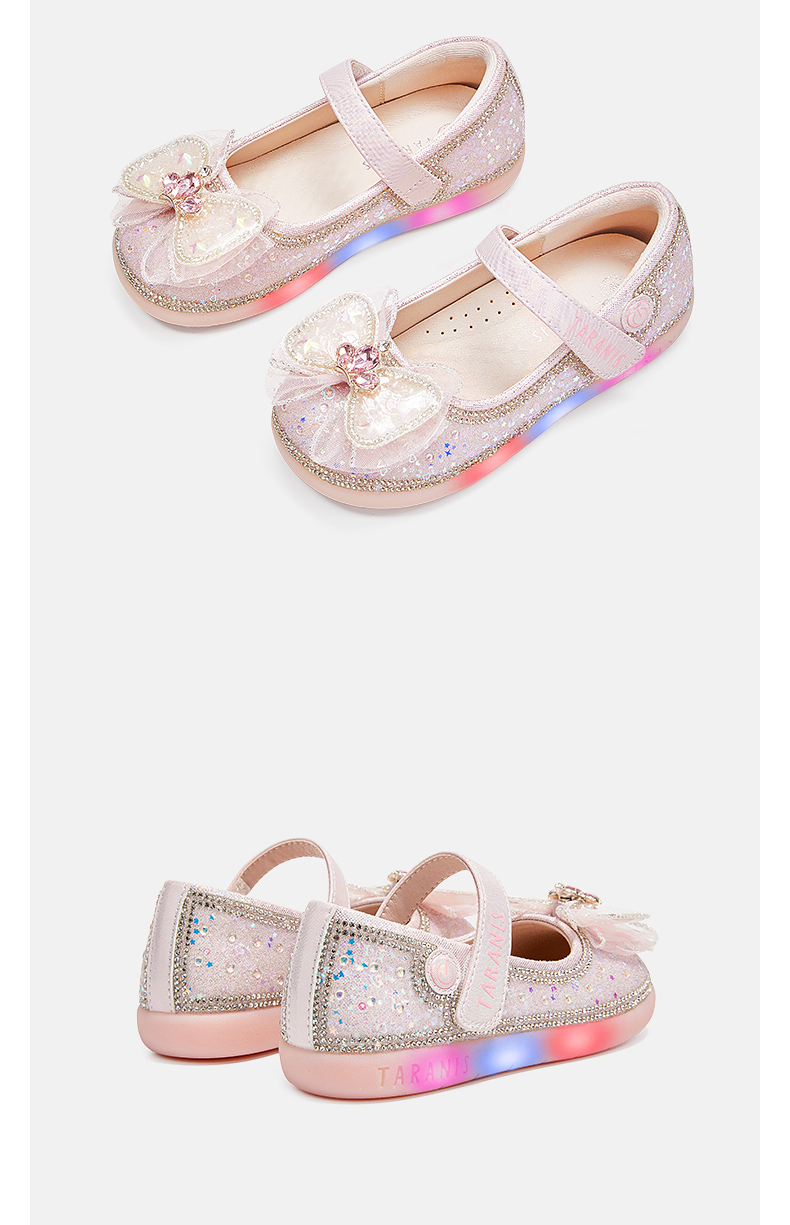 泰兰尼斯meta春季新品女童水晶鞋公主洋气软底皮鞋演出单鞋闪灯鞋 M03X5A6236
