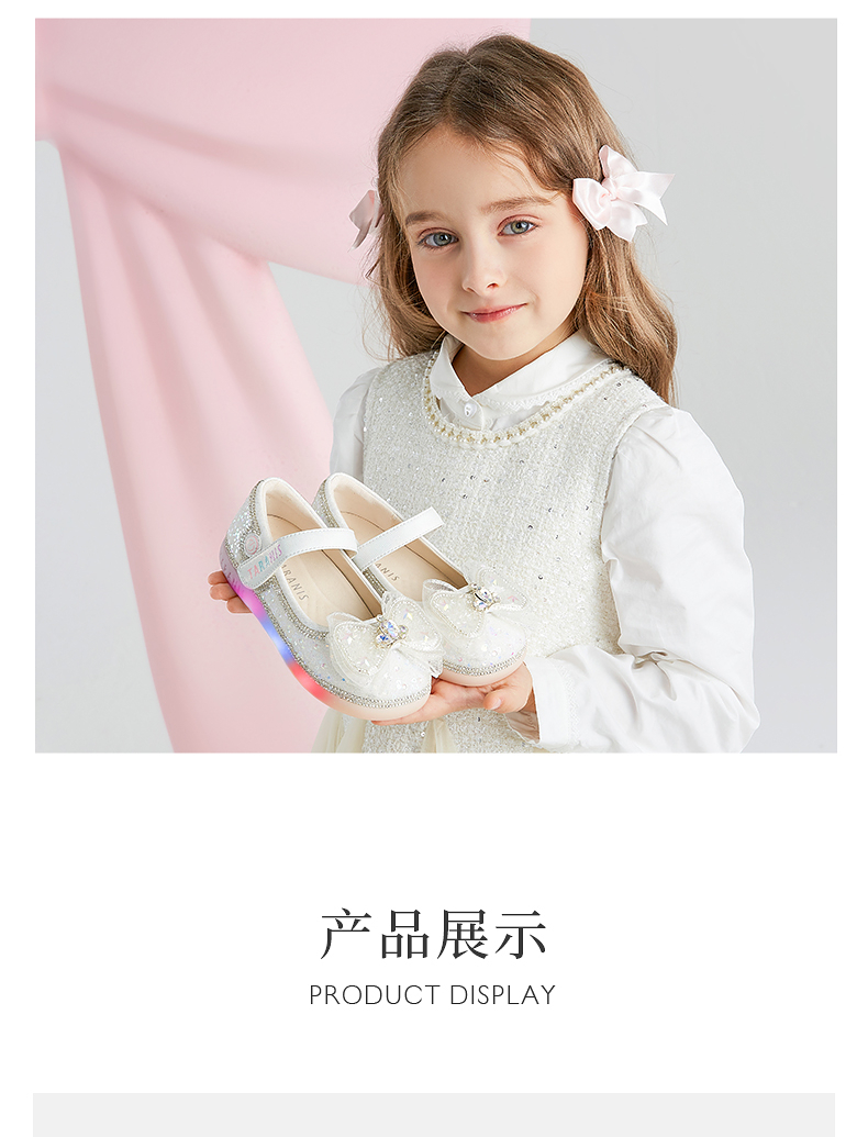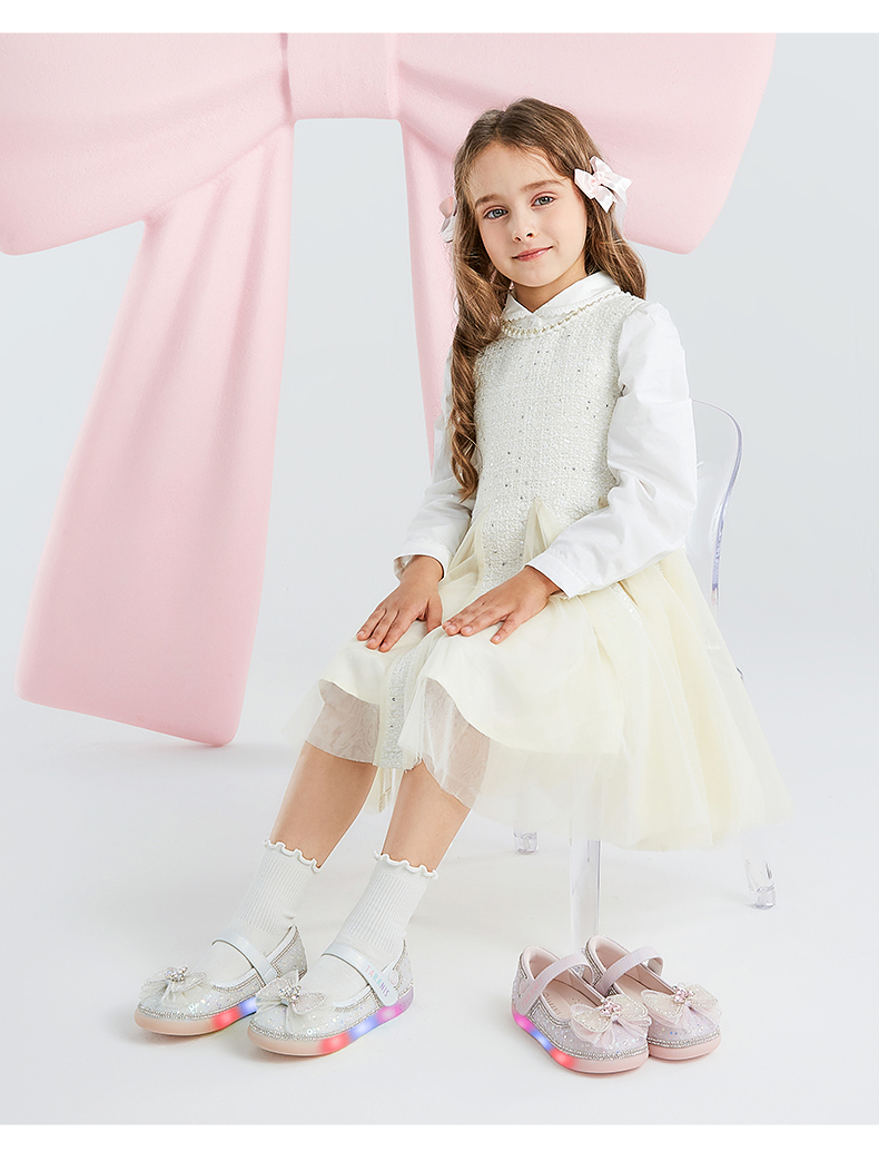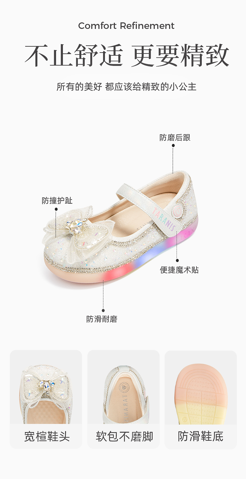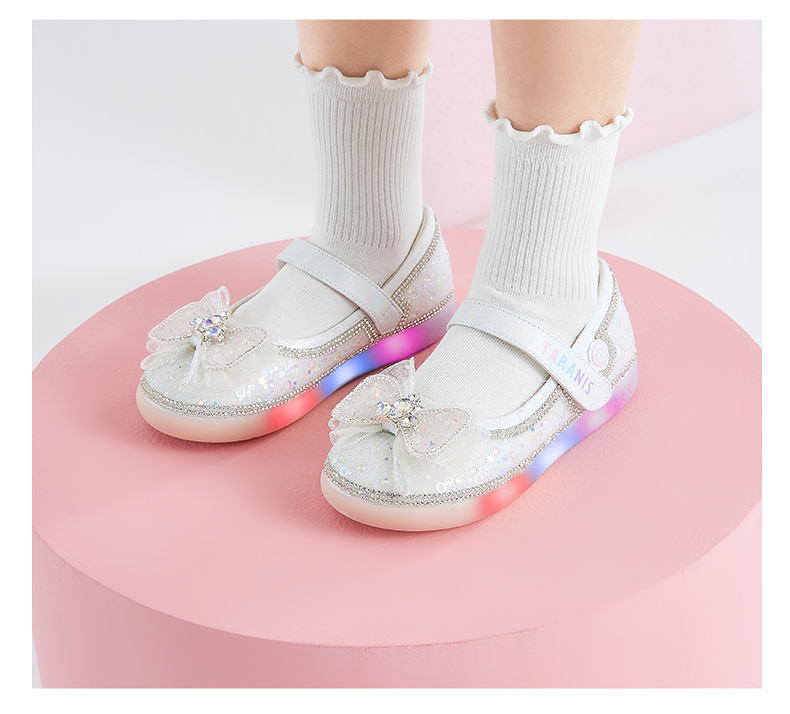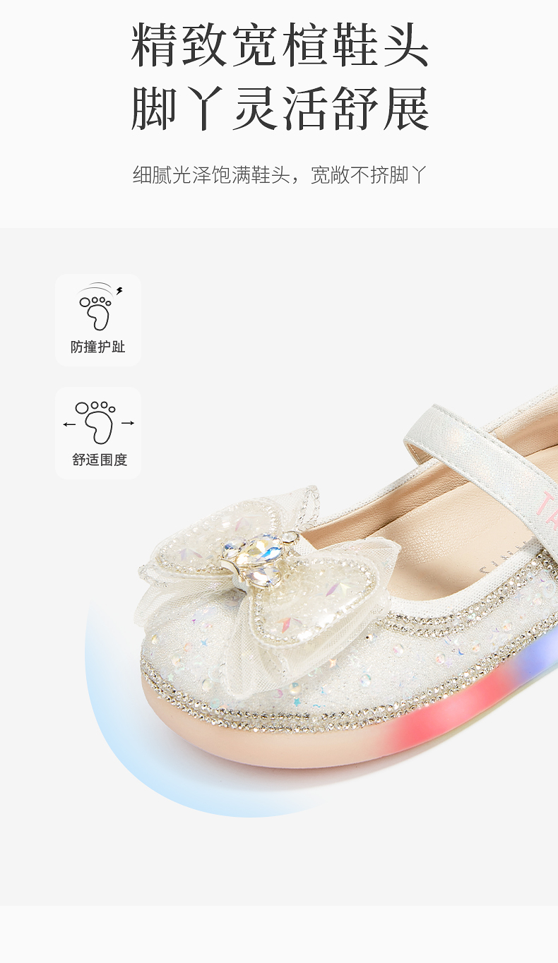 泰兰尼斯meta春季新品女童水晶鞋公主洋气软底皮鞋演出单鞋闪灯鞋 M03X5A6236