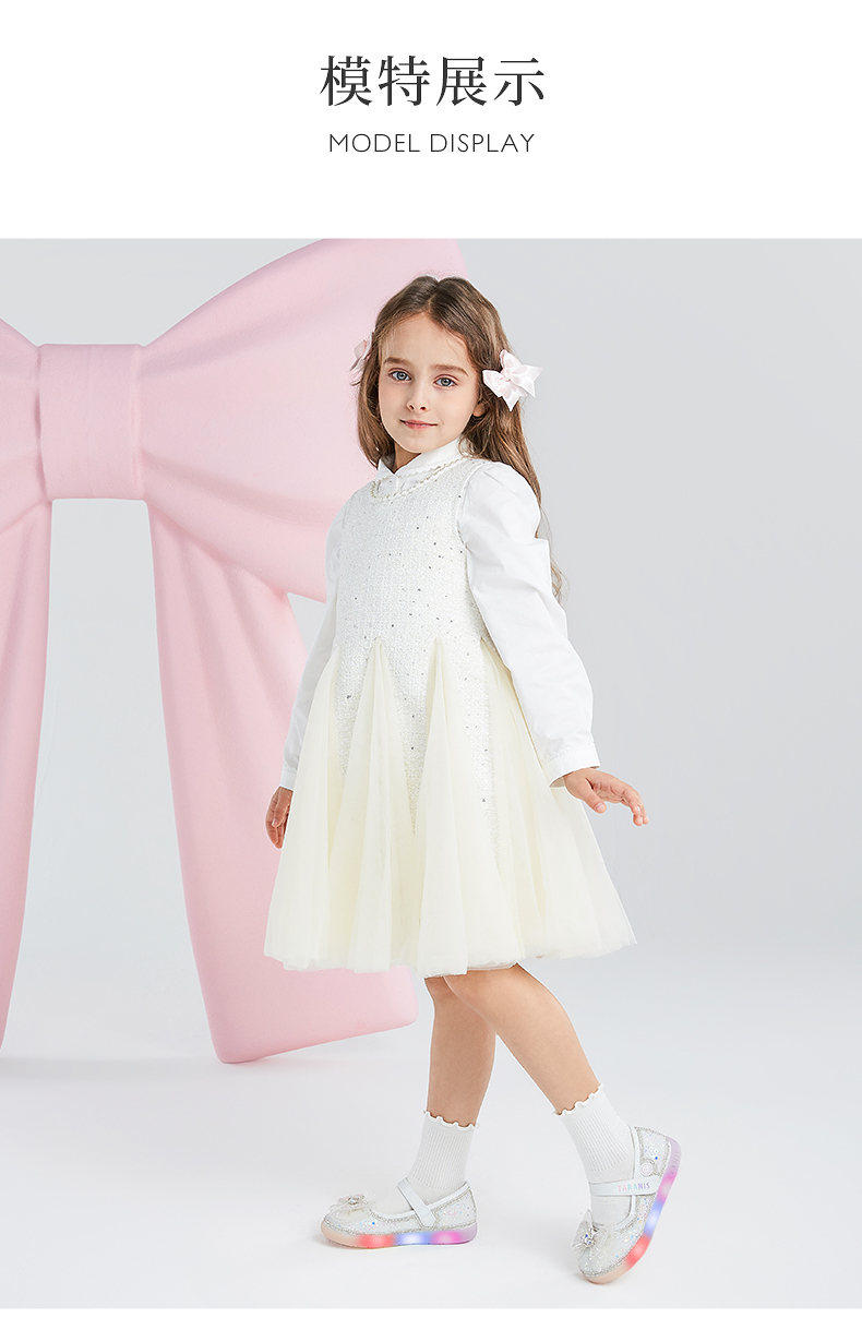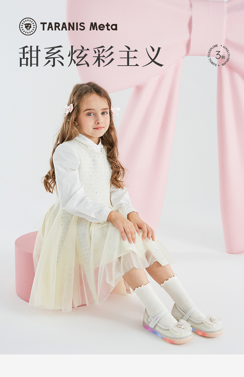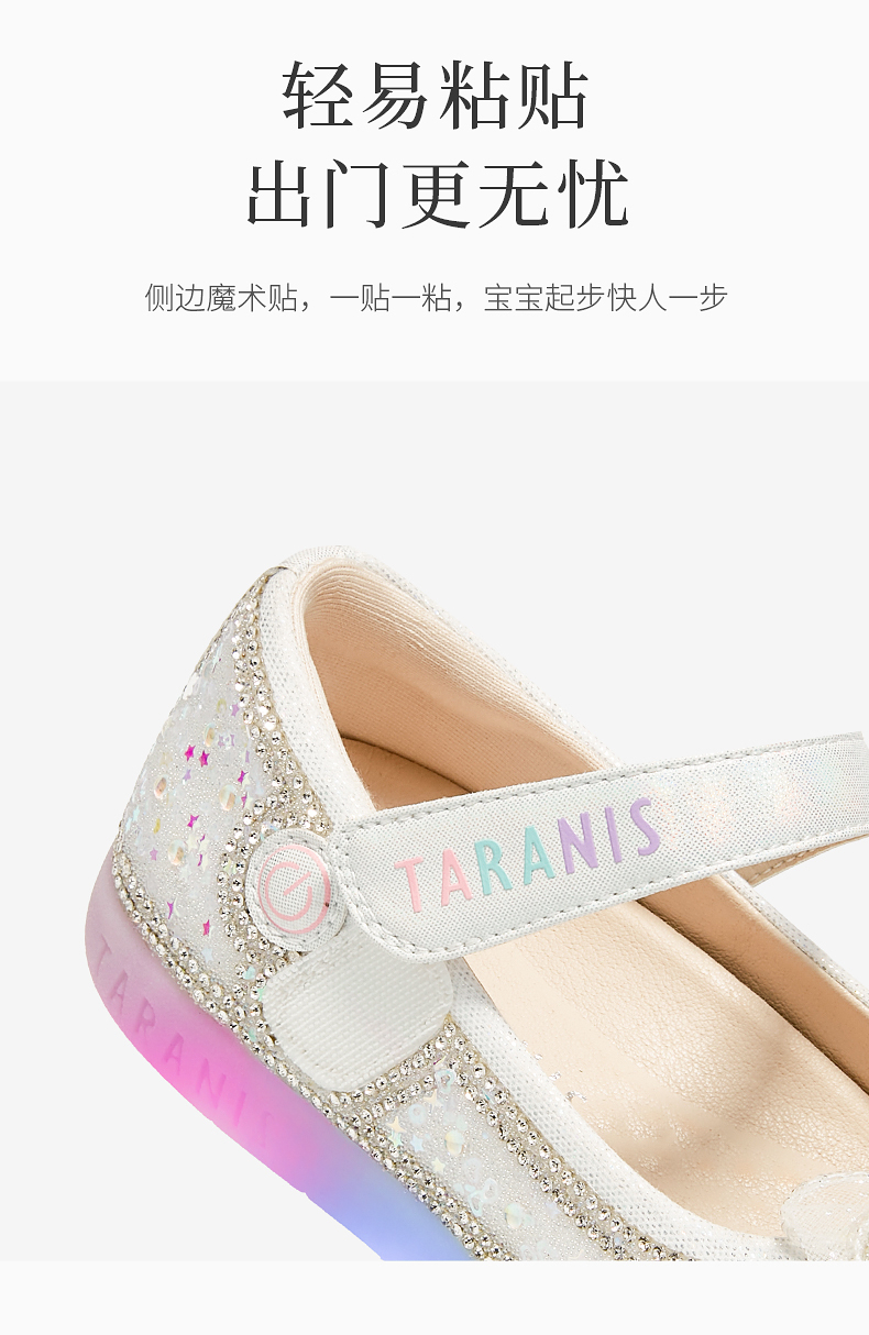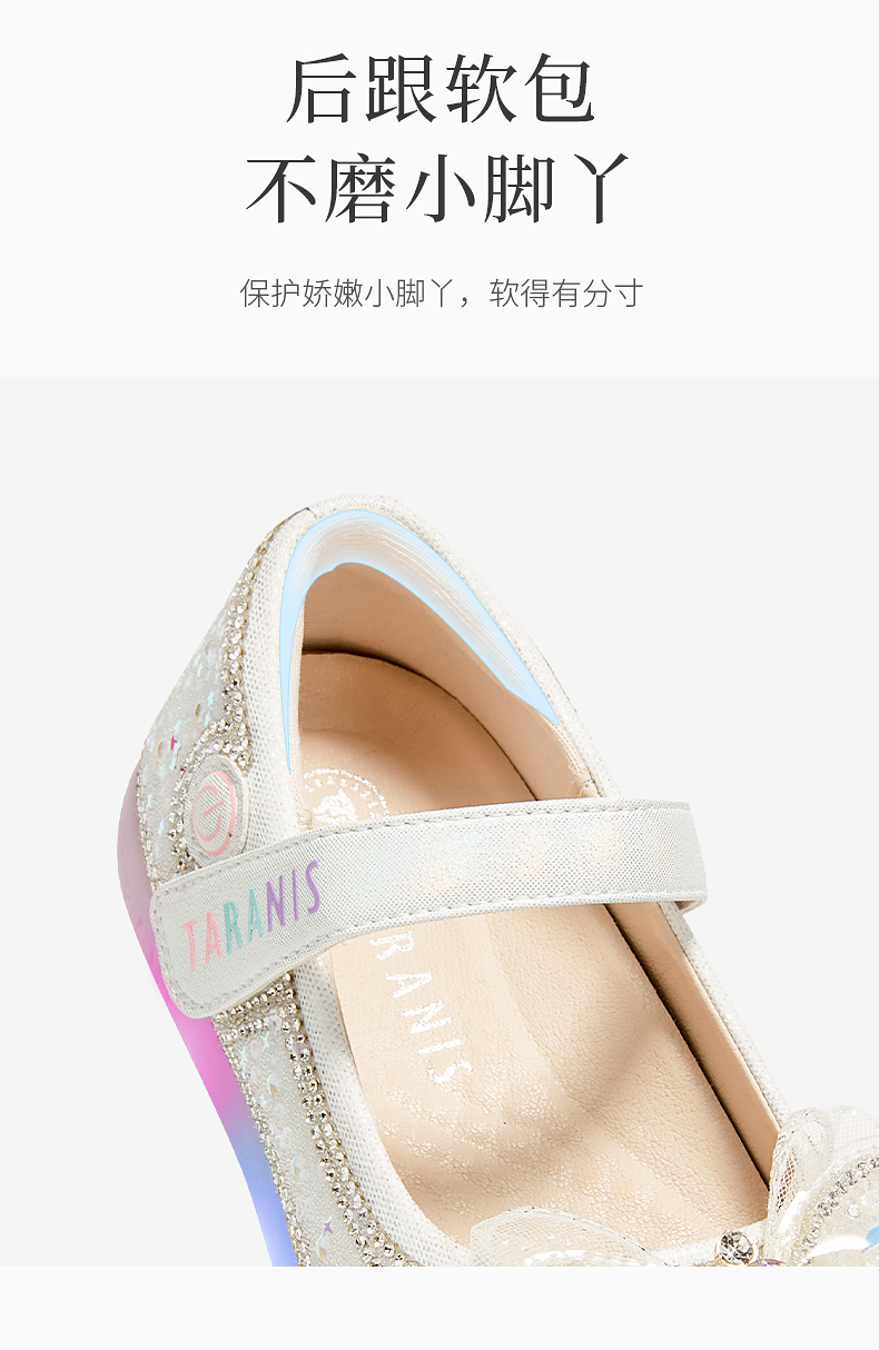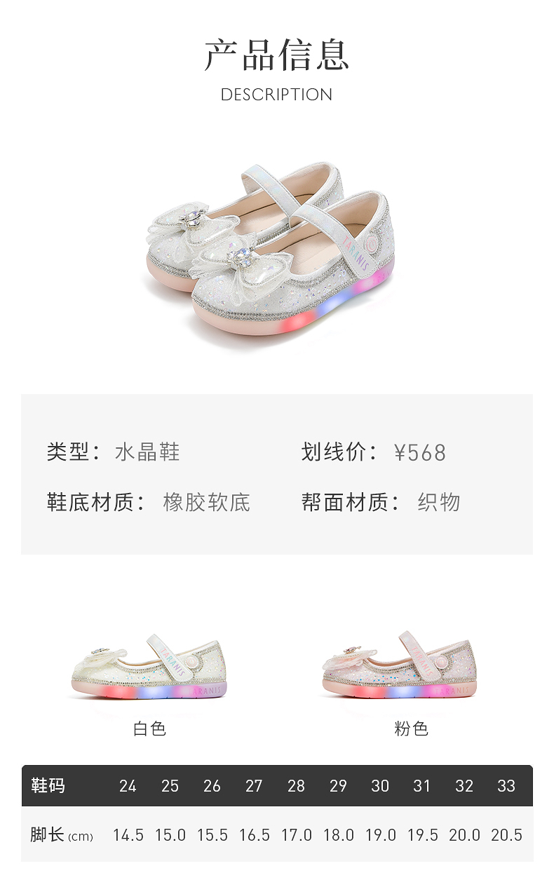 泰兰尼斯meta春季新品女童水晶鞋公主洋气软底皮鞋演出单鞋闪灯鞋 M03X5A6236