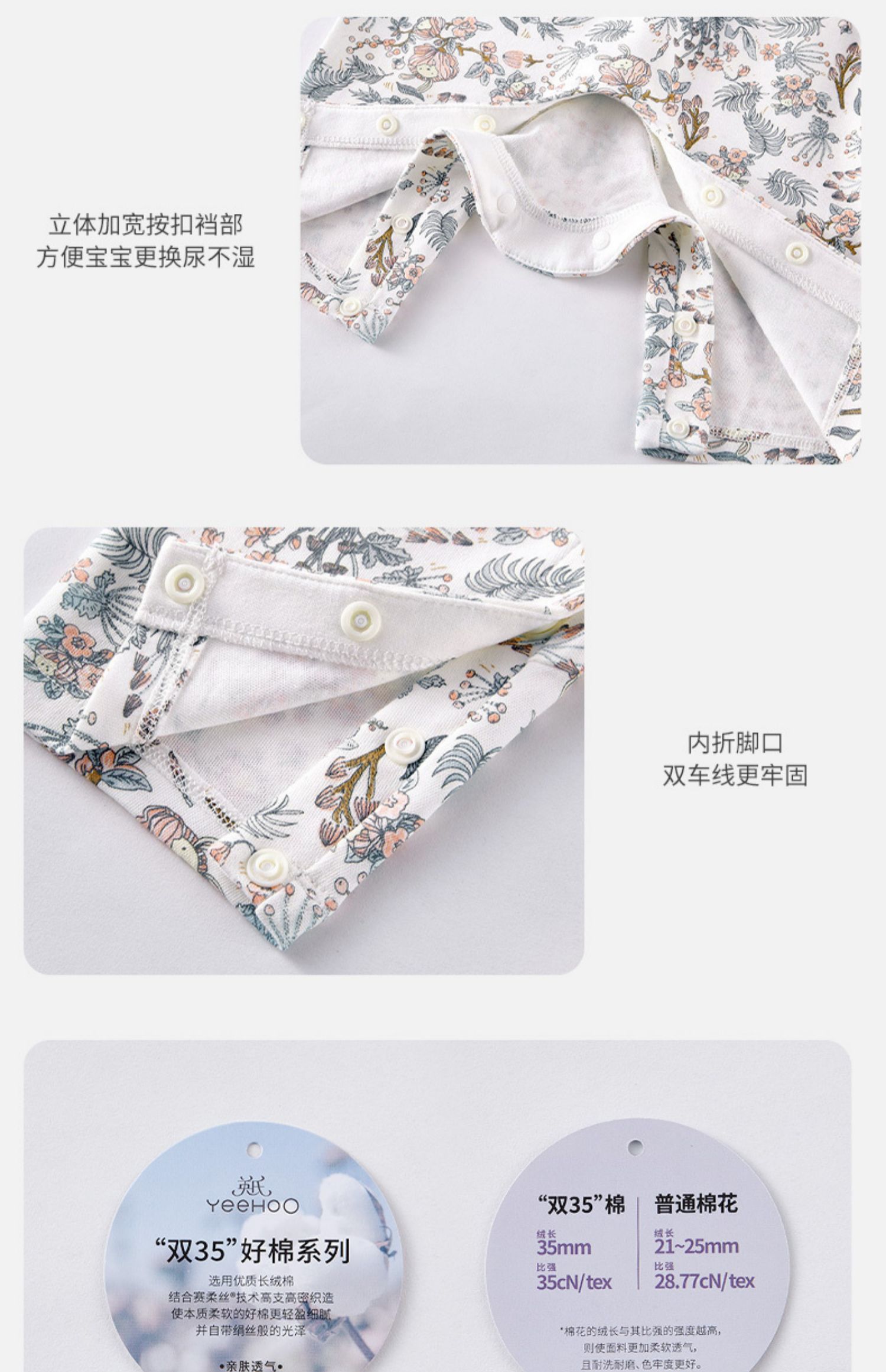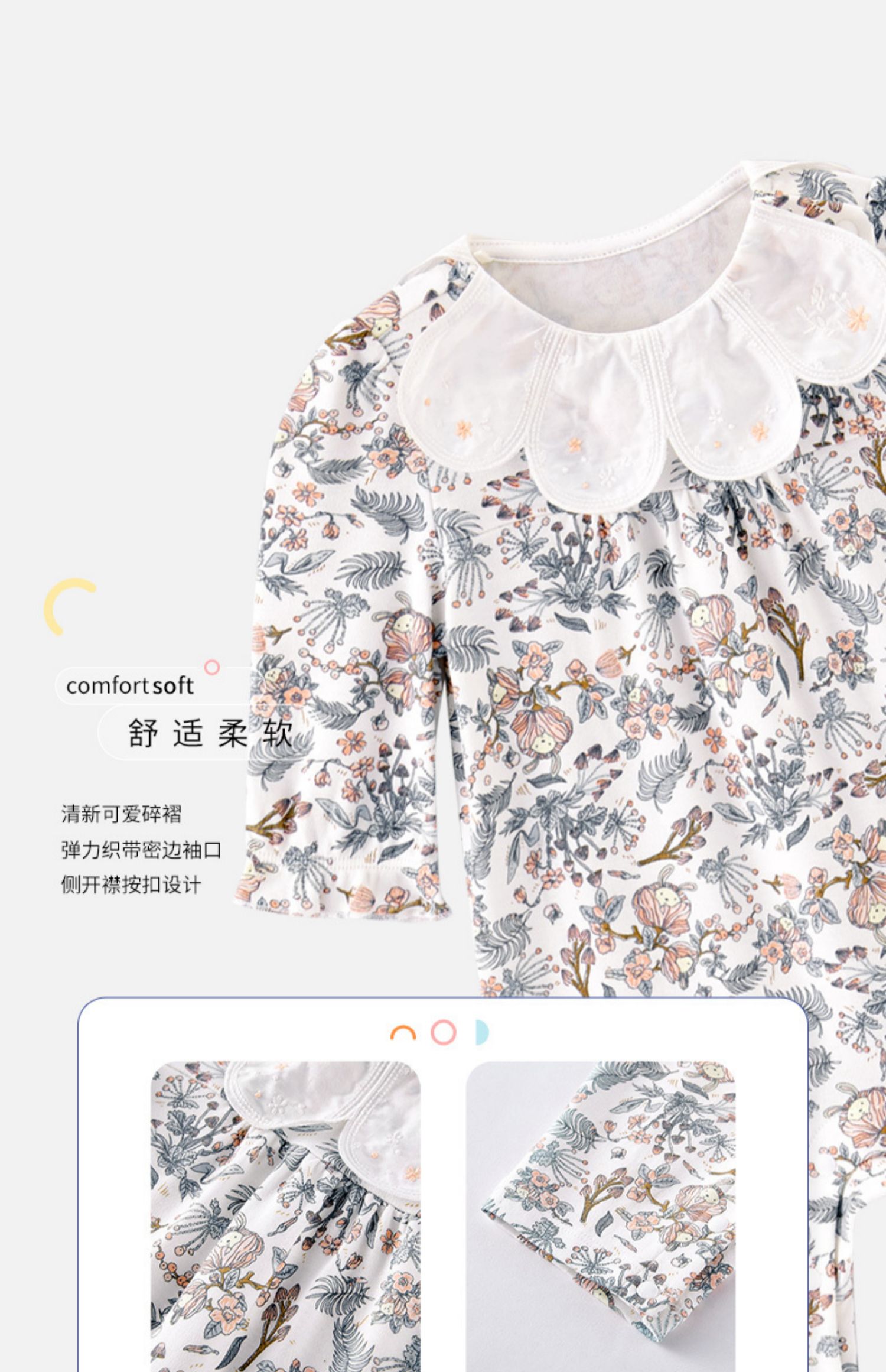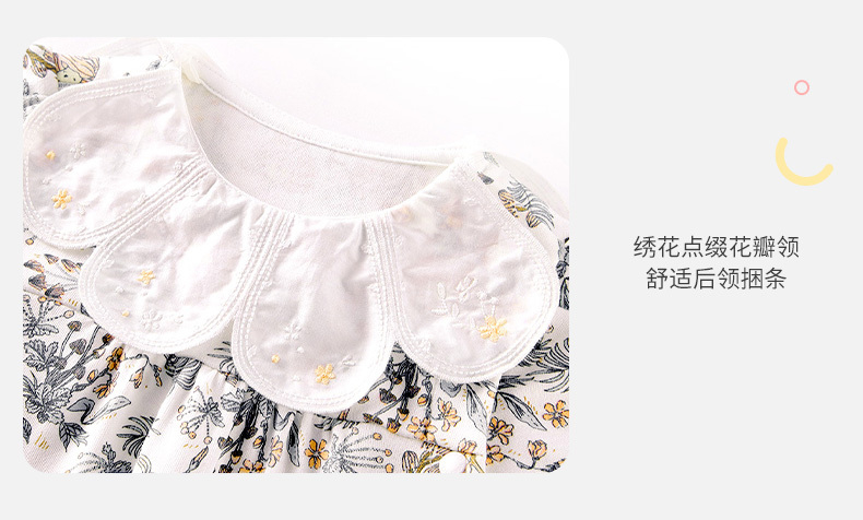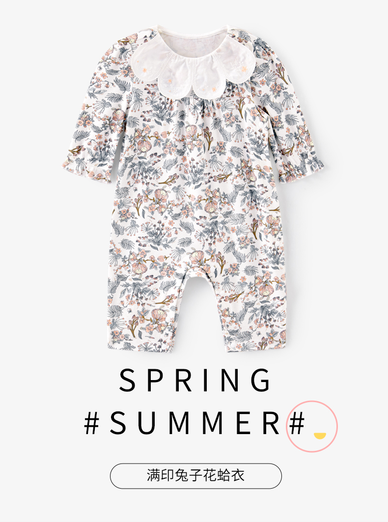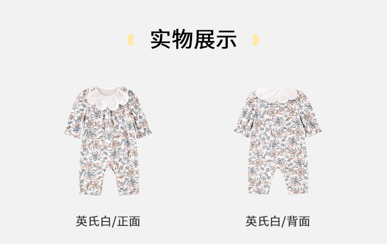 英氏婴儿连体衣春夏2022新款女宝碎花蛤衣爬服花边领YRHAJ12170A