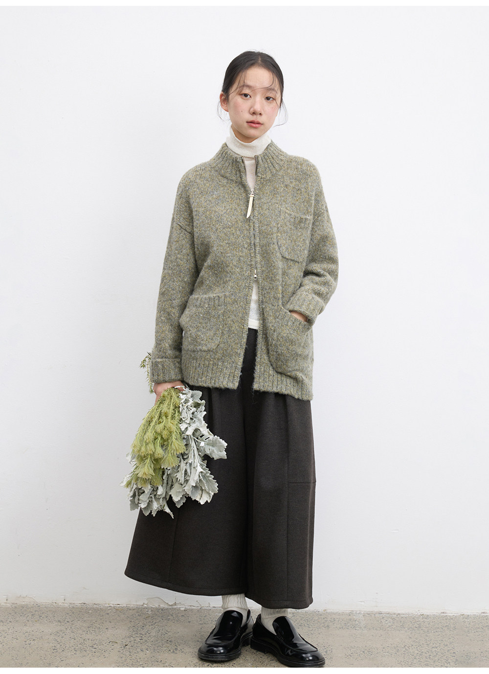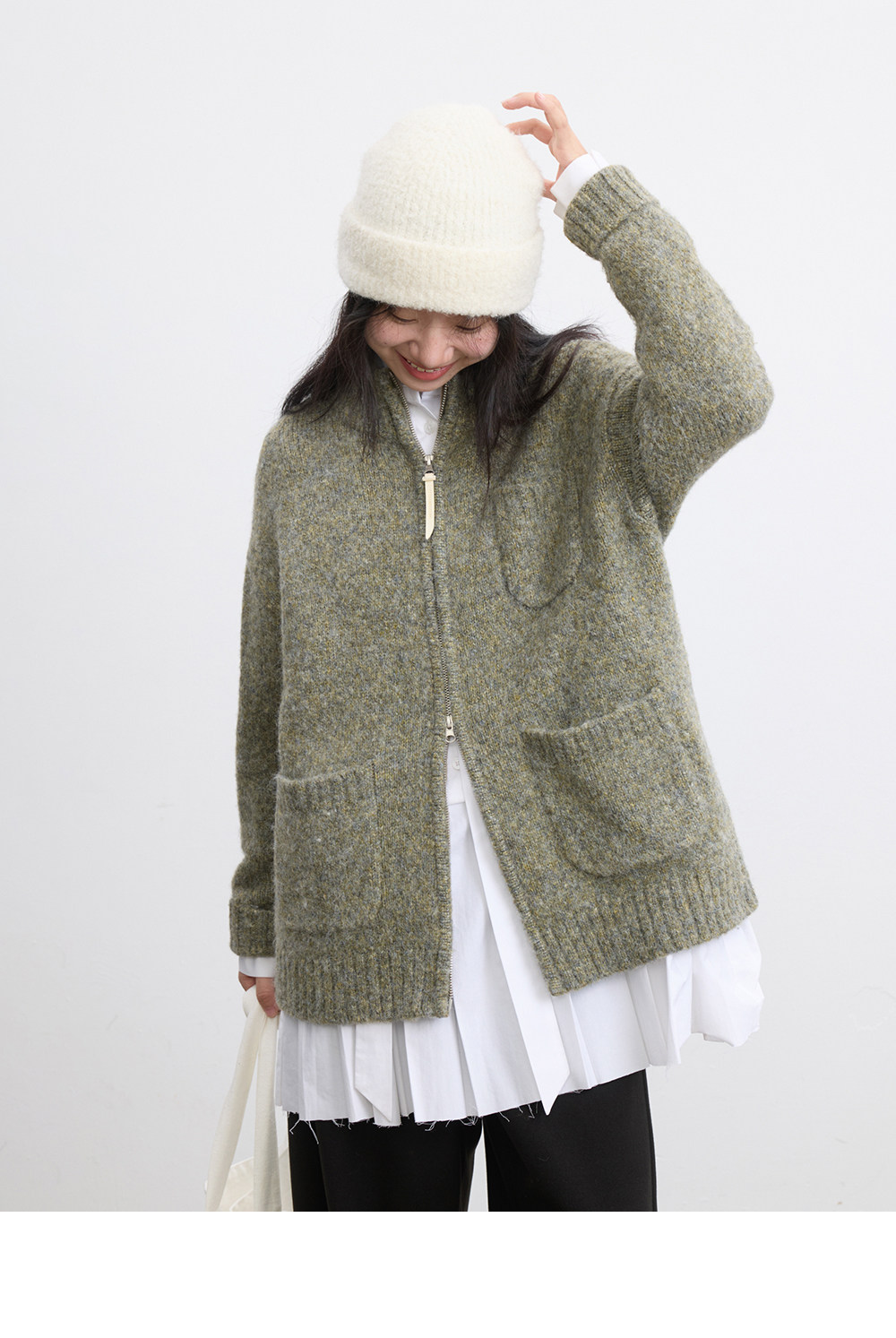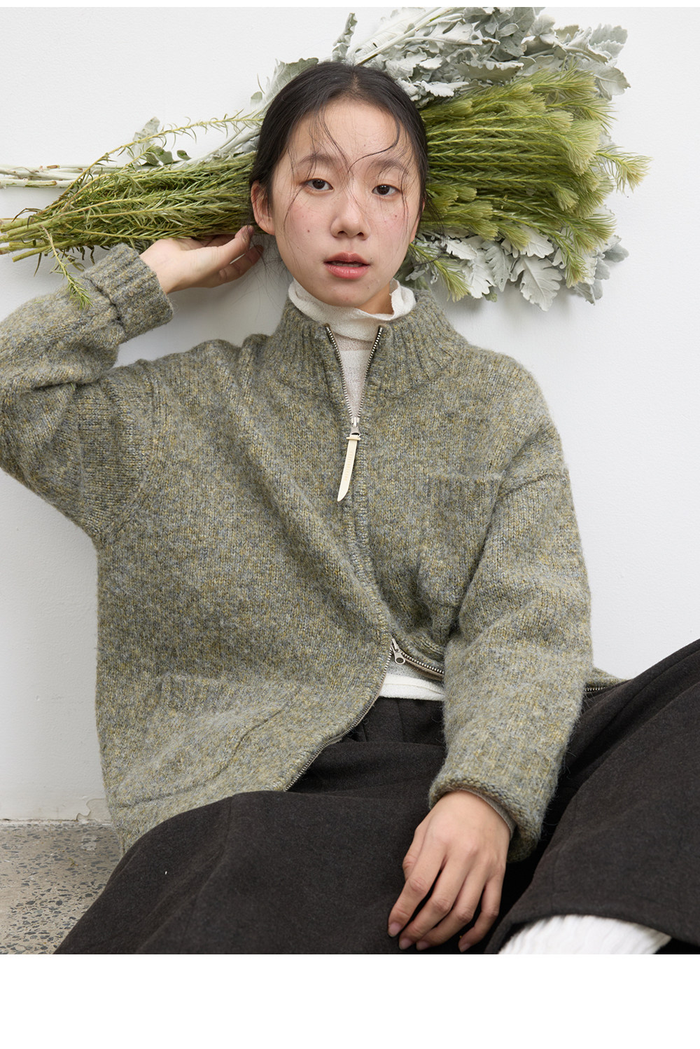 步履不停/5D13319C/拉链花纱毛衣开衫