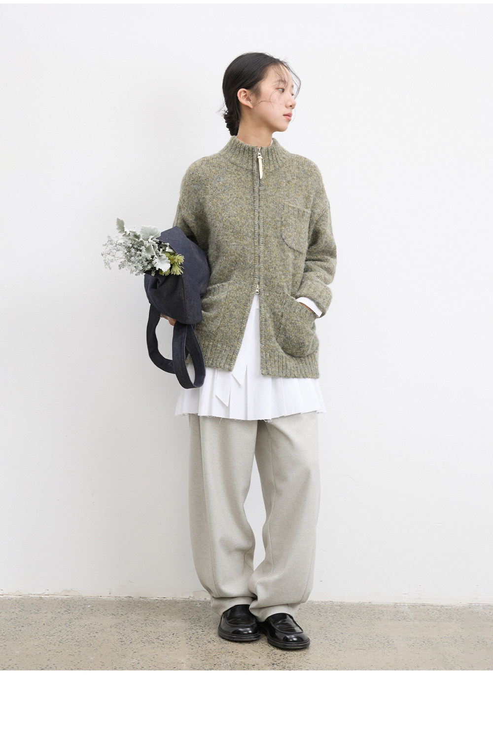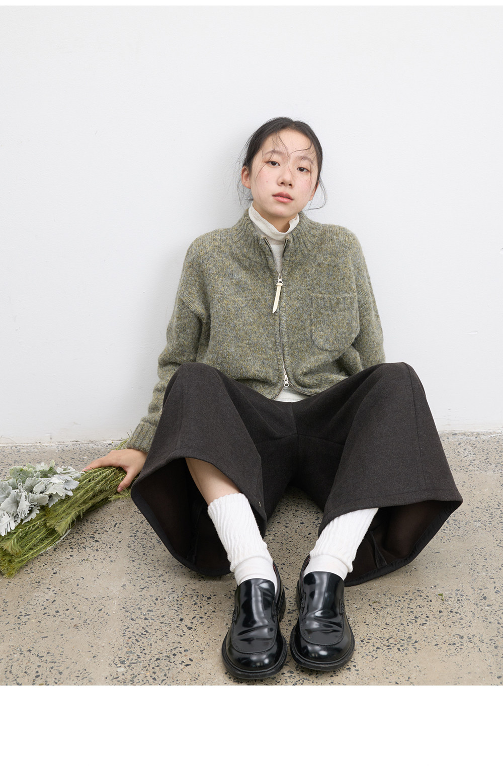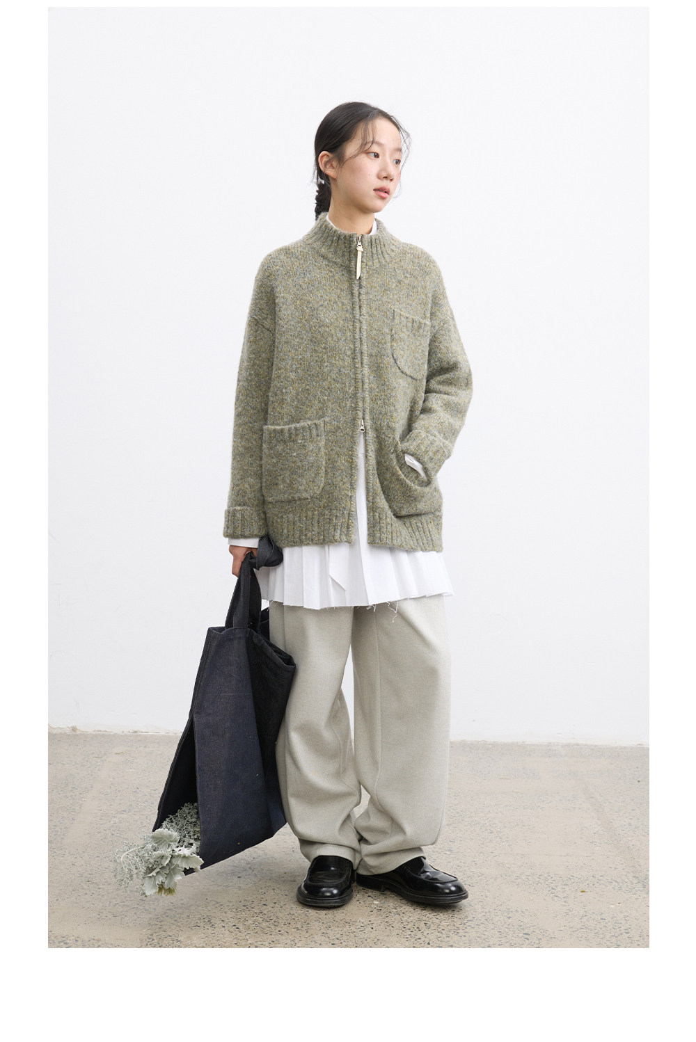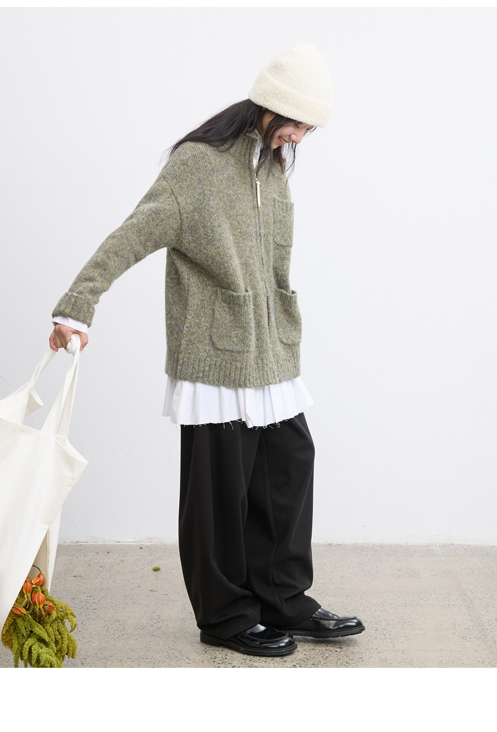 步履不停/5D13319C/拉链花纱毛衣开衫