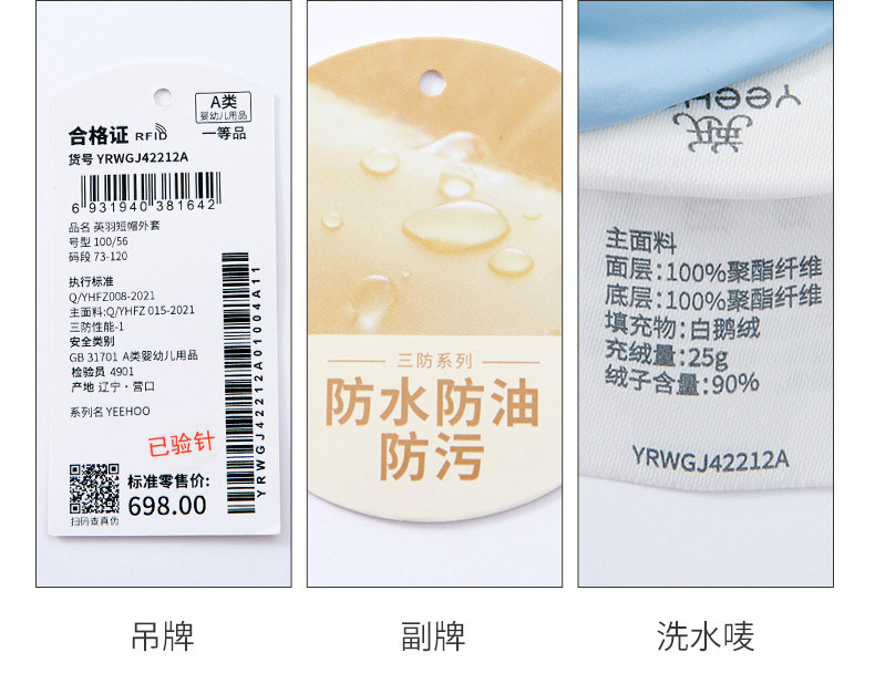 英氏婴幼儿轻薄鹅绒服防水防油污22秋冬YRWGJ2212A YRWGJ42213A YRWGJ42251A