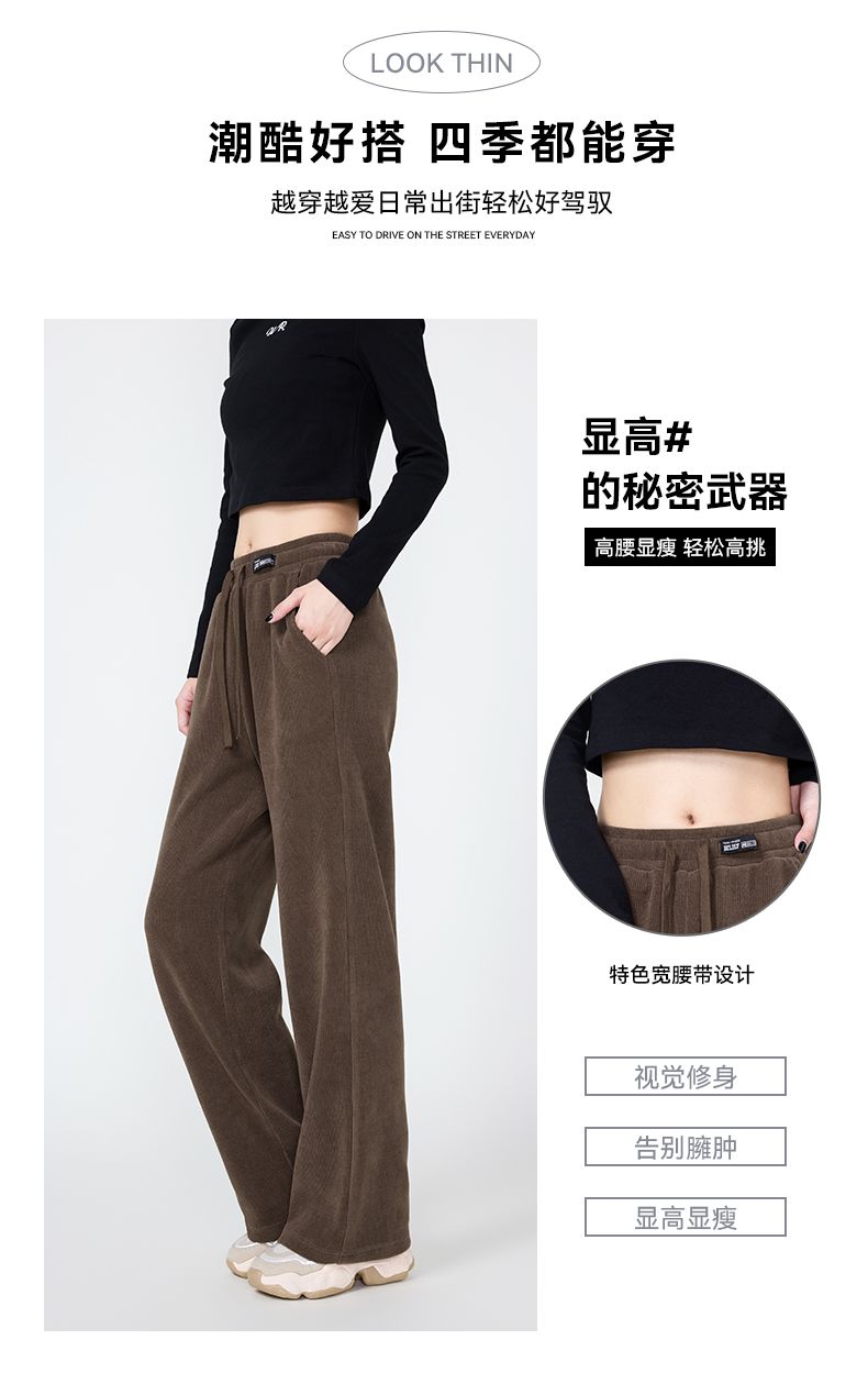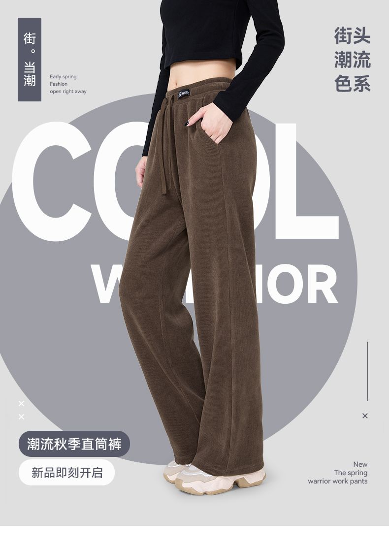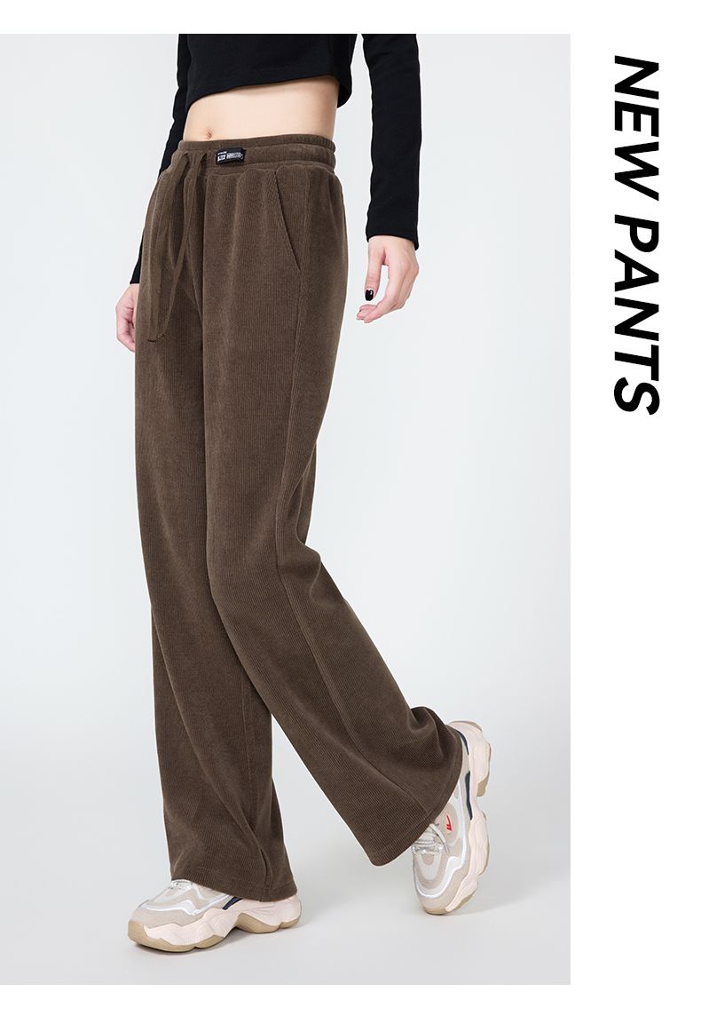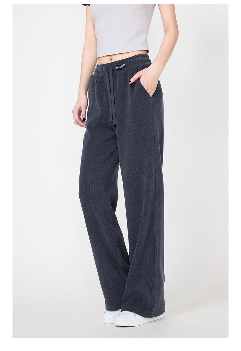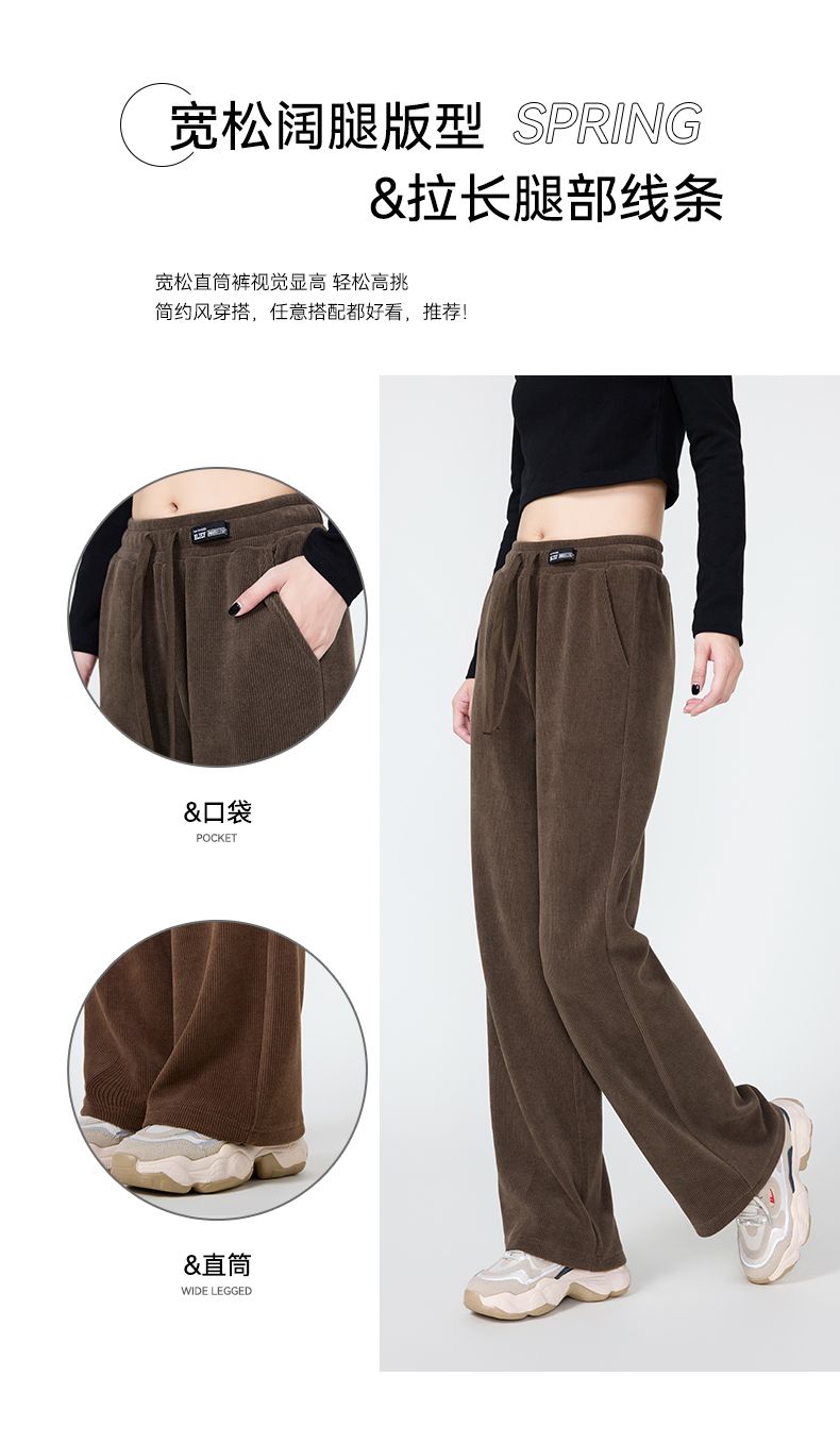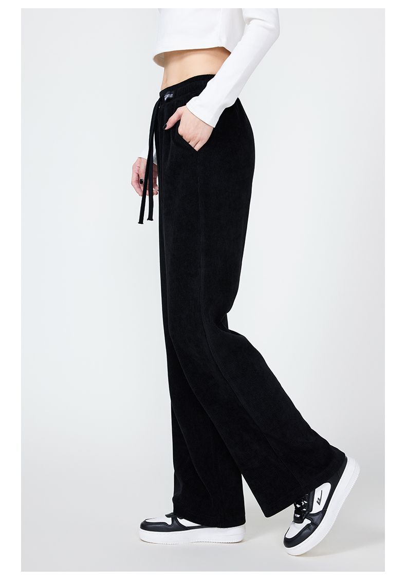 回力灯芯绒阔腿裤女2025秋季新款窄版直筒雪尼尔休闲运动长裤子女