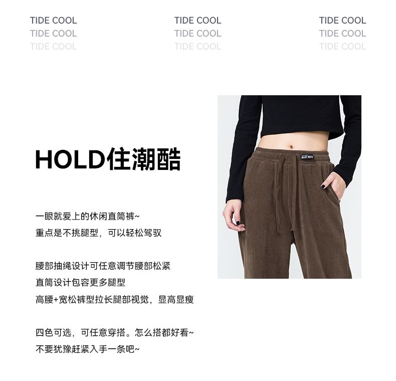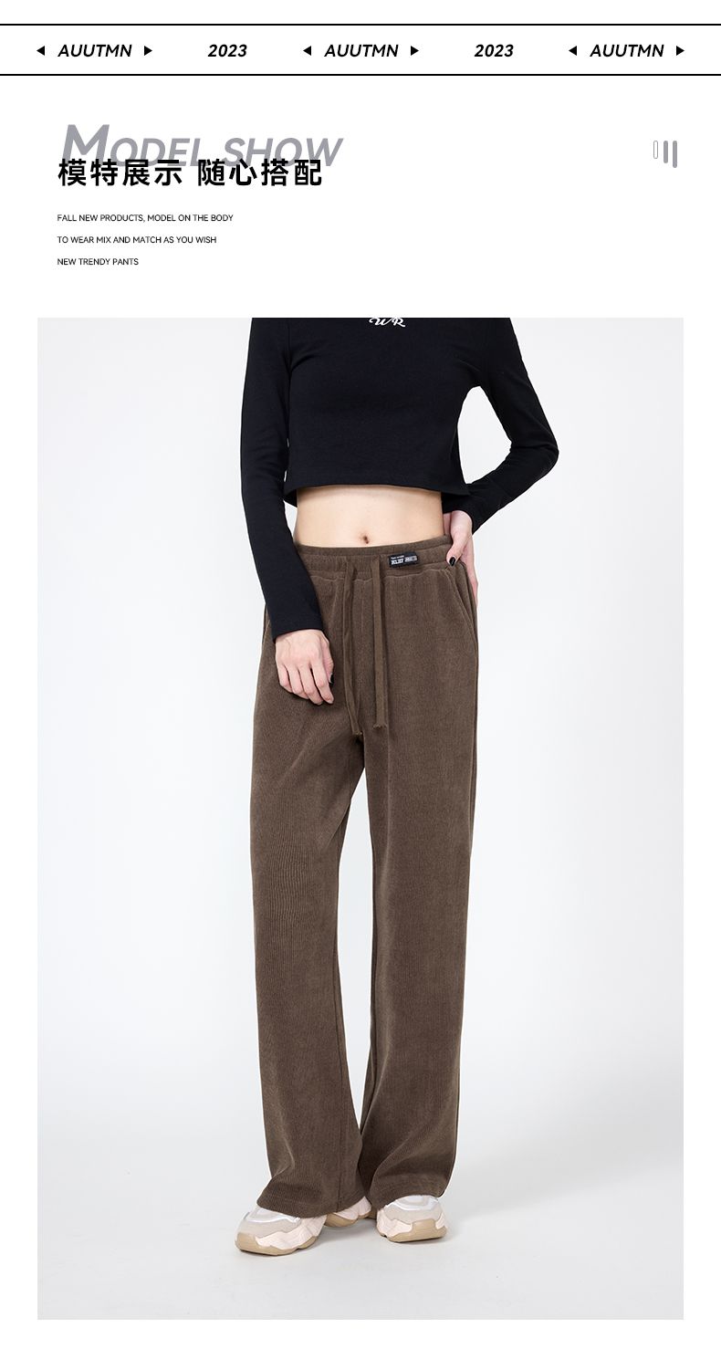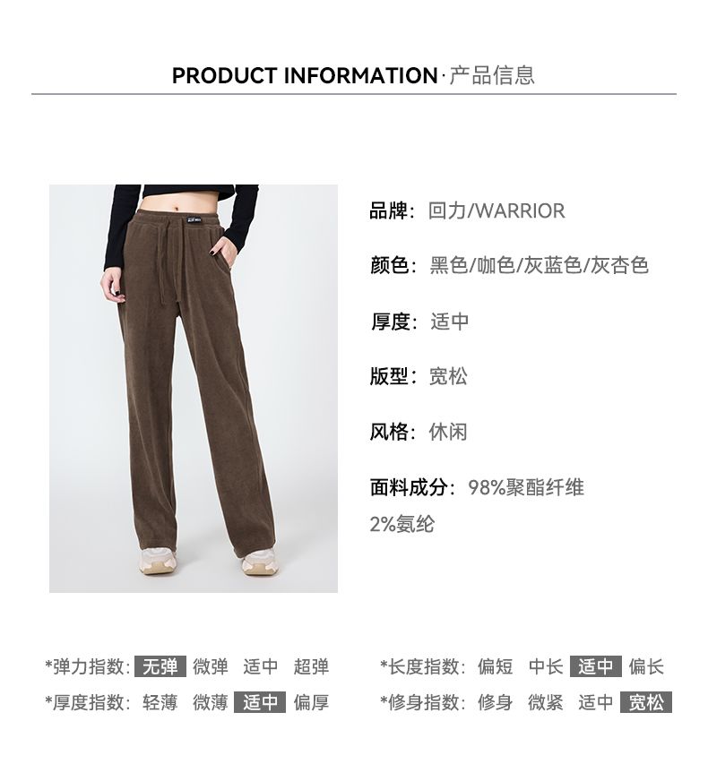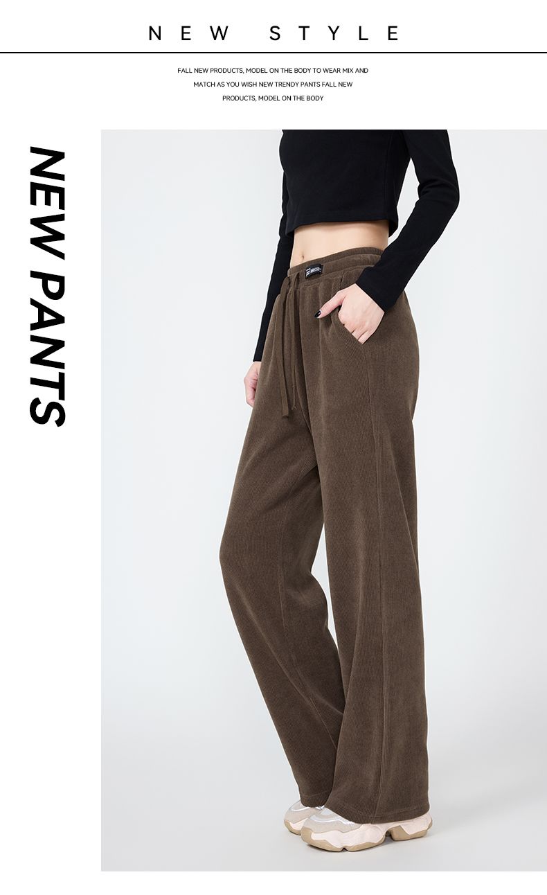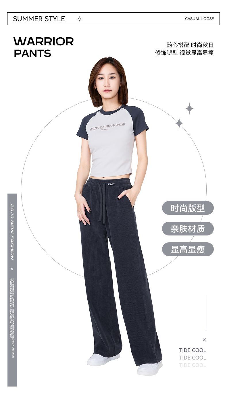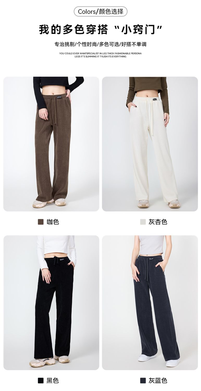 回力灯芯绒阔腿裤女2025秋季新款窄版直筒雪尼尔休闲运动长裤子女