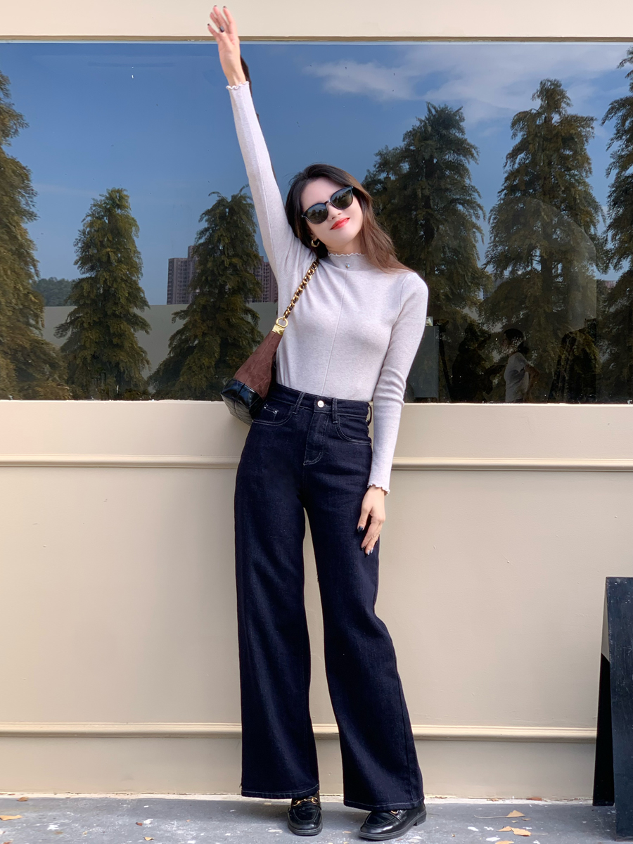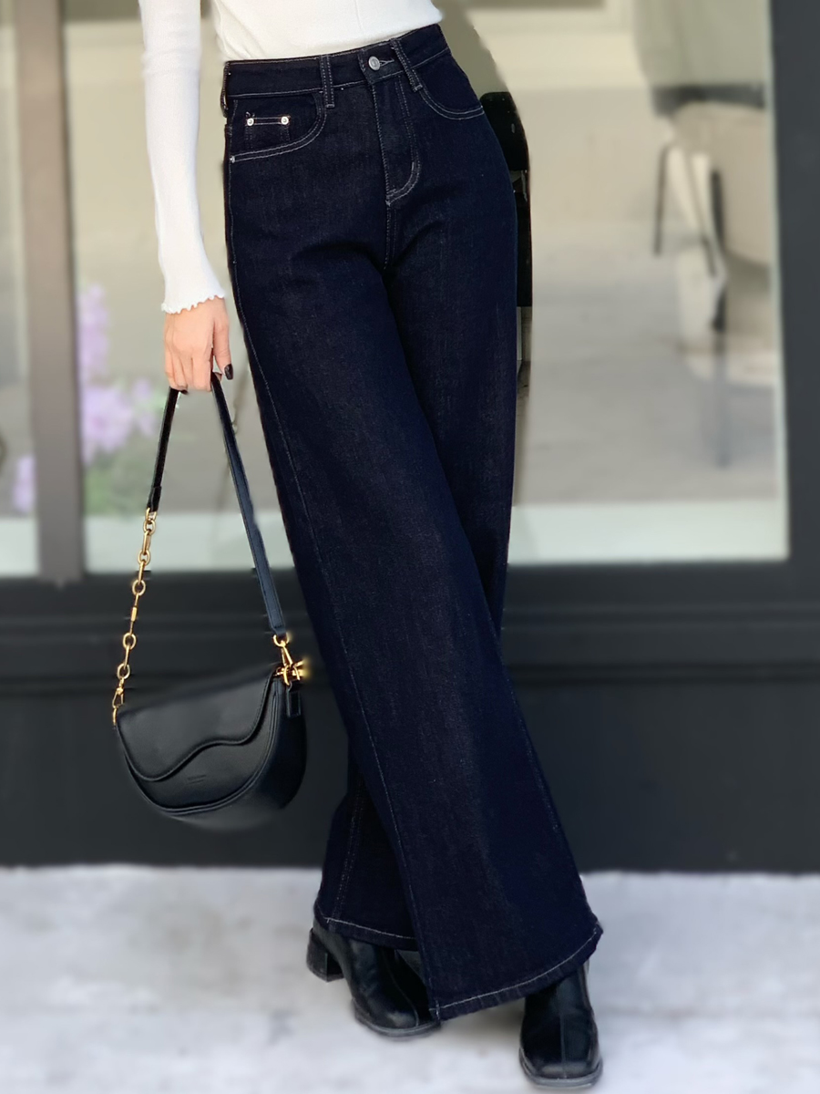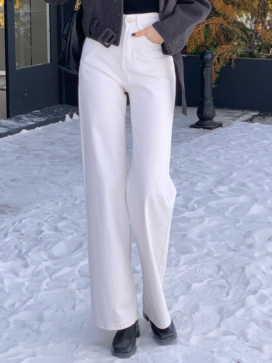 【百图lulu定制】【预售10天发】【王牌牛仔裤】新疆长绒棉 高腰收腹 显腿长显腿直 外层磨毛 厚实牛仔直筒裤