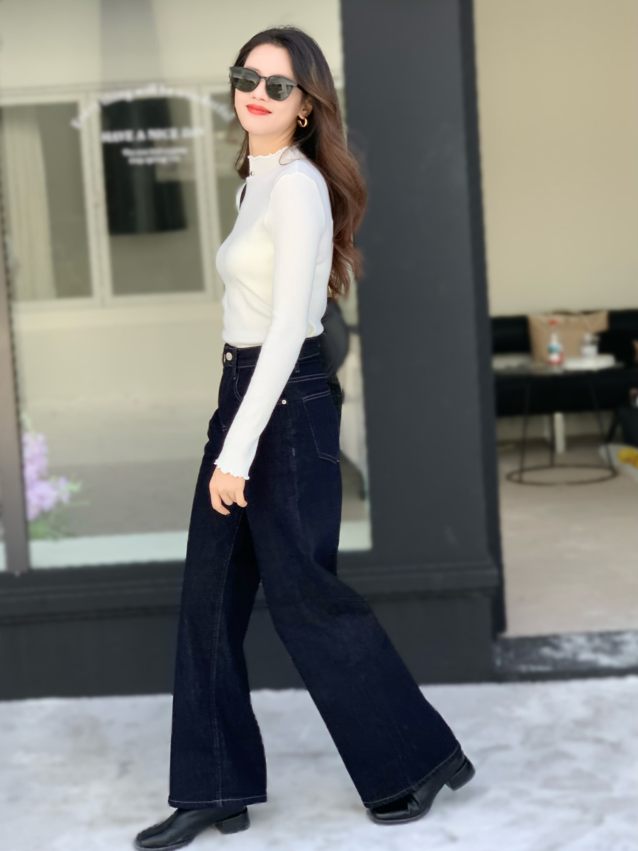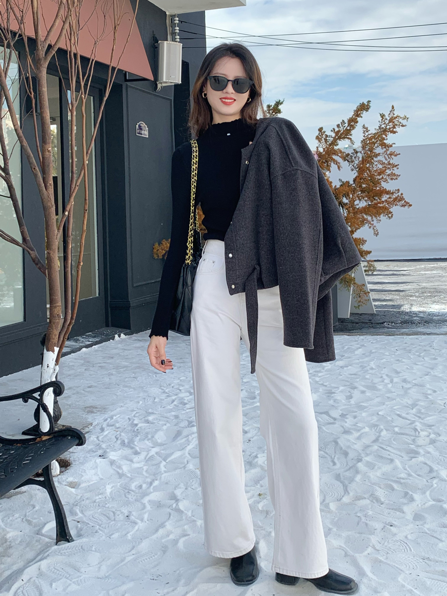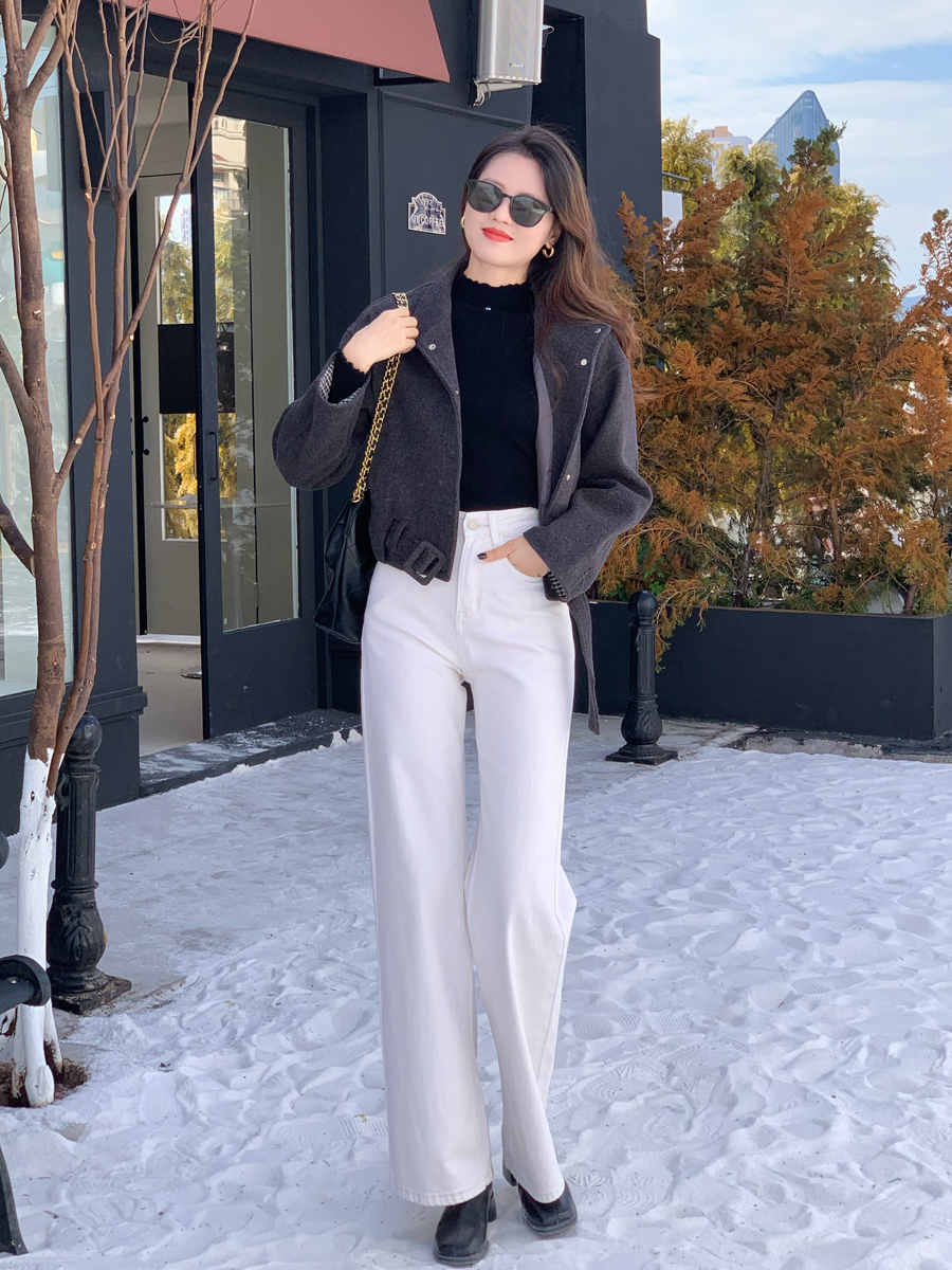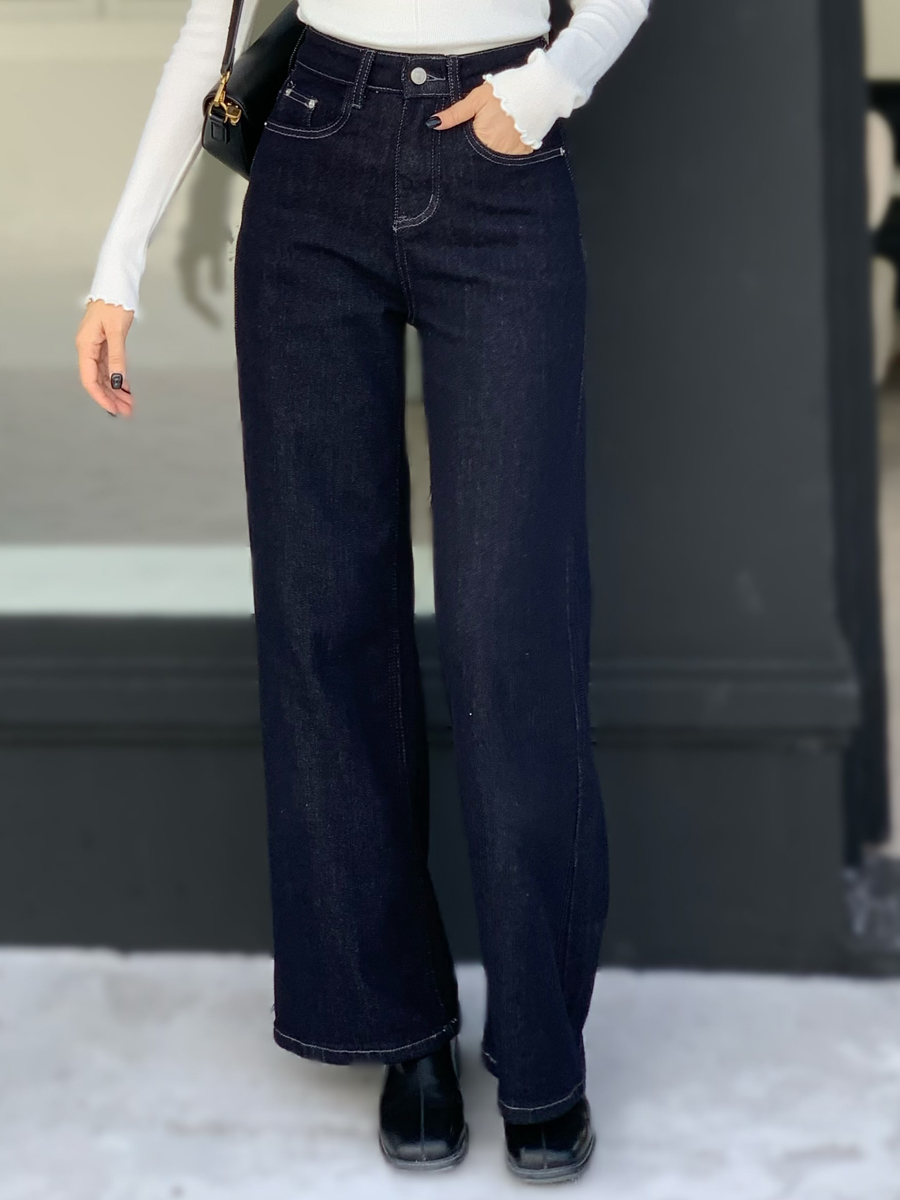 【百图lulu定制】【预售10天发】【王牌牛仔裤】新疆长绒棉 高腰收腹 显腿长显腿直 外层磨毛 厚实牛仔直筒裤