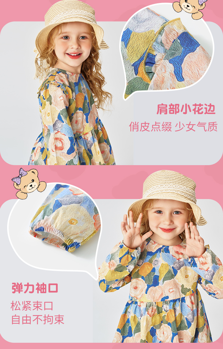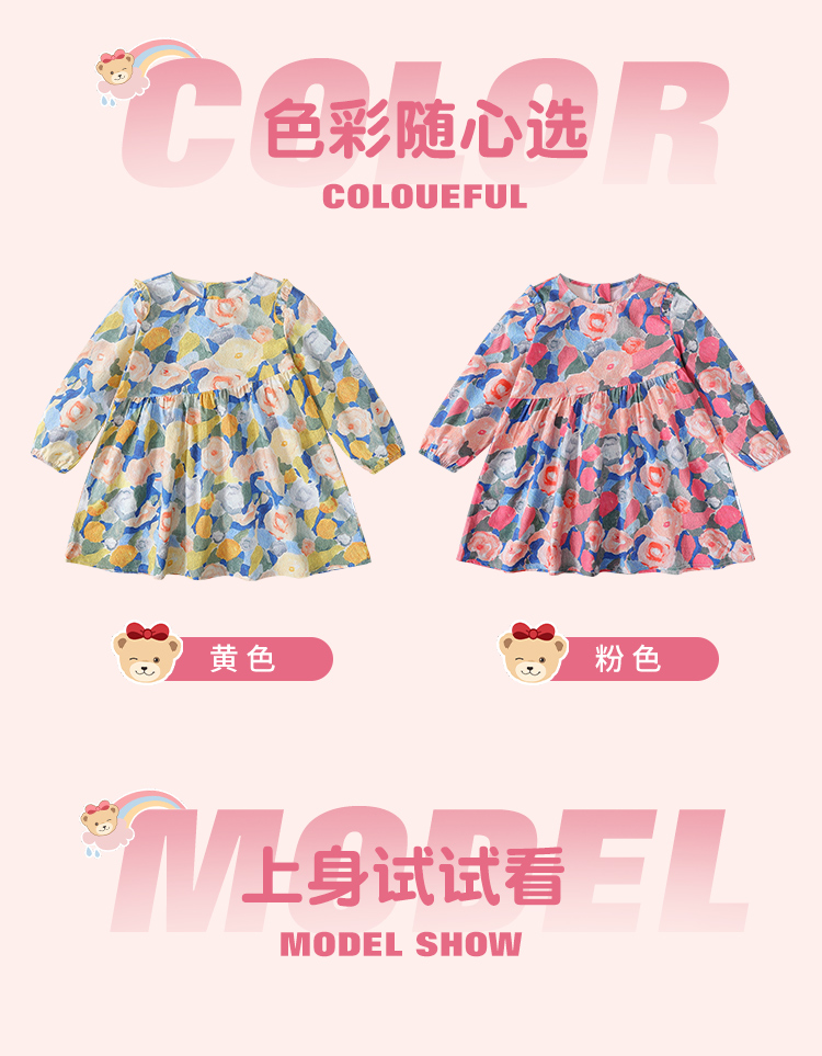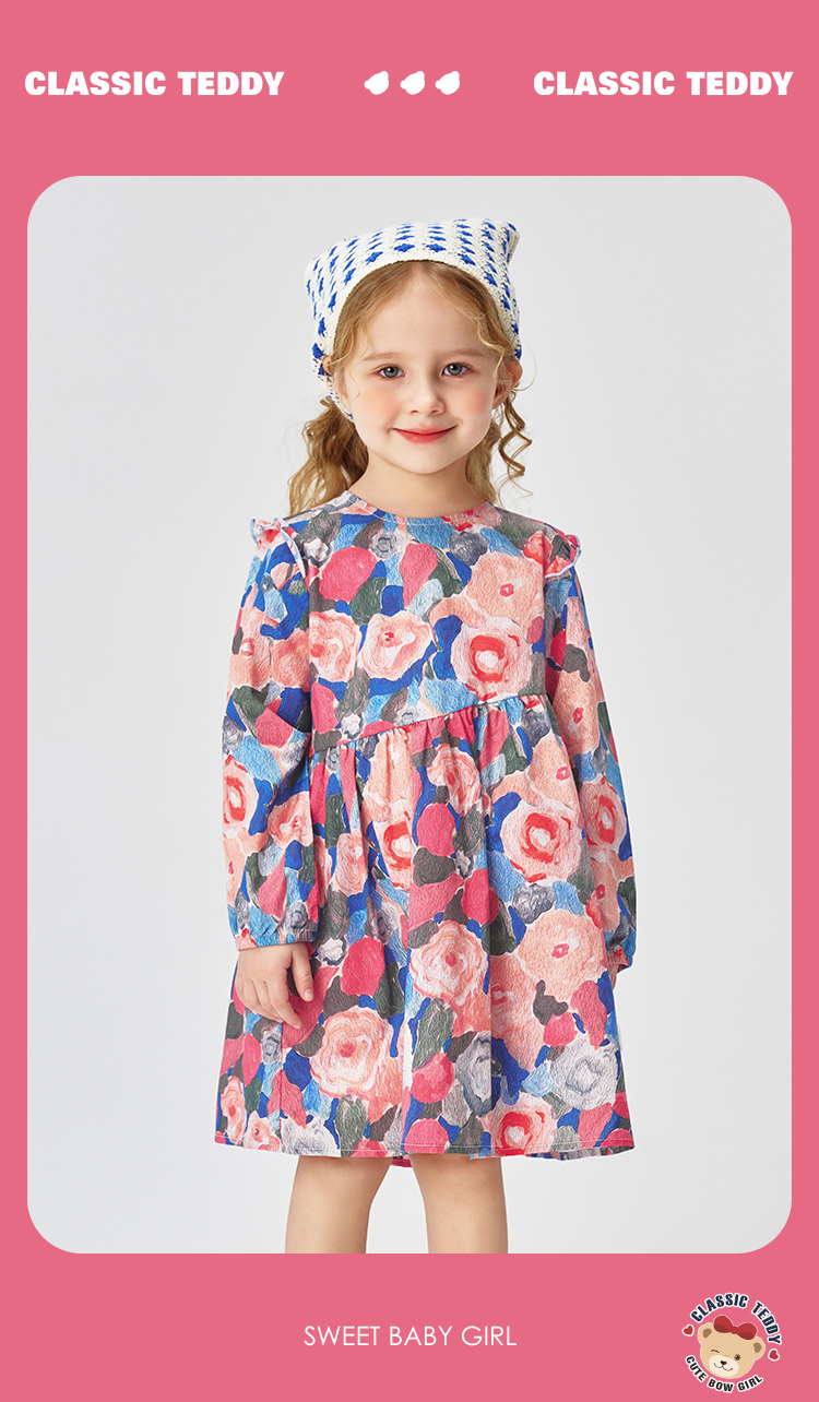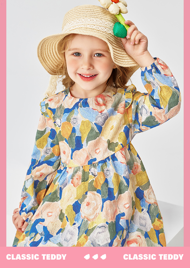 【纯棉】【90-140】【精典泰迪】女童春秋长袖连衣裙艺术童年