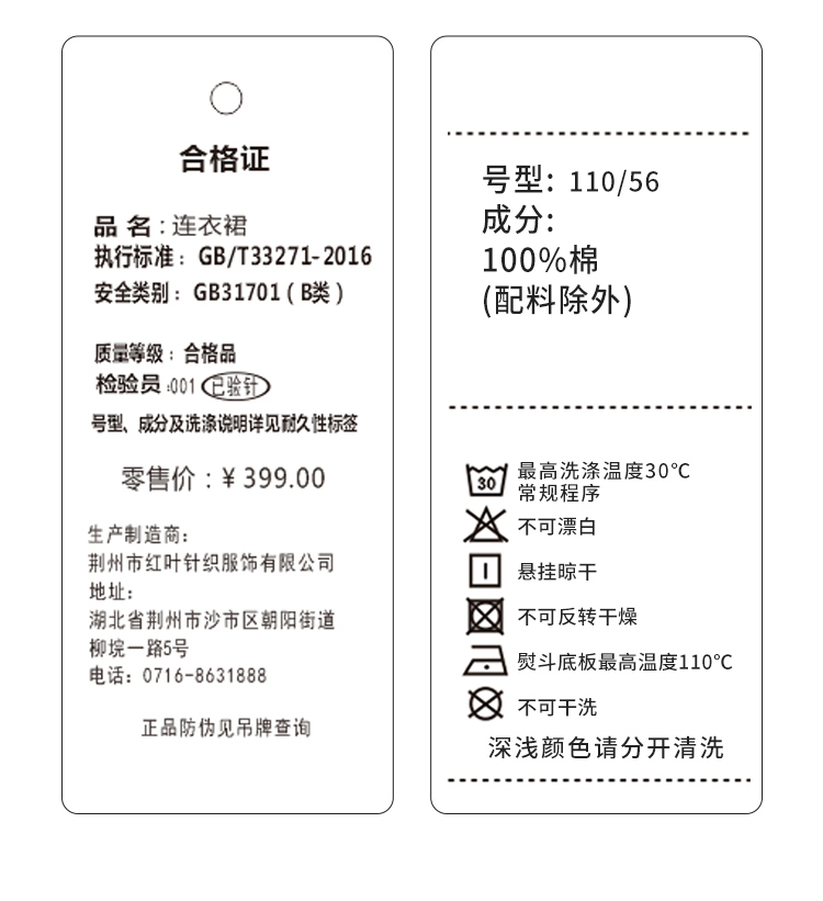 面料成分:100%棉(配料除外)