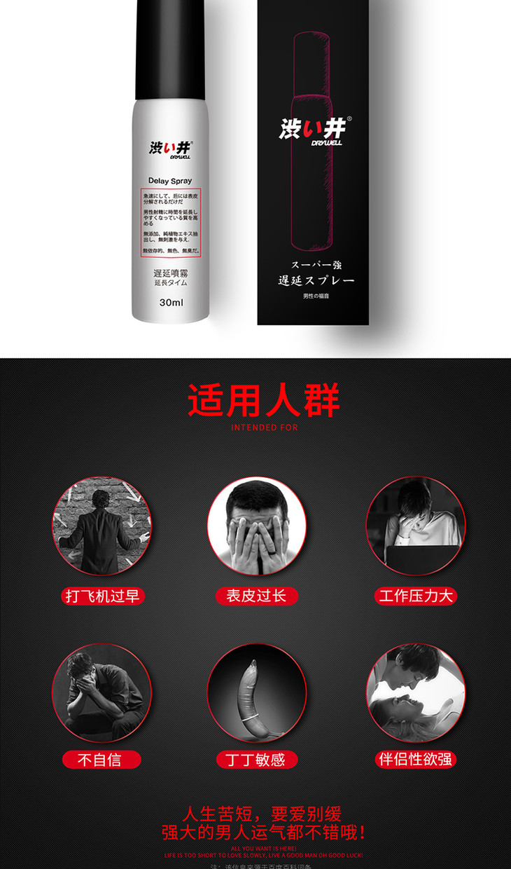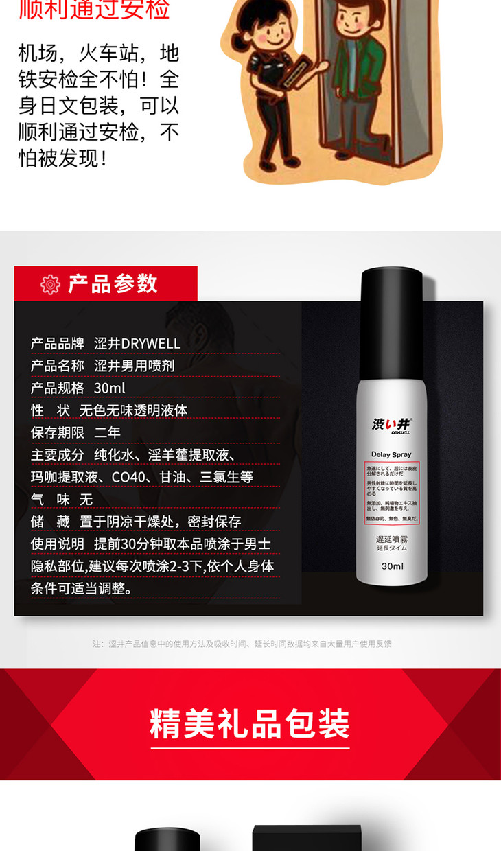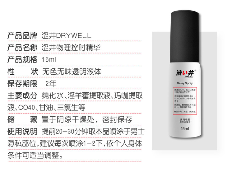 日本加藤鹰代言 涩井男用延时湿巾外用喷剂物理延时精华电子延时喷雾组合