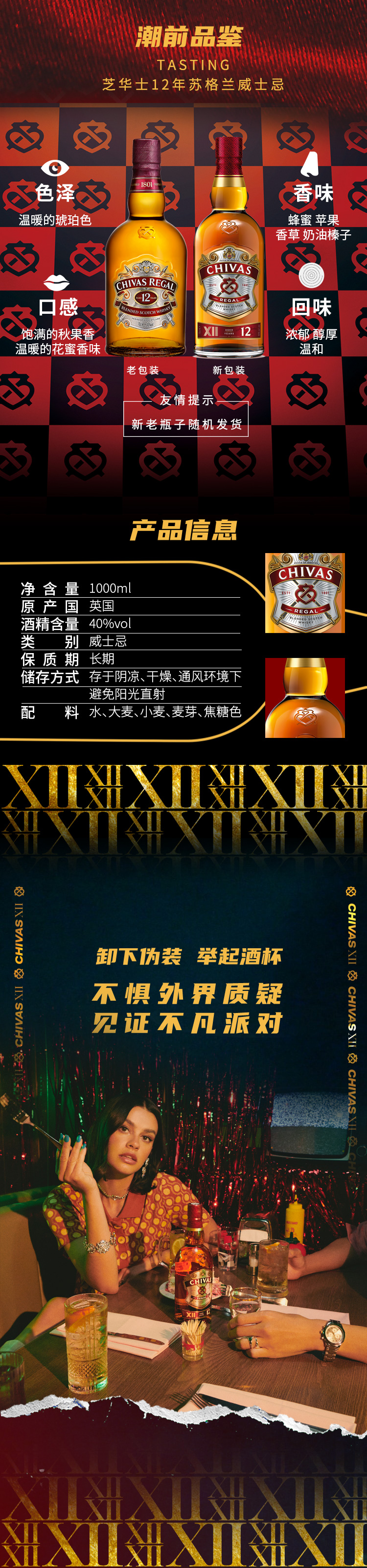英国芝华士12年苏格兰威士忌700ml/010044 陈酿12年细腻口感值得一尝特调