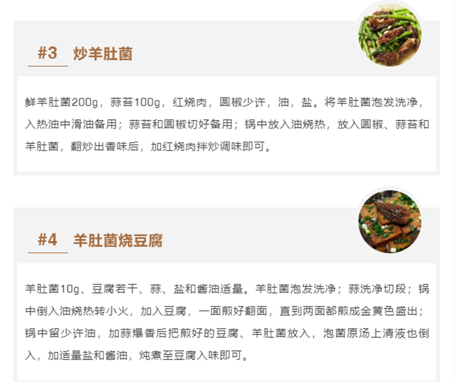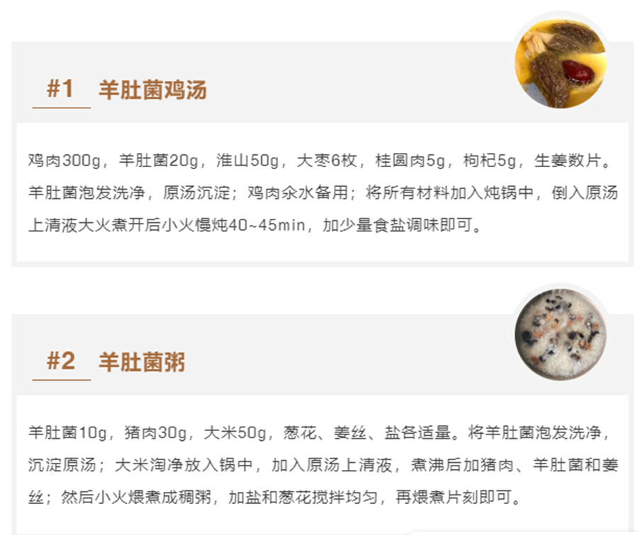 5.羊肚菌蛋白质丰富,不能与富含鞣酸的食物(如:茶、柿子)同吃,不能与粽子同吃。