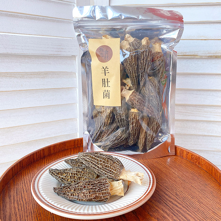经过晾晒后得到的羊肚菌干品,味道更加醇厚,四季想吃就吃!