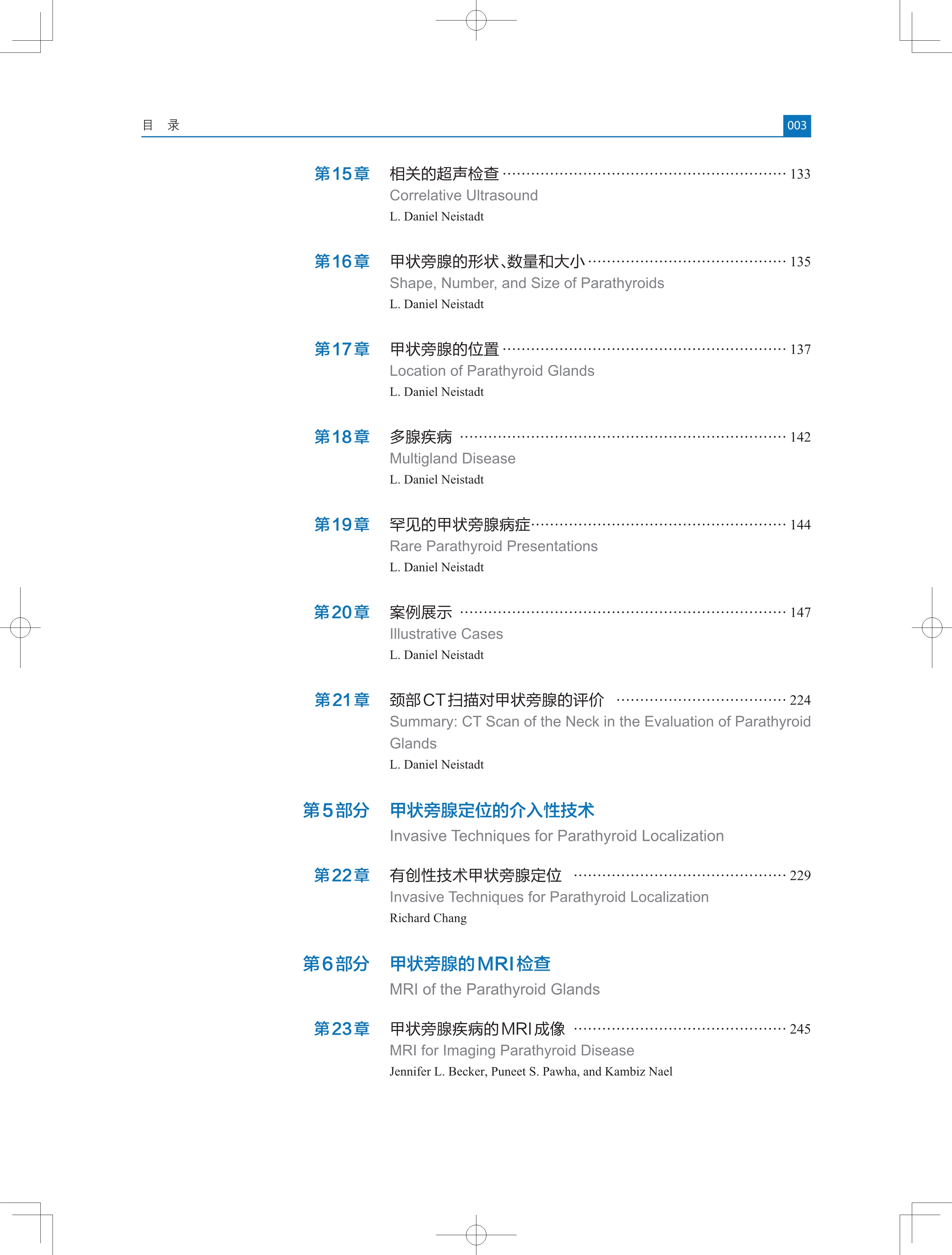 本书由国际知名专家 Alexander L. Shifrin 及其团队编写,共分 6 个部分,展示了各种影像学方法在甲状旁腺疾病诊断中的应用,包括常规 X 线、高分辨率超声、CT 、MRI,以及核医学技术。每一幅图都有详细的注释,解释了正常结构与病变的区别,帮助读者识别可能的异常并解读复杂的病理变化,为头颈外科及相关专业临床医师及研究生提供了甲状旁腺解剖知识、疾病精准诊断和手术的基础知识与先进理念。