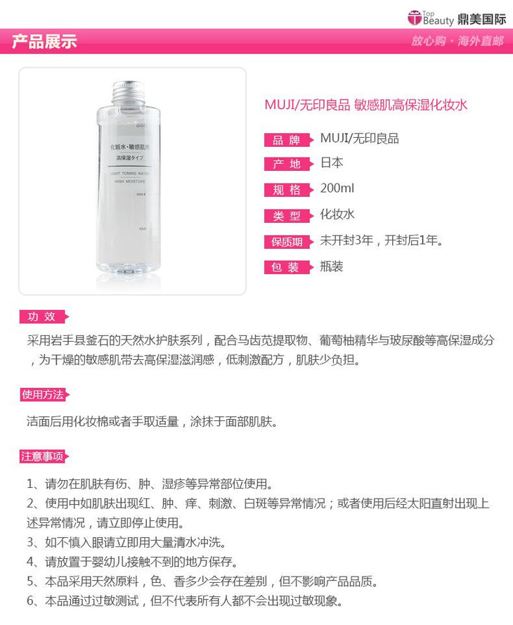 【保税仓】MUJI/无印良品 敏感肌用化妆水高保湿型 200ml