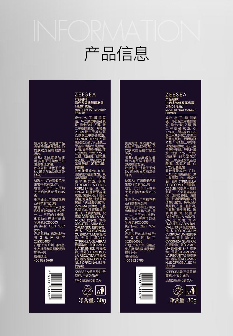 [隔离]【3件5折丨专区购满3件即送卸妆水50ml】[小滋特惠]ZEESEA滋色多效修颜隔离霜30g(软管升级版)(拍下3件立减)