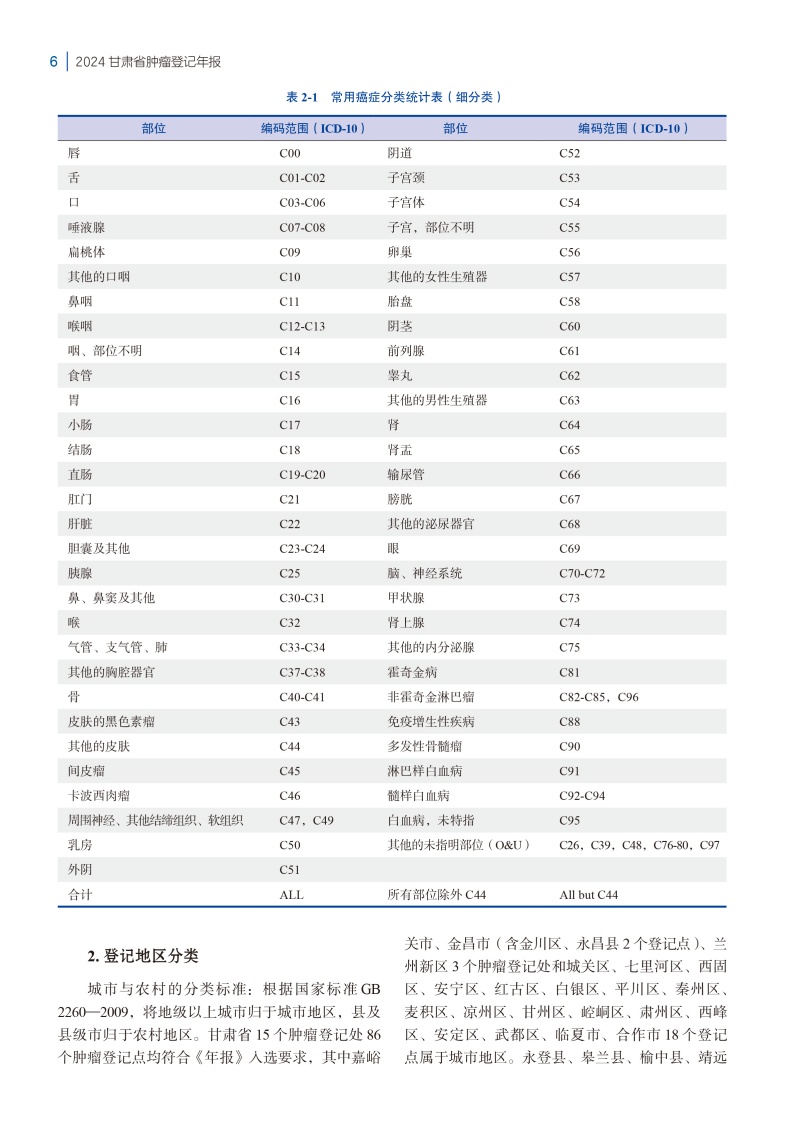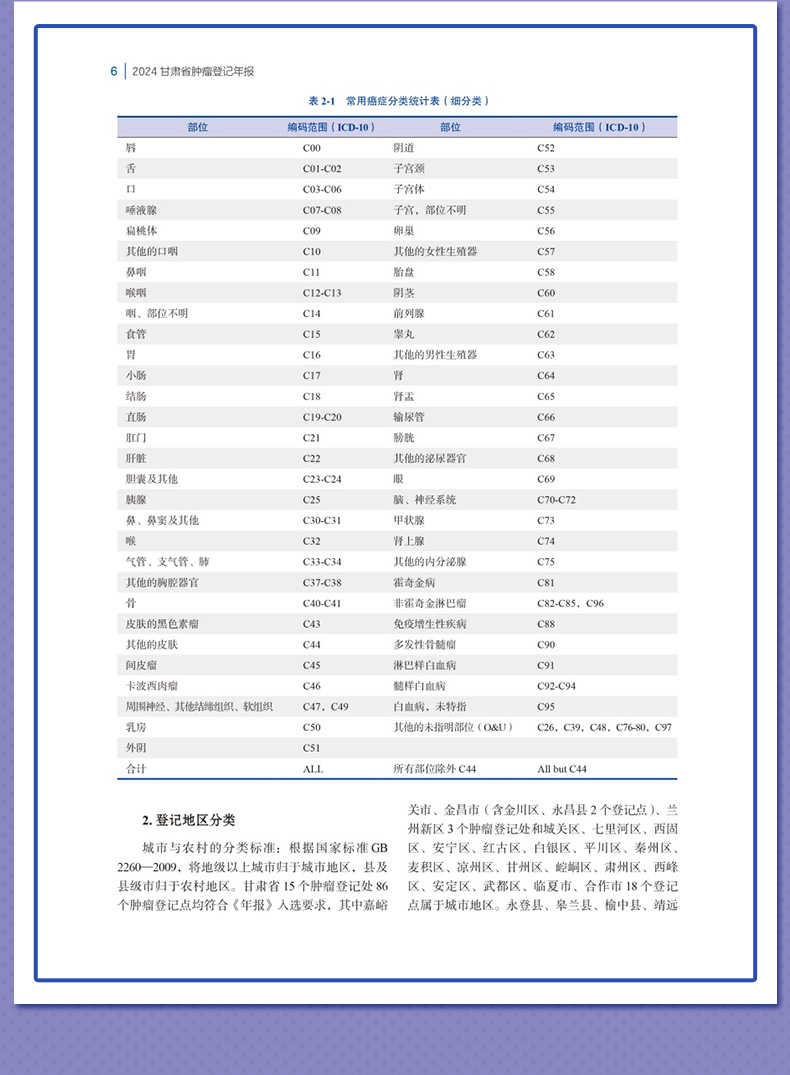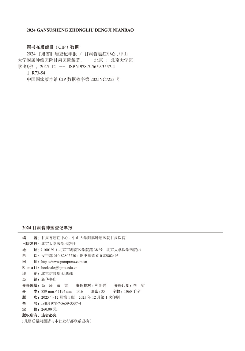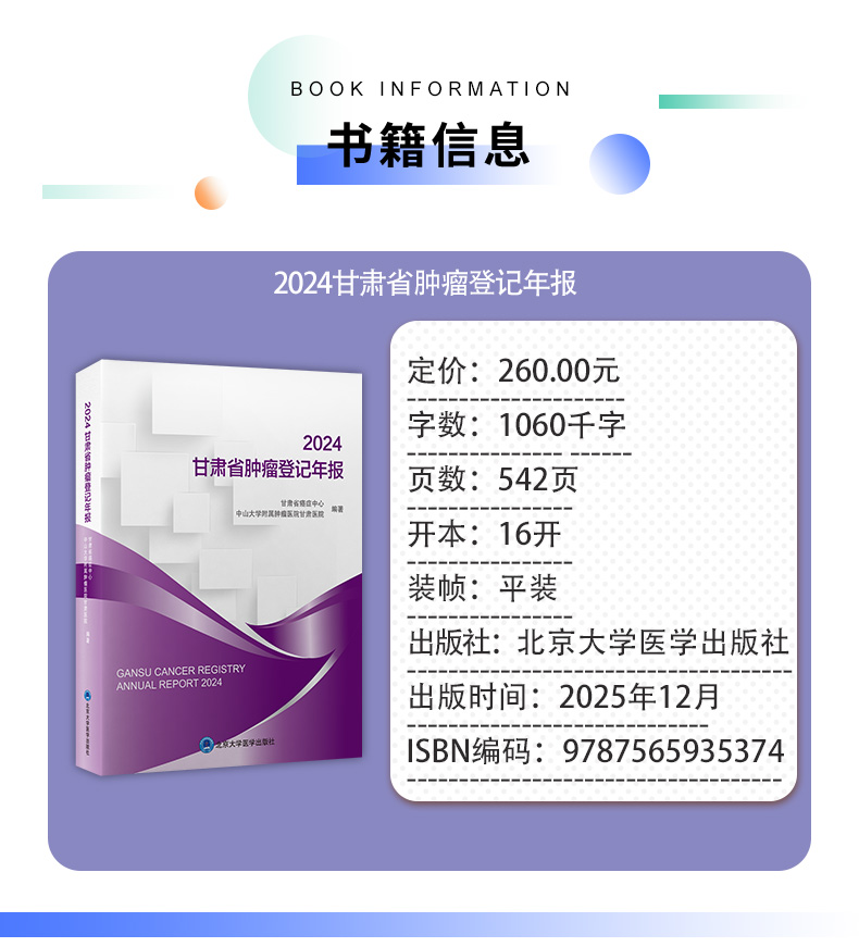 2024 甘肃省肿瘤登记年报 甘肃省癌症中心 中山大学附属肿瘤医院甘肃医院 编著 肿瘤 卫生统计 甘肃 2024 年报 北京大学医学出版社