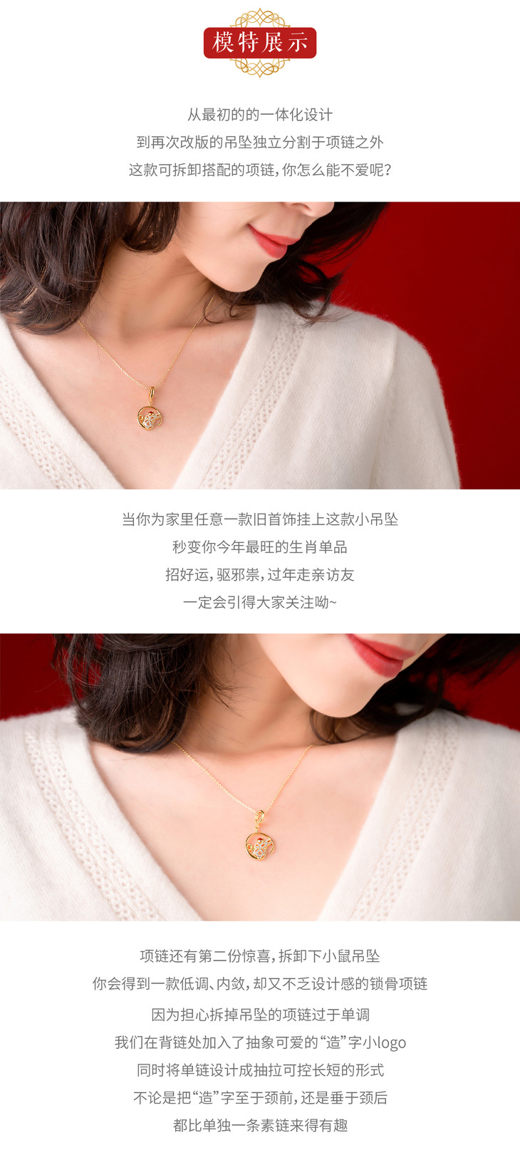 品名:金钱鼠 系列•项链(925银镀18K金镶锆石)
