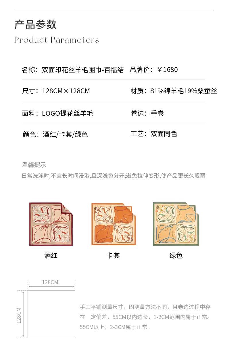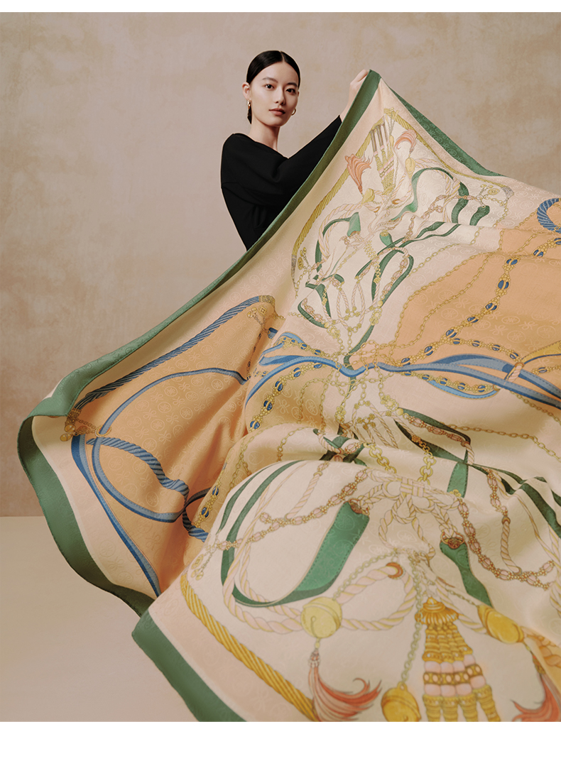 万事利“百福结”128厘米双面印花丝羊毛围巾