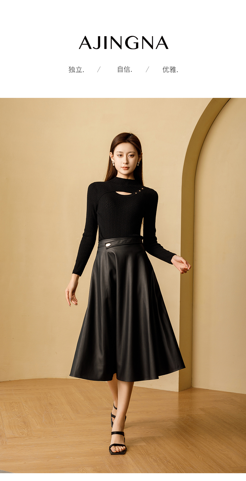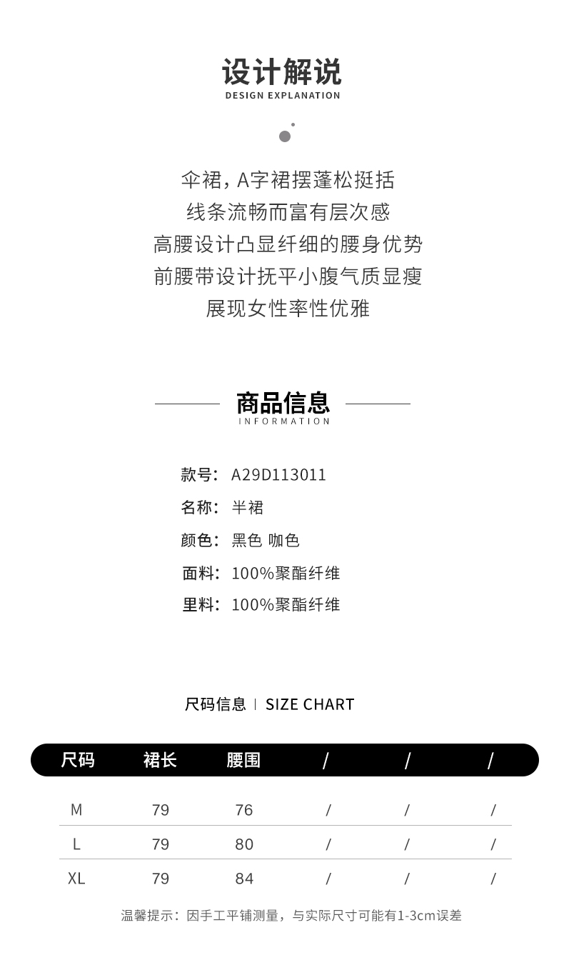 【商场同款】阿菁娜2024秋季新款A字蓬松挺括高腰伞裙A29D113011