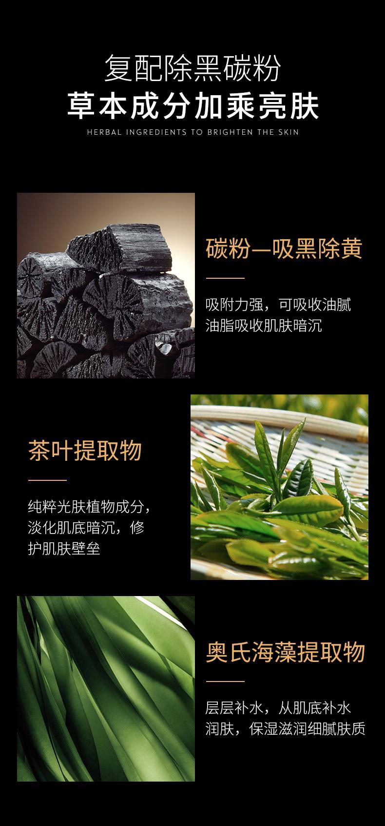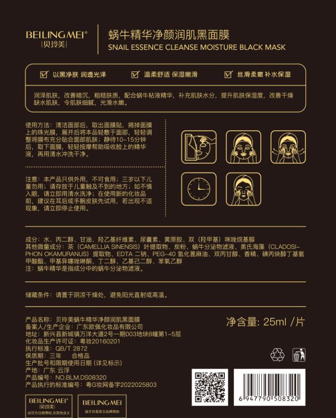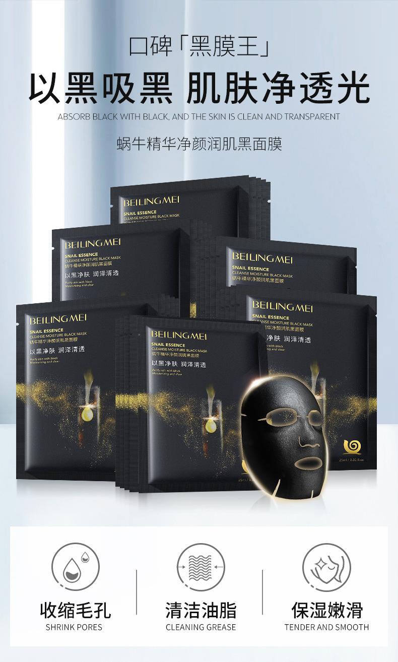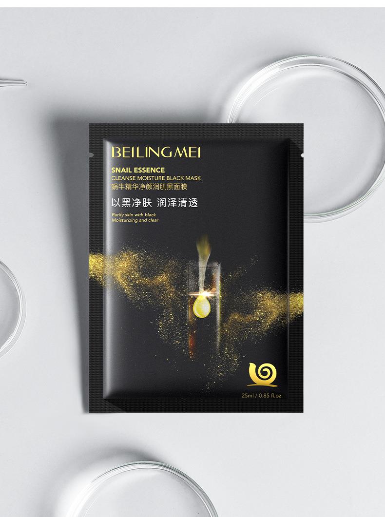 贝玲美蜗牛精华净颜润肌竹炭黑面膜蚕丝补水保湿嫩肤单片面膜片装