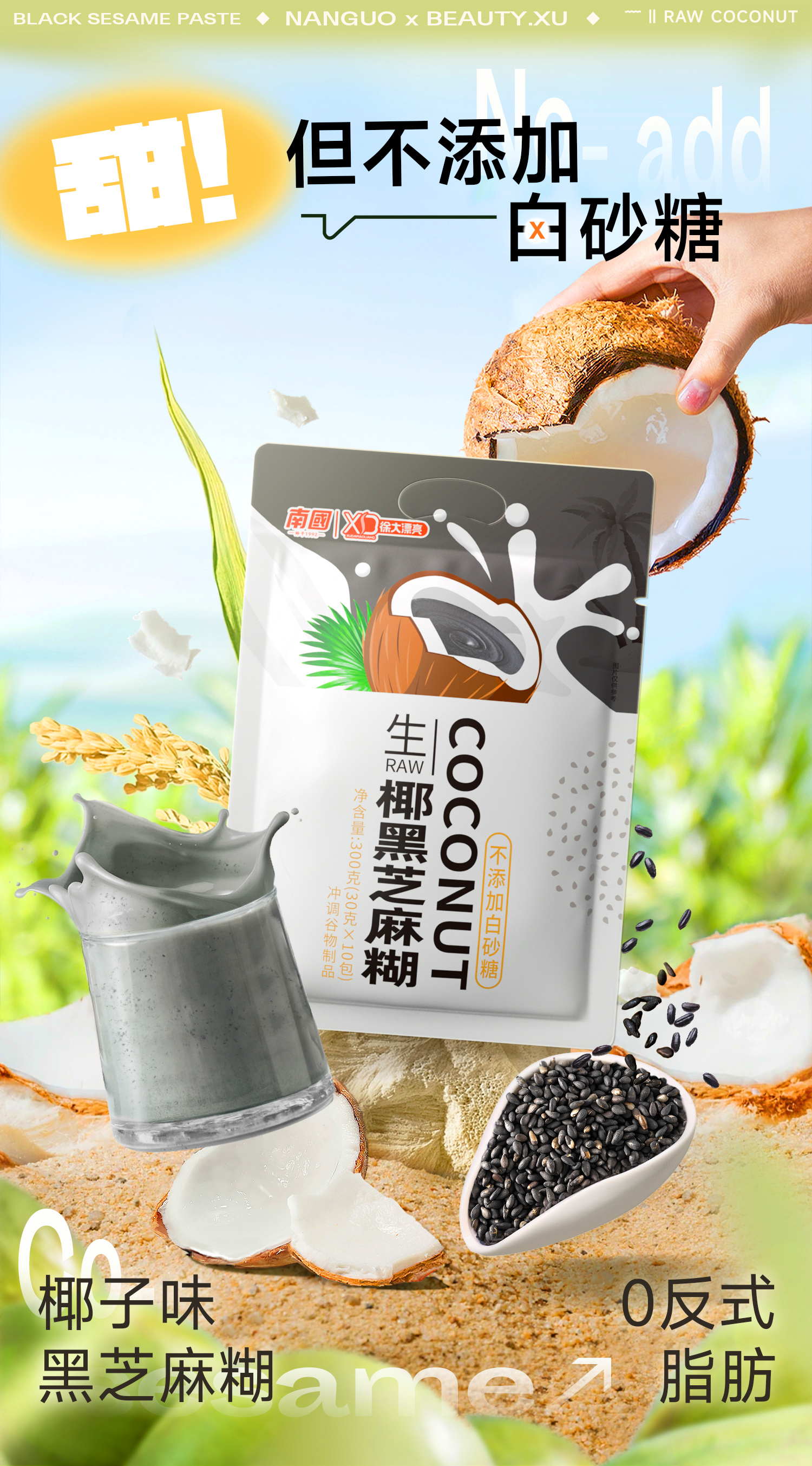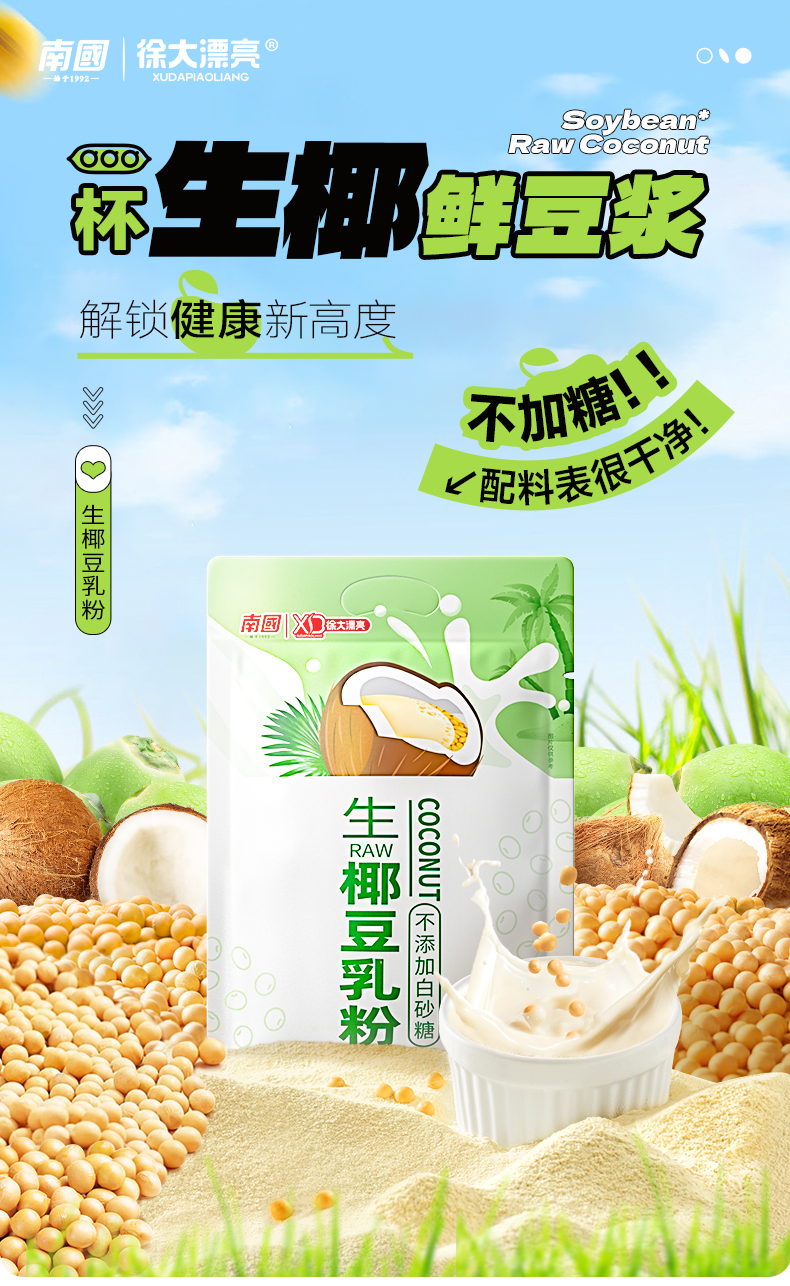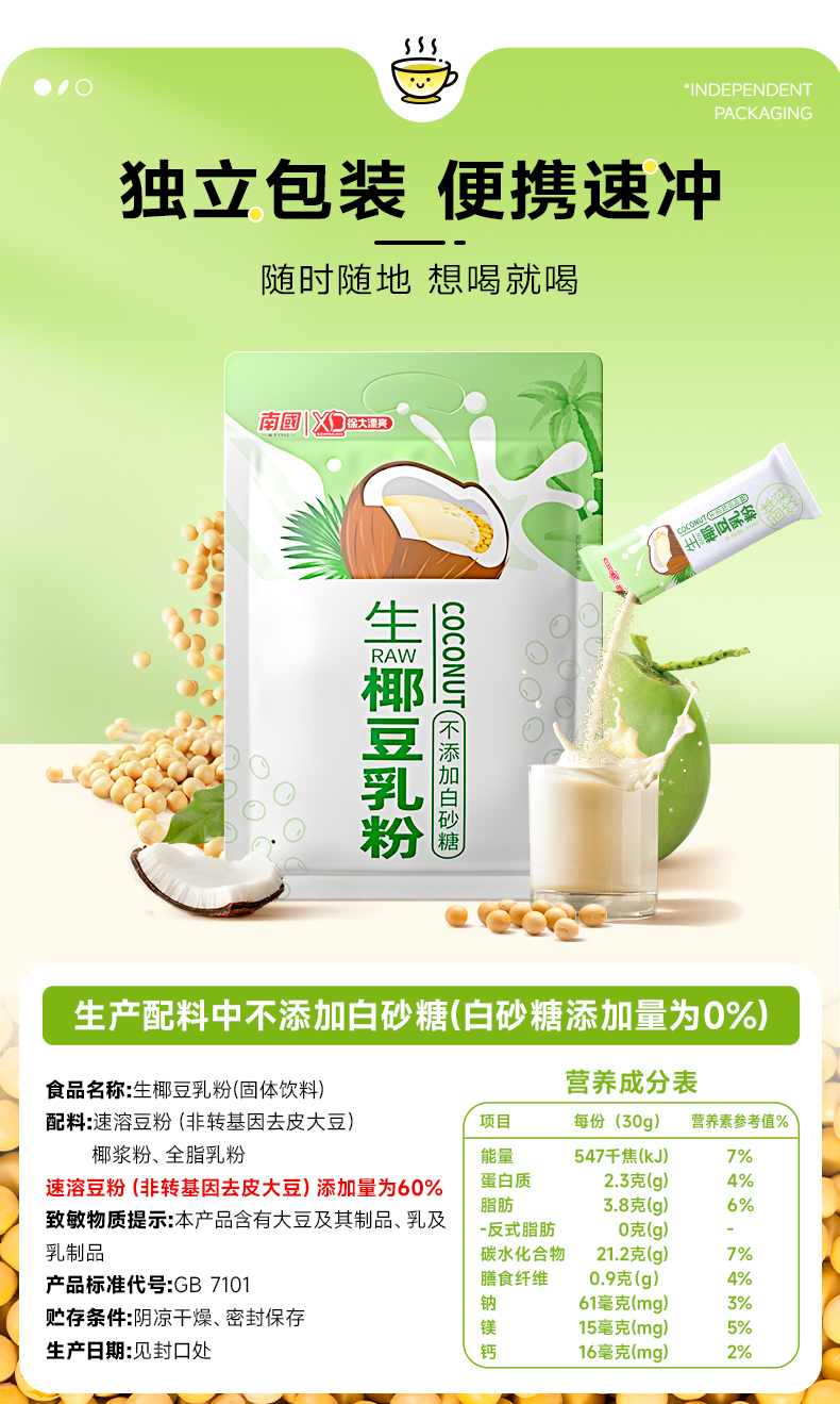 南国(nanguo)生椰豆乳粉 豆浆粉 黑芝麻粉 早餐营养冲泡奶 严选好食材 营养健康餐