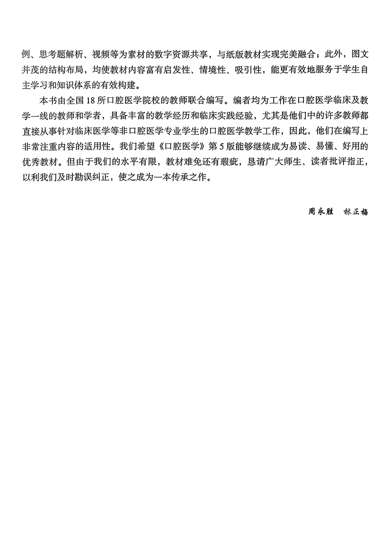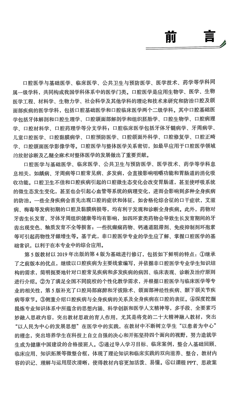 口腔医学 第5版 第五轮十四五普通高等教育本科规划教材 周永胜 林正梅主编 供基础临床护理预防口腔中医药学医学技术类等专业用