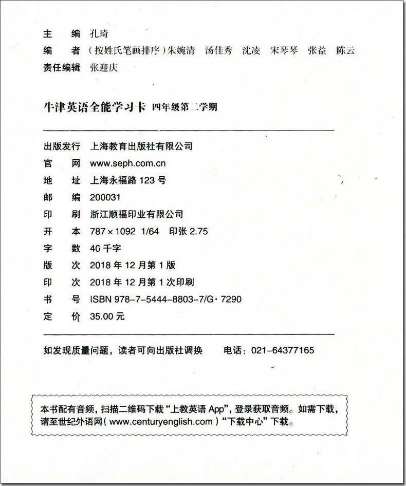 牛津英语全能学习卡四年级第二学期/4年级下册 配套牛津上海版教材同步辅导书 小学生英语学习卡片 上海教育出版社