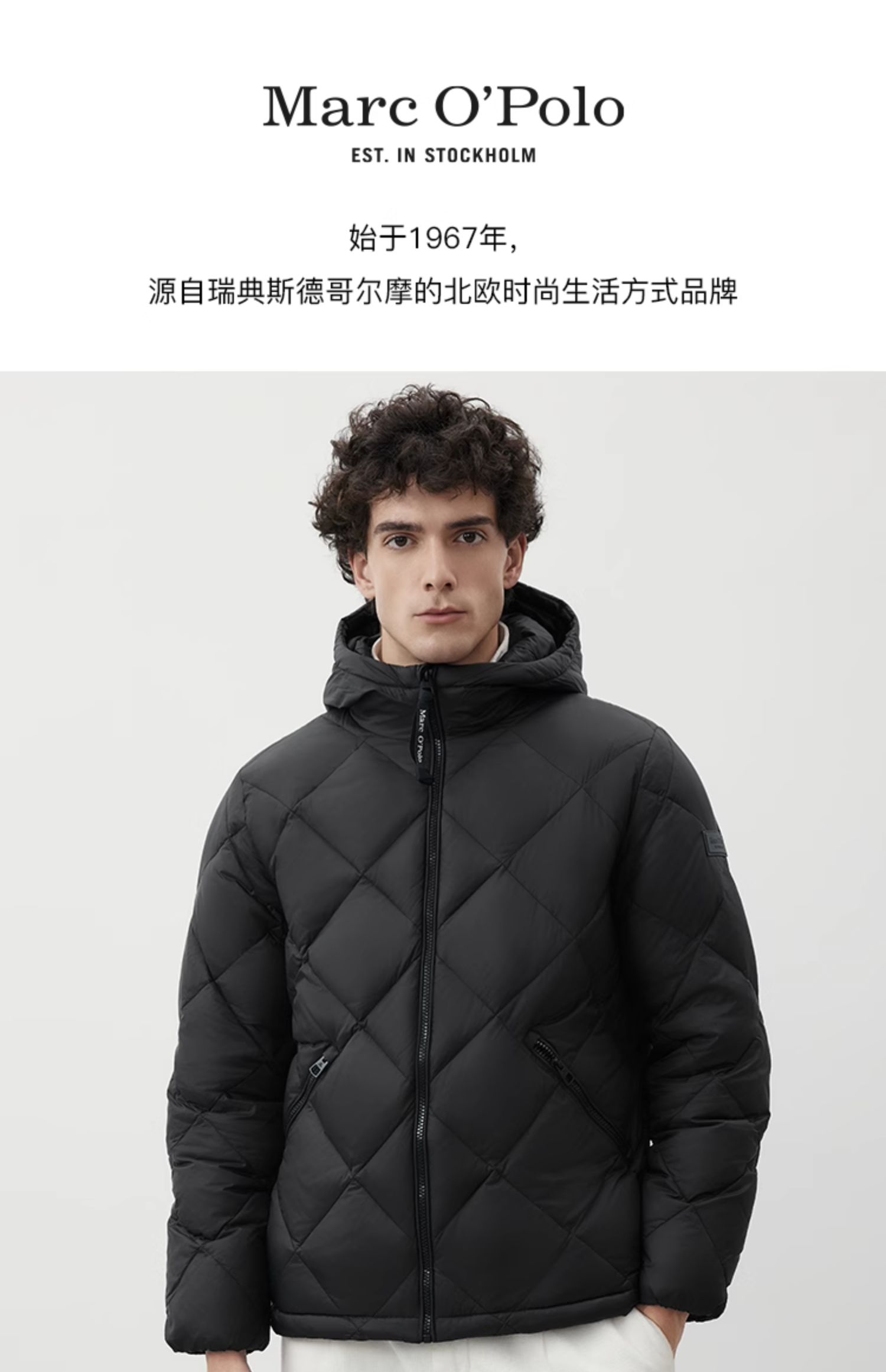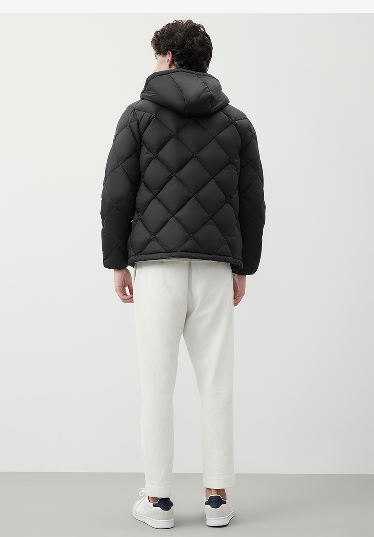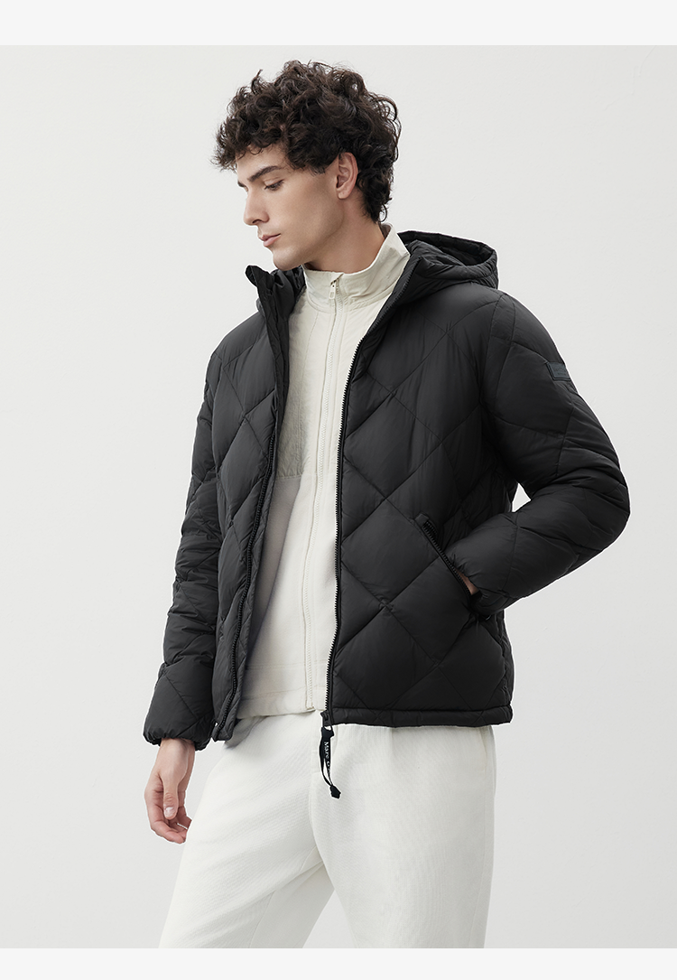 Marc O'Polo/MOP2024冬季新款高级感菱形格保暖连帽羽绒服外套男