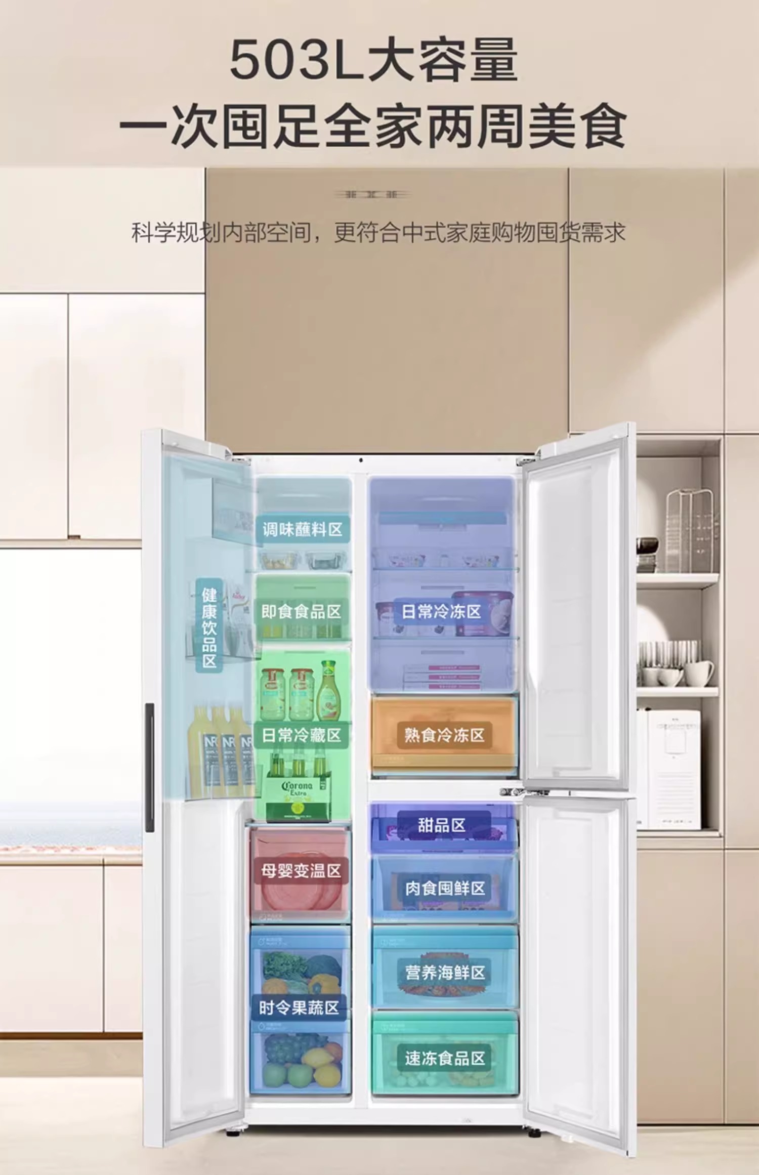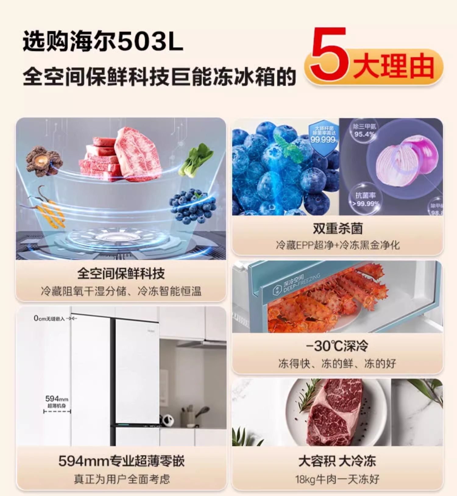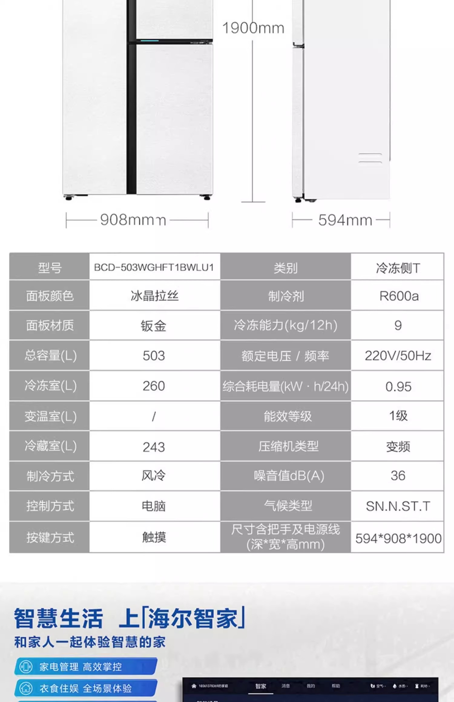 海尔503L双开三门零嵌入家用风冷无霜电冰箱一级能效BCD-503WGHFT1BWLU1