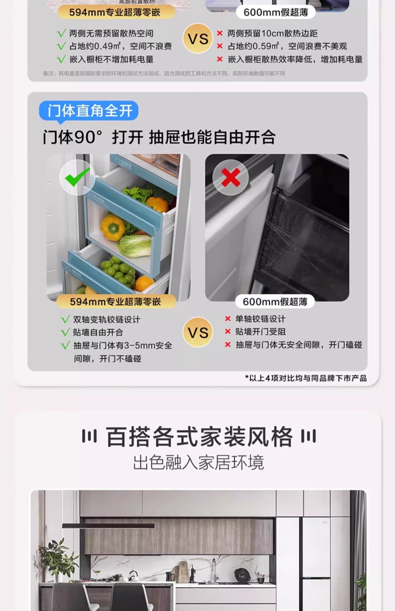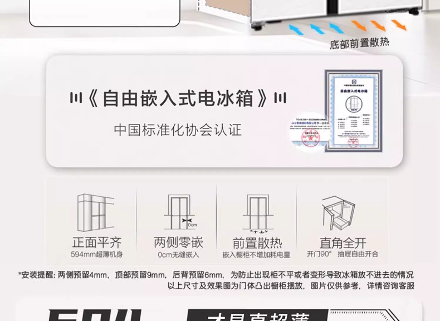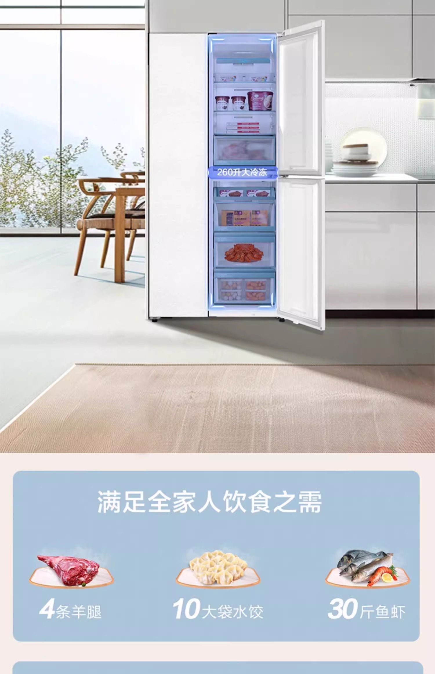 海尔503L双开三门零嵌入家用风冷无霜电冰箱一级能效BCD-503WGHFT1BWLU1