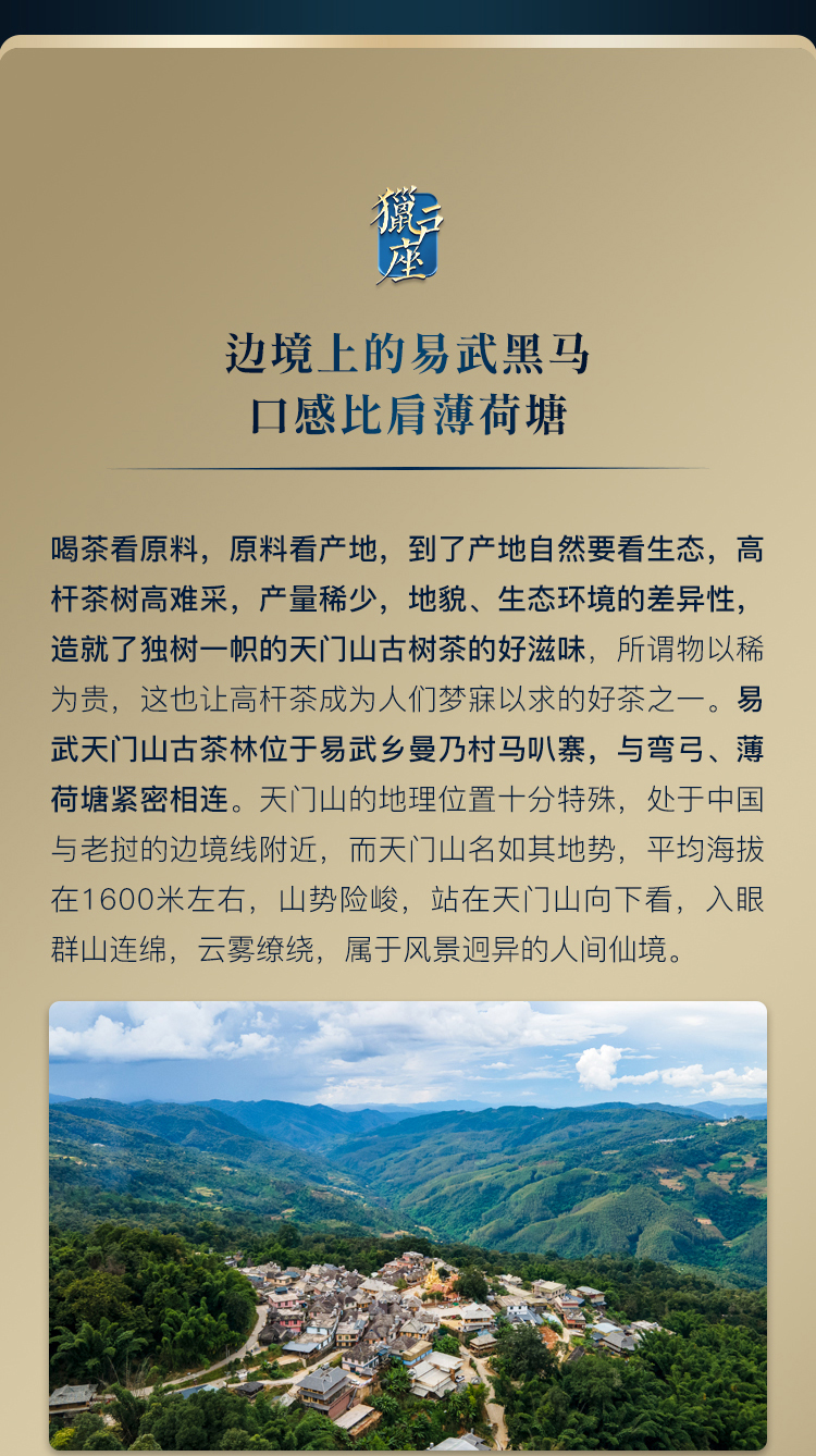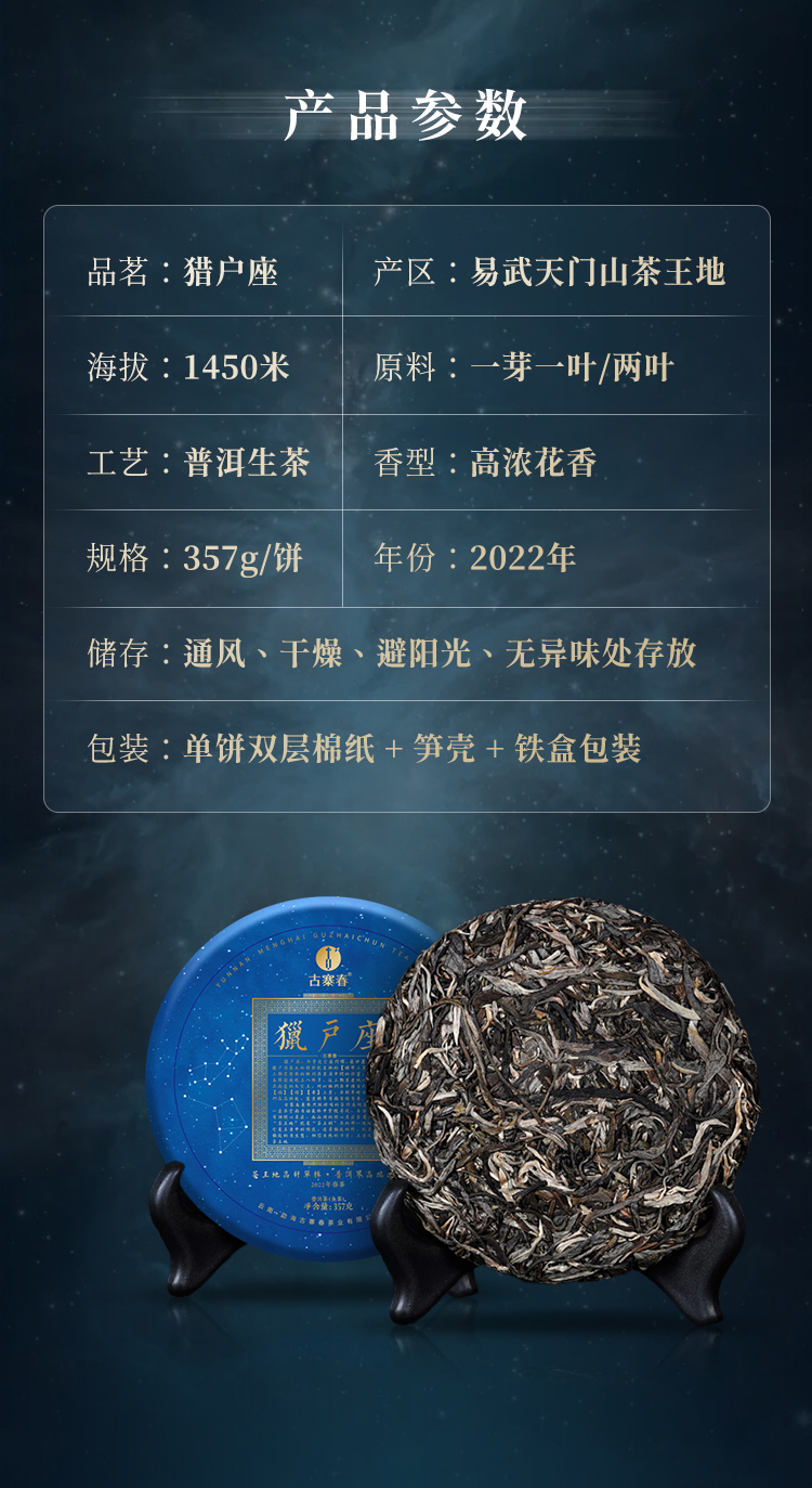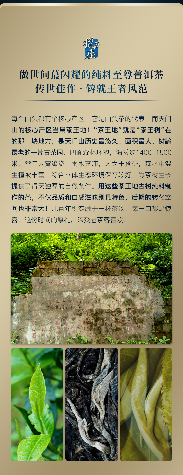 【猎户座】2022年天门山茶王地鼎级纯料之巅Z接近茶王树口感普洱茶生茶云南易武I类高杆古树357g/饼