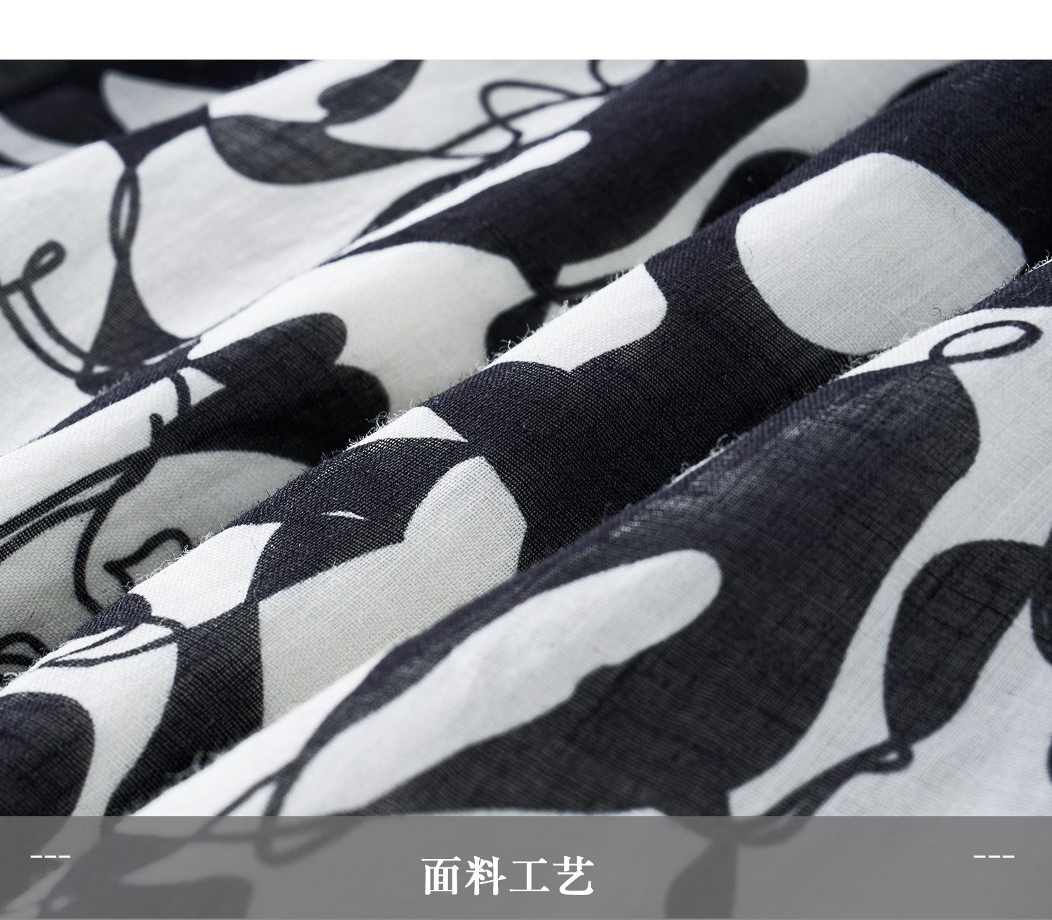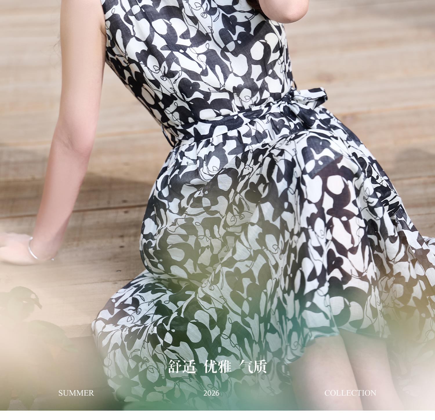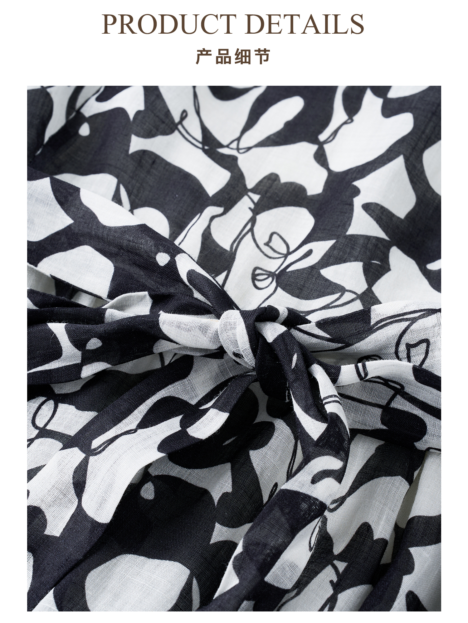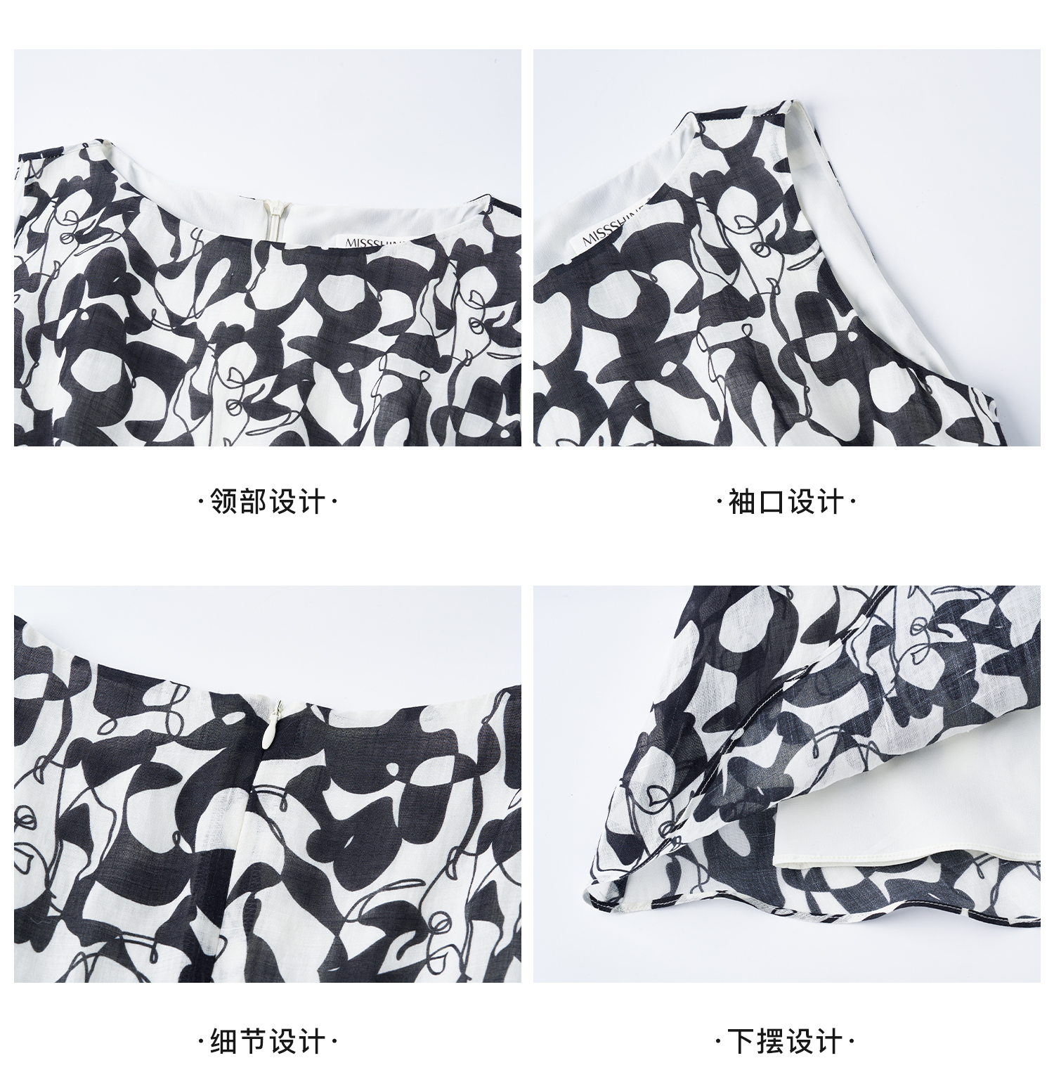 苎麻天丝 米思阳2026夏季新款优雅黑白抽象印花大圆领连衣裙中长款裙子女6138