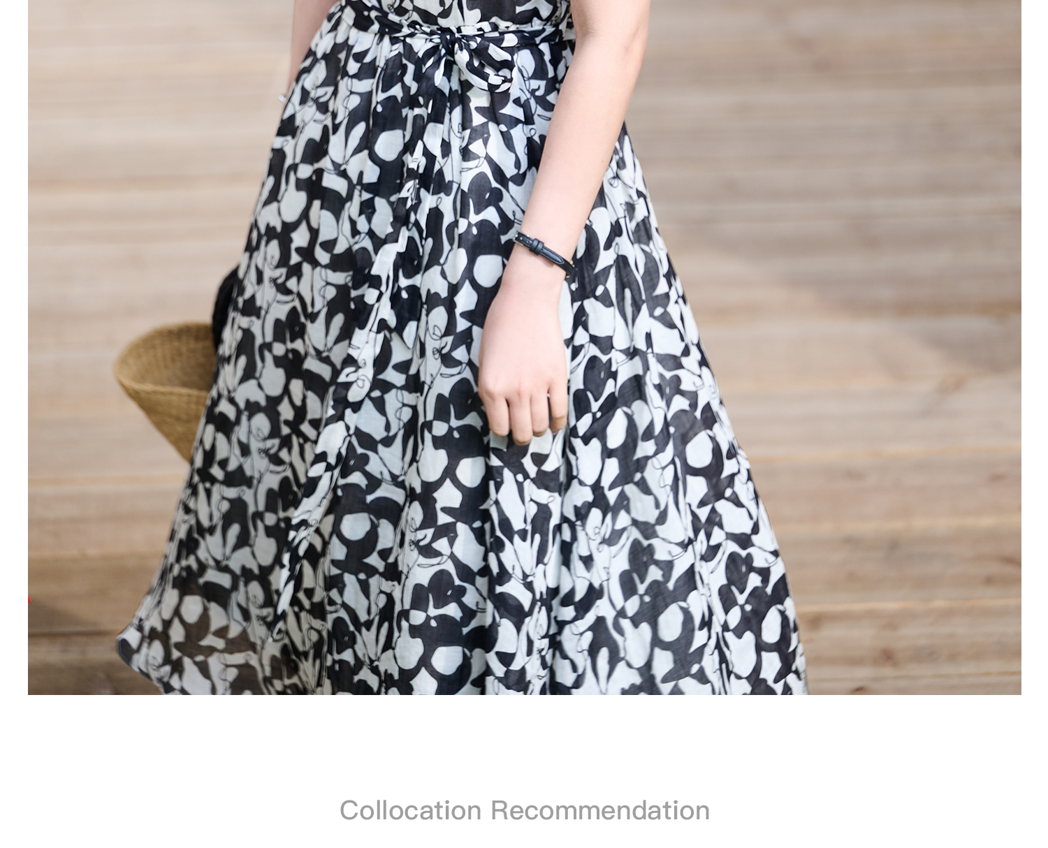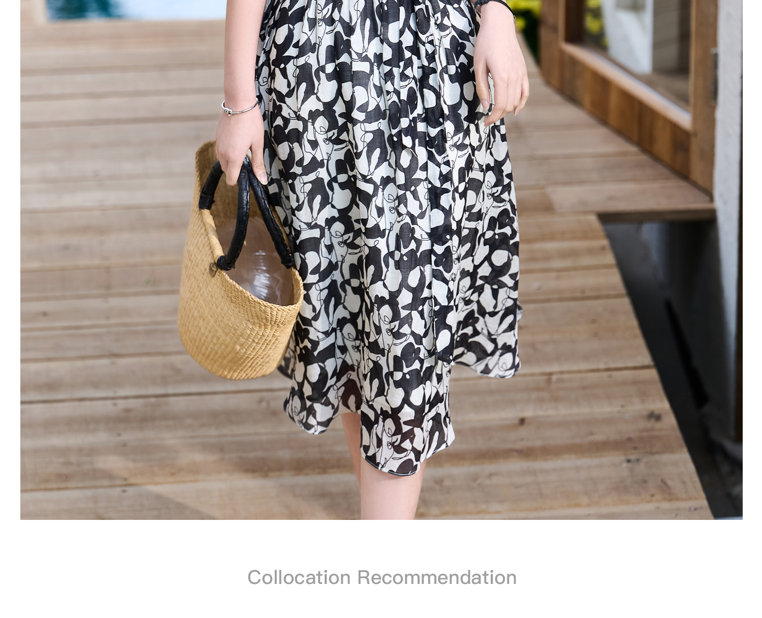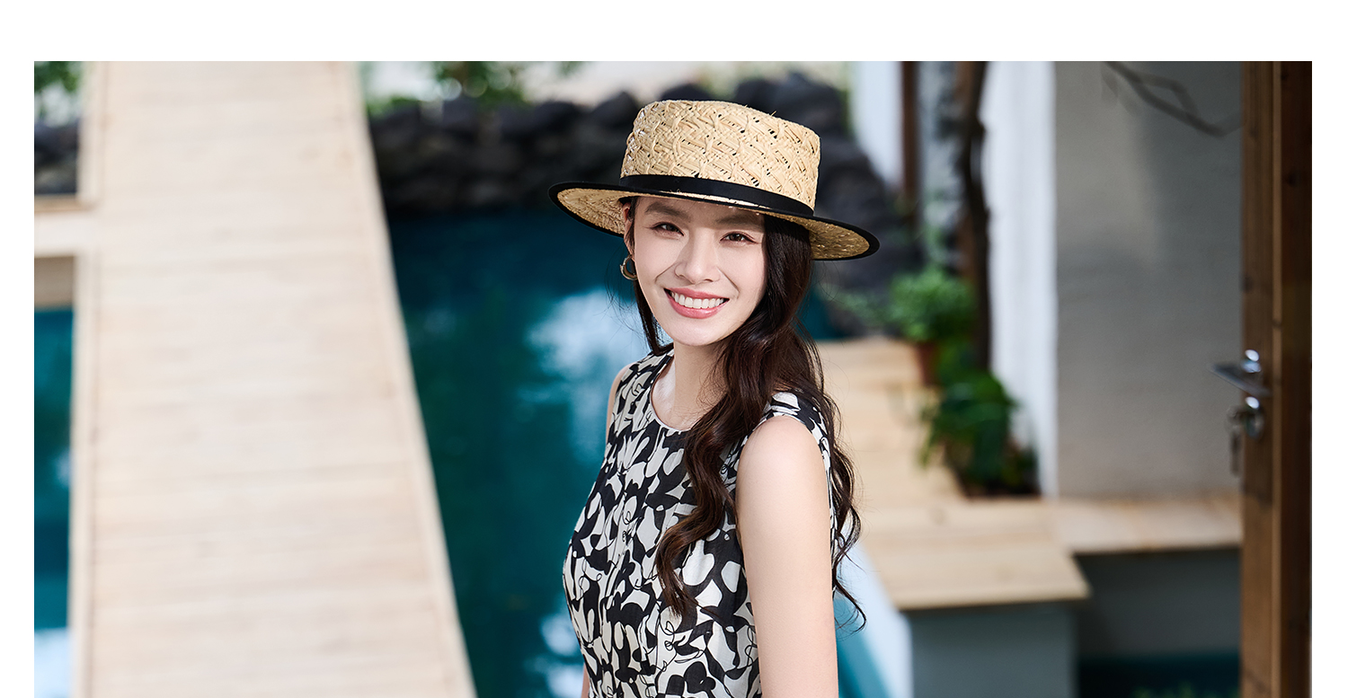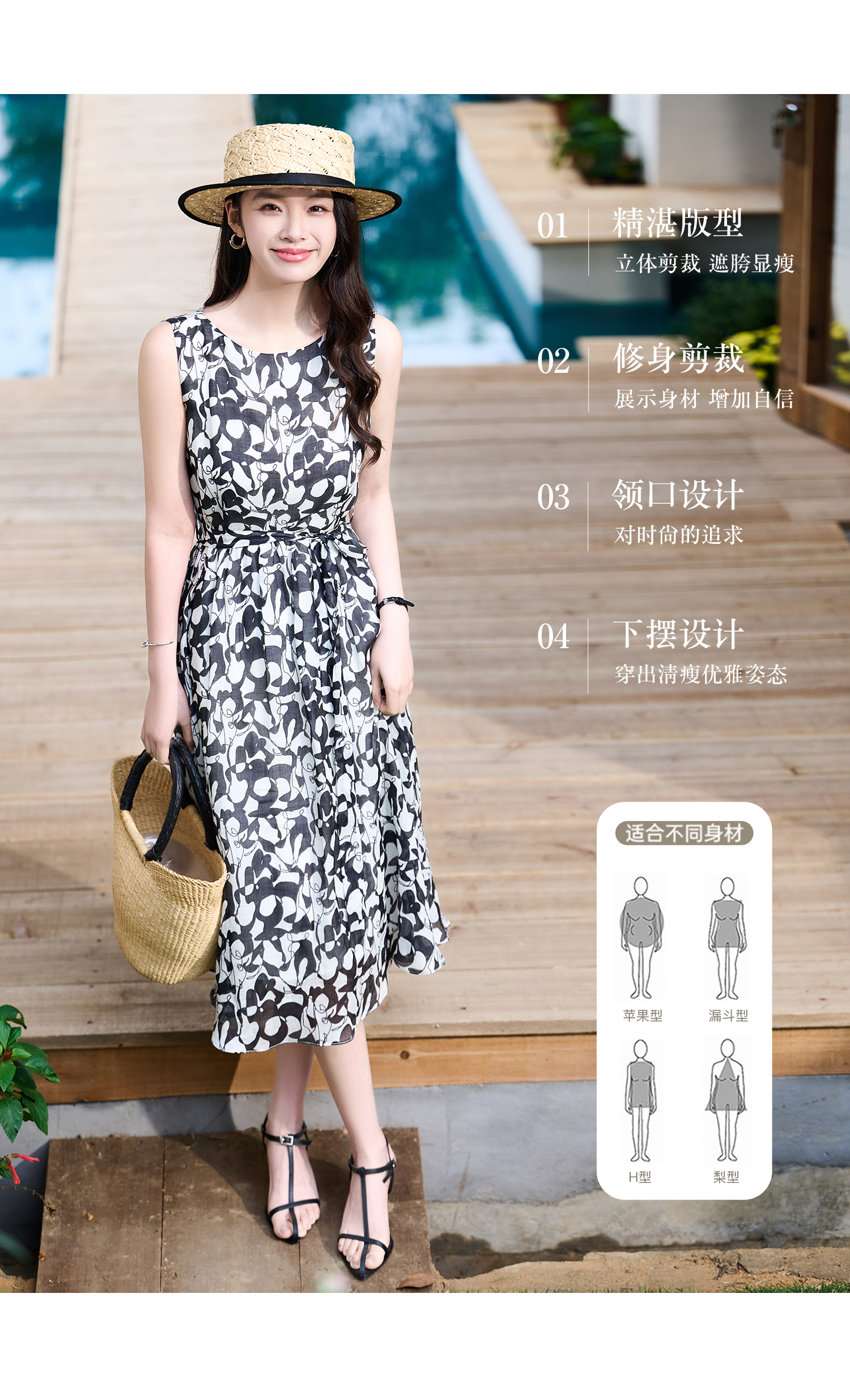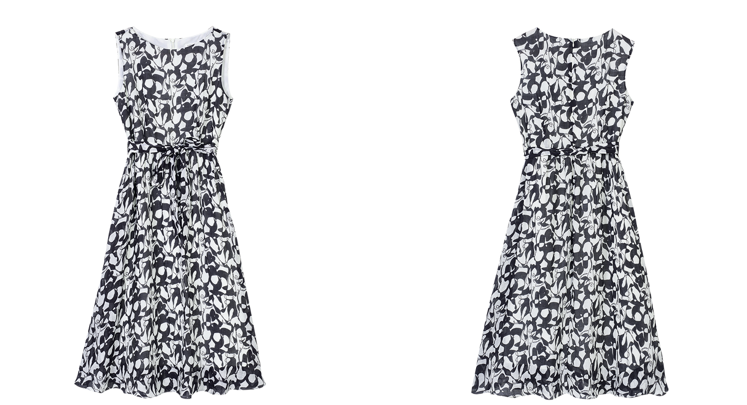 苎麻天丝 米思阳2026夏季新款优雅黑白抽象印花大圆领连衣裙中长款裙子女6138