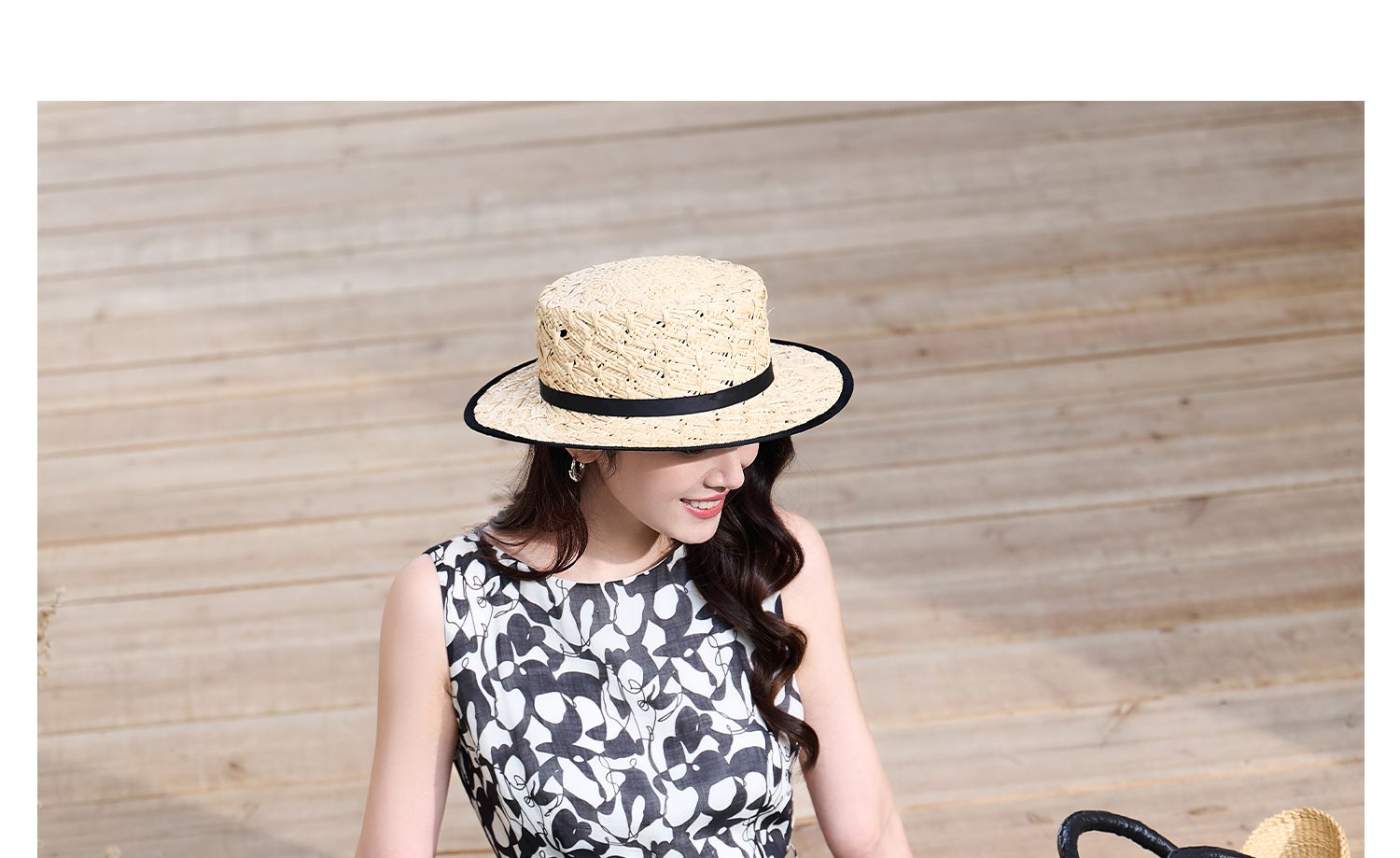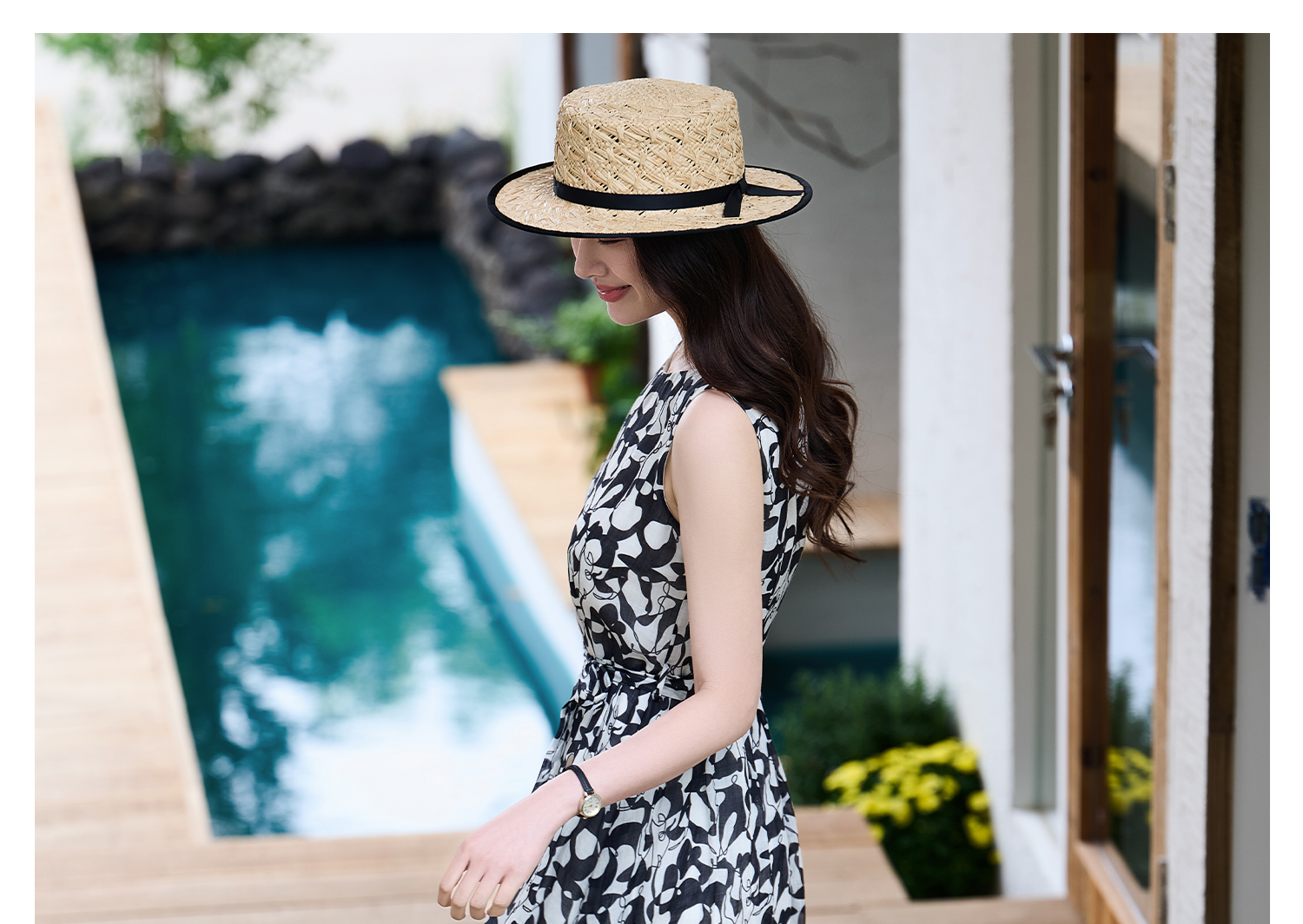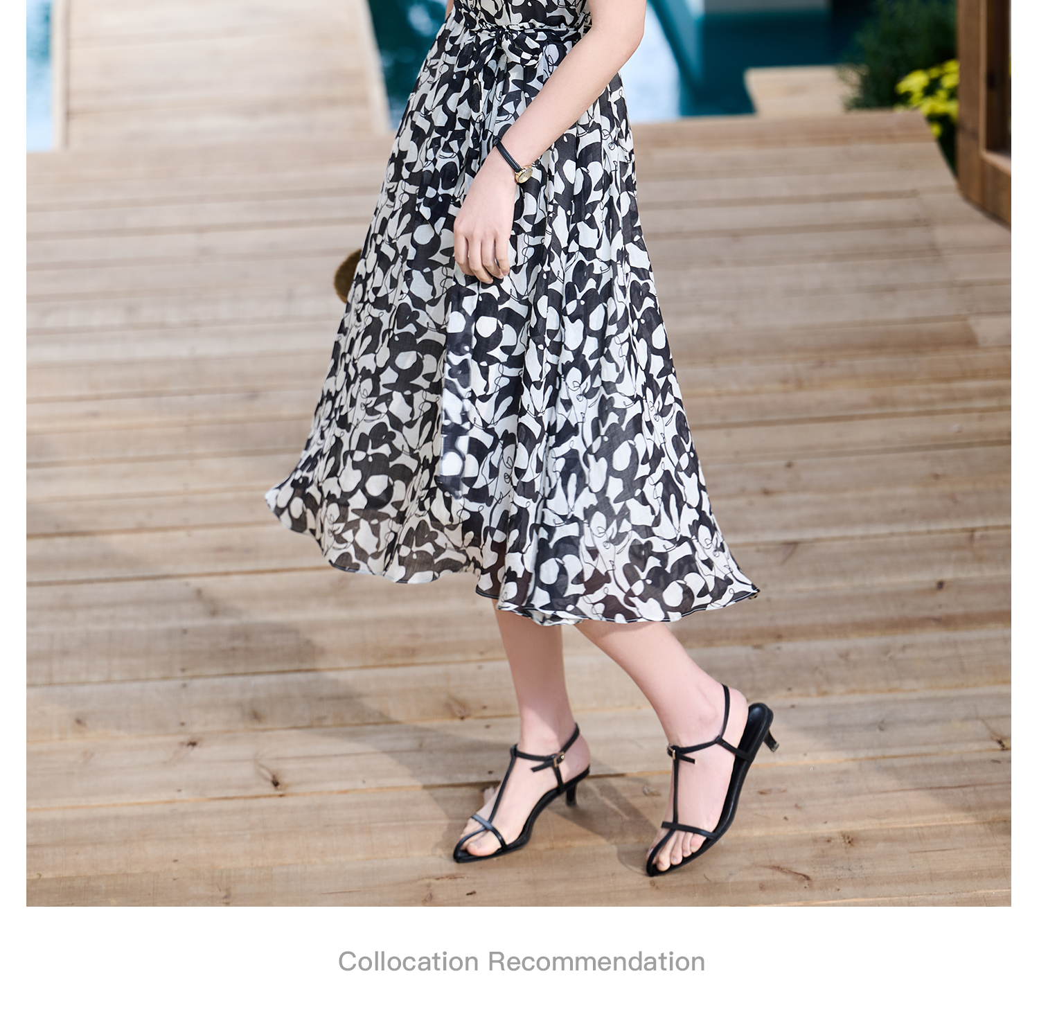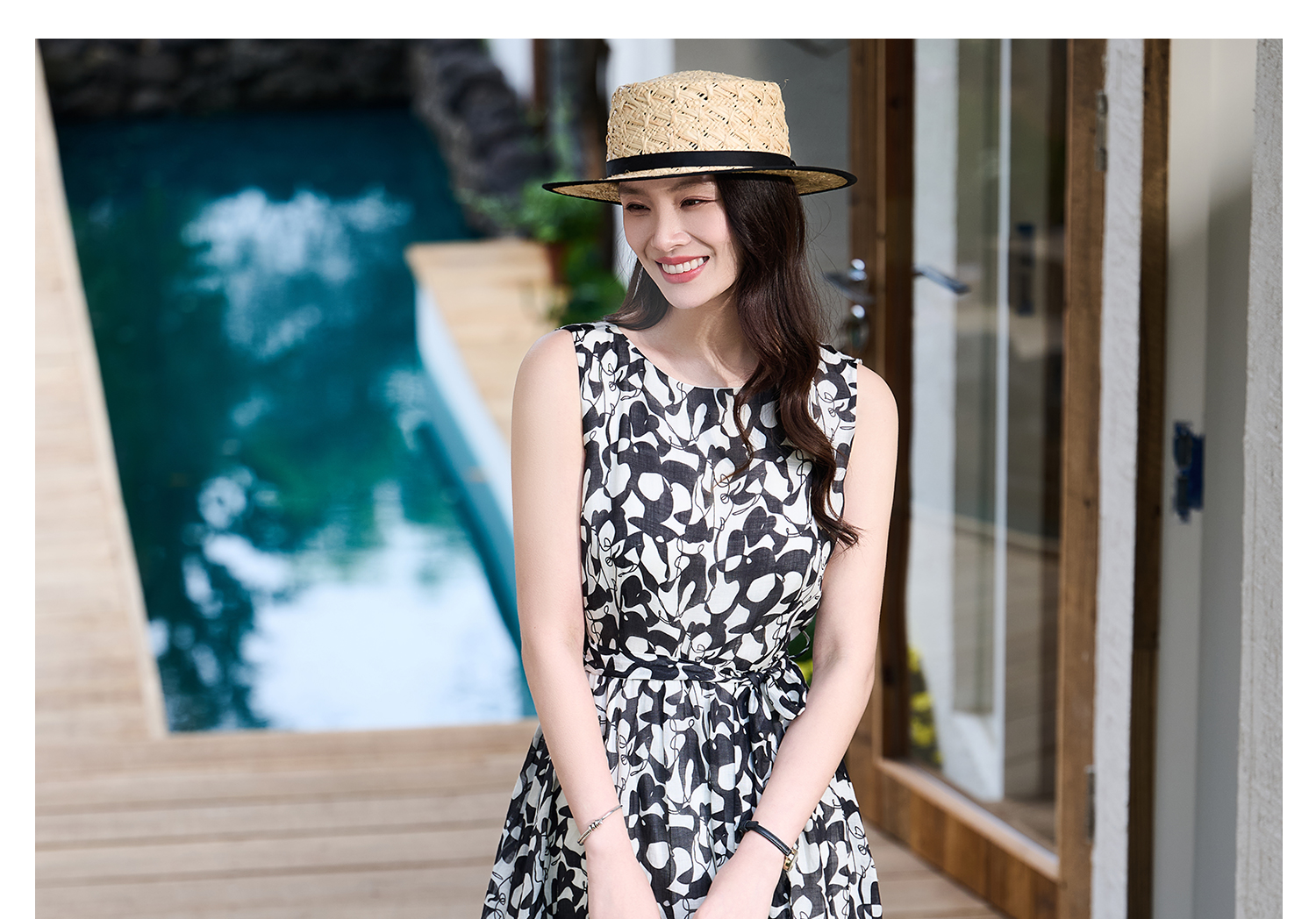 苎麻天丝 米思阳2026夏季新款优雅黑白抽象印花大圆领连衣裙中长款裙子女6138