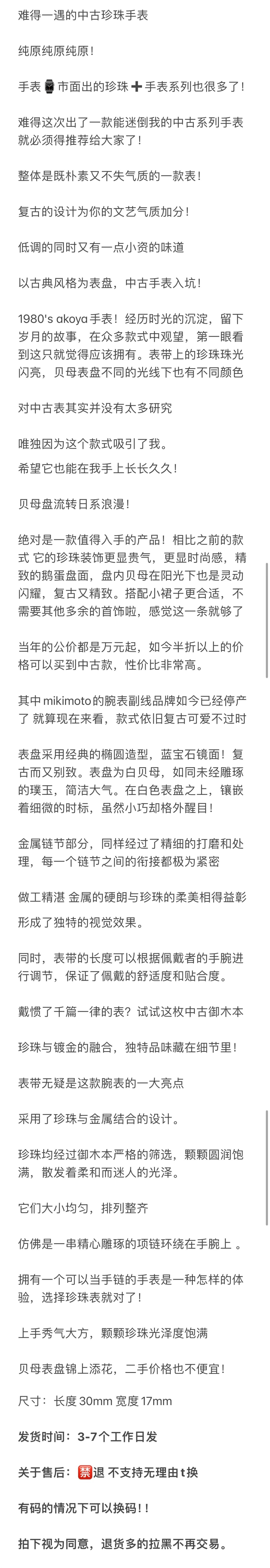 MIKI复古珍珠手表 贝母表盘 超美女士石英腕表