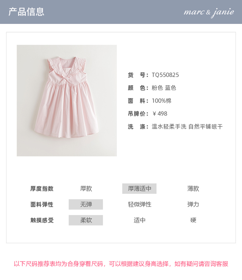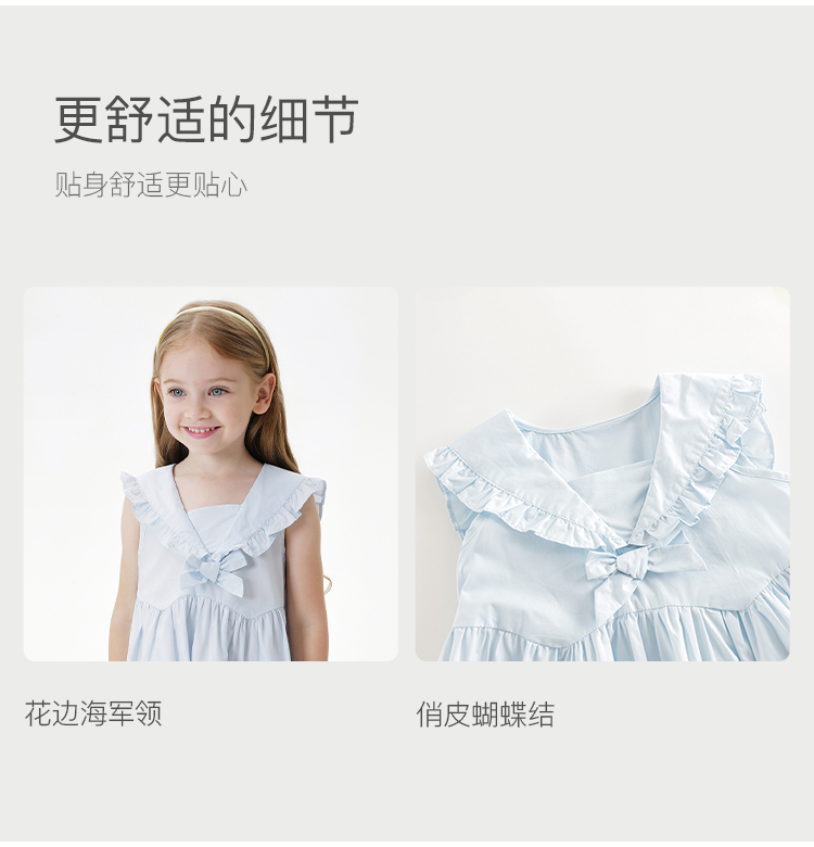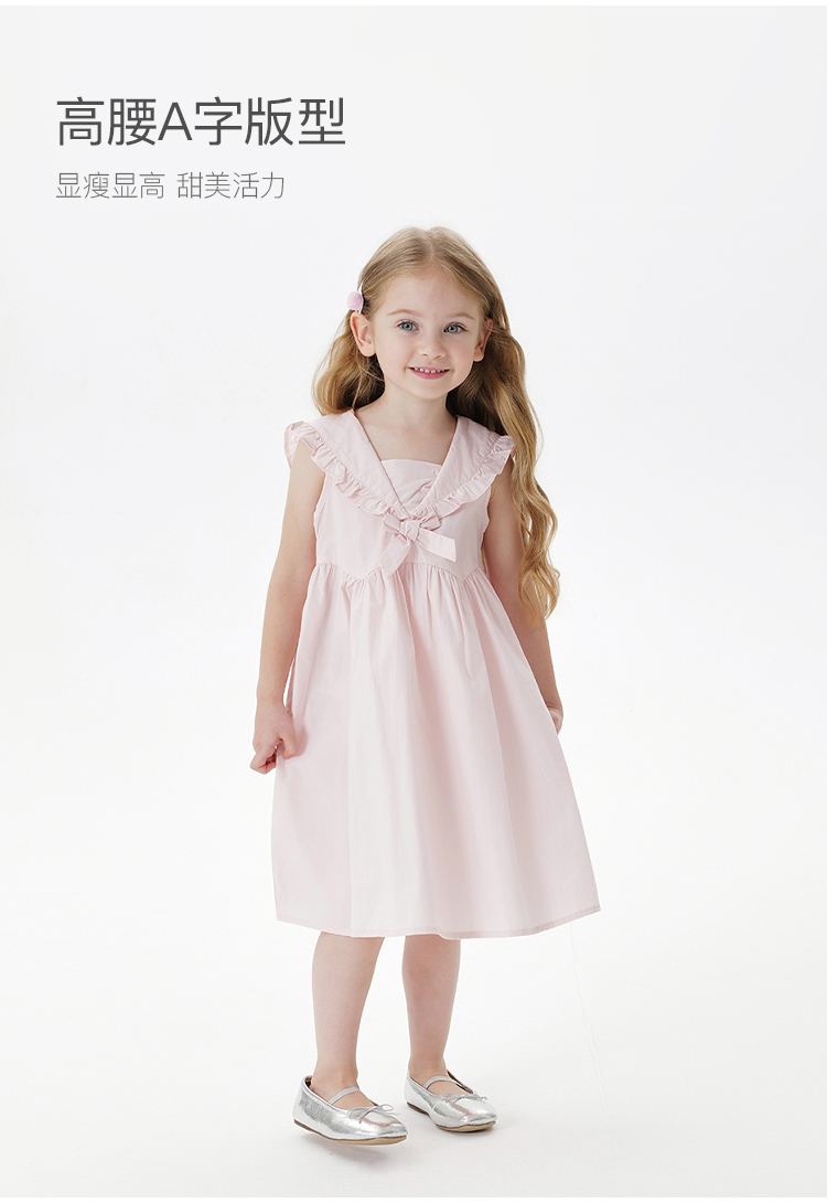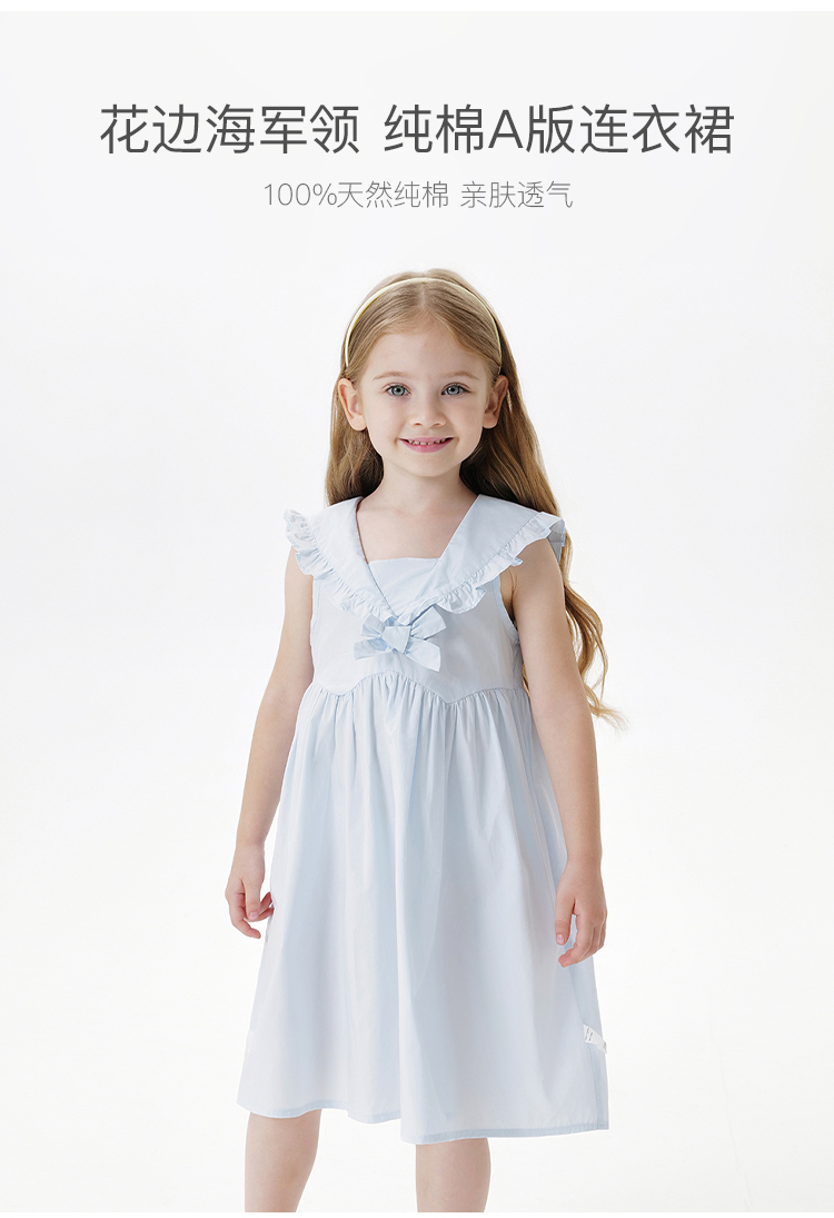 马克珍妮女童花边海军领连衣裙 儿童A版裙子2025年夏装新款550825