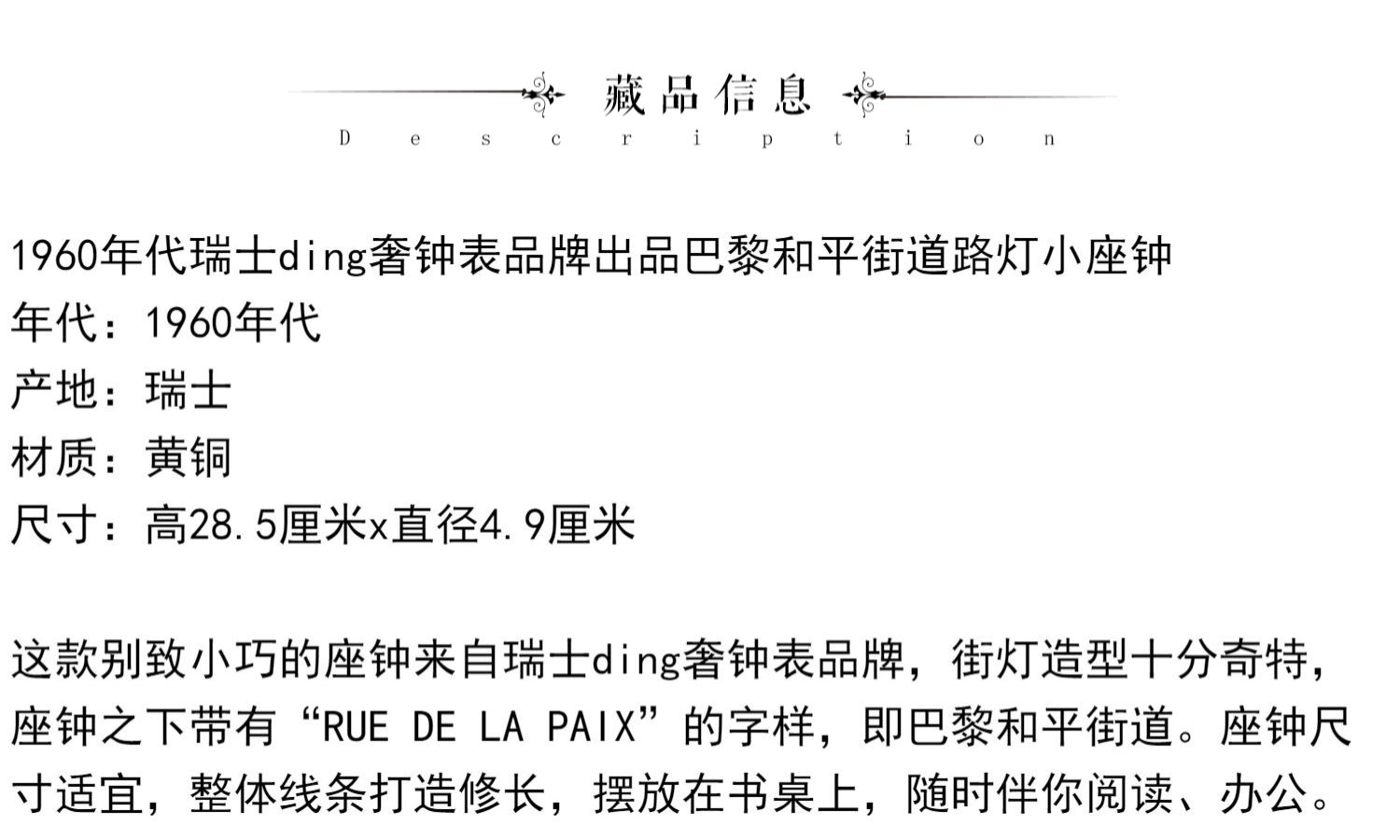 独角鹿西洋古董摆件瑞士奢侈钟表品牌出品巴黎和平街道路灯小座钟