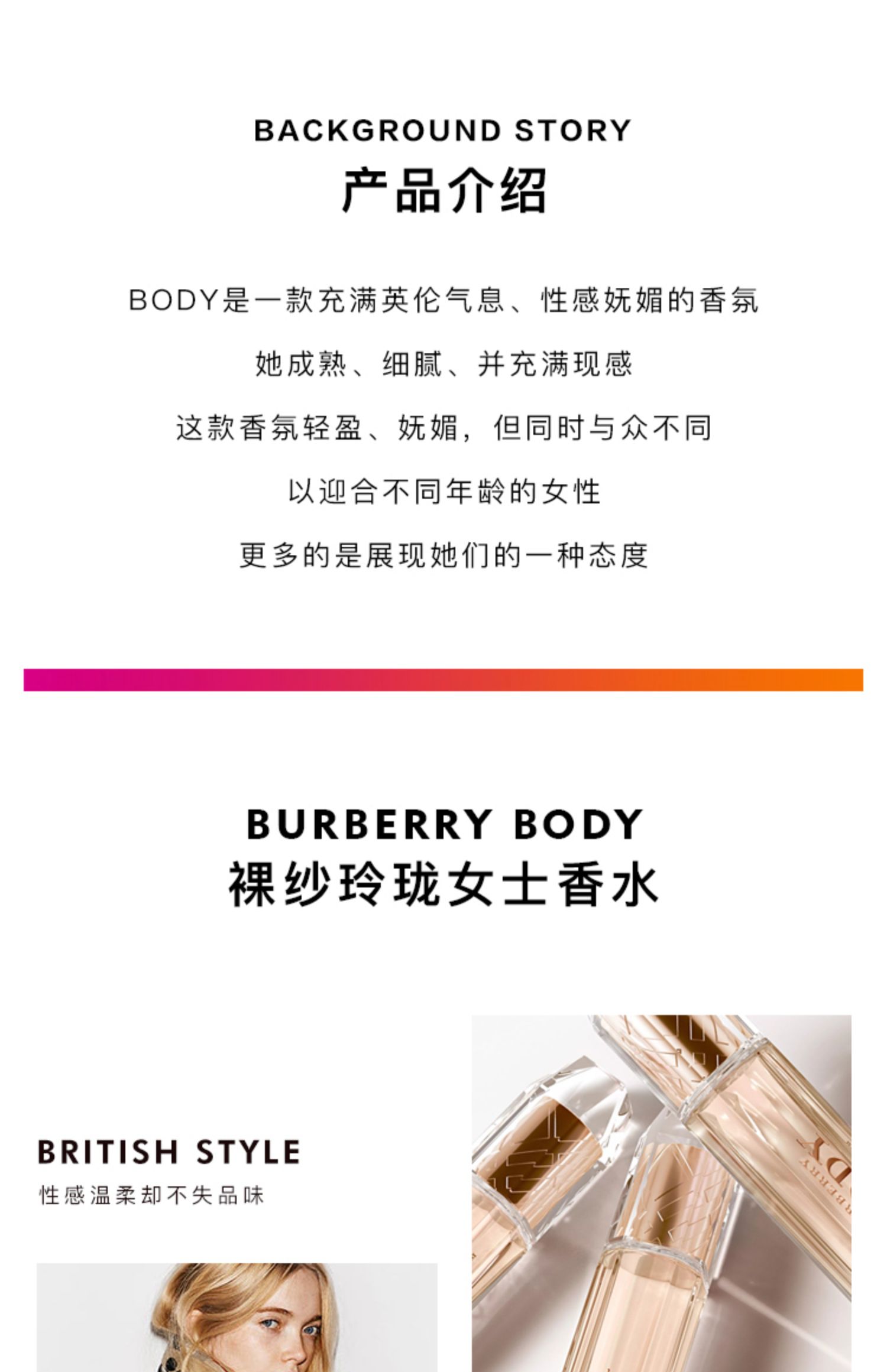 1LPY BURBERRY/博柏利清甜裸纱玲珑柔情Burberry Body女士香水85ml浓香