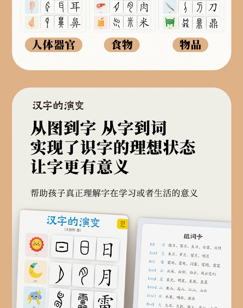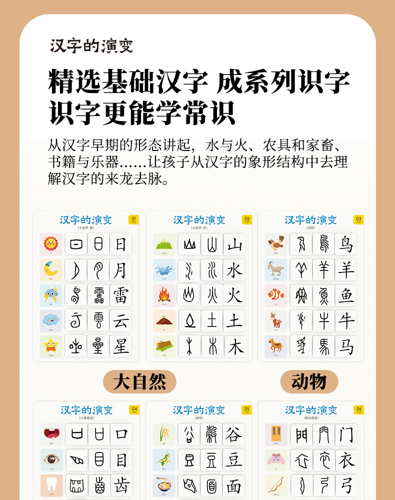 【小小汉字变变变】汉字的演变 儿童认字 识字 卡片 启蒙 幼儿园 早教安静书 玩具