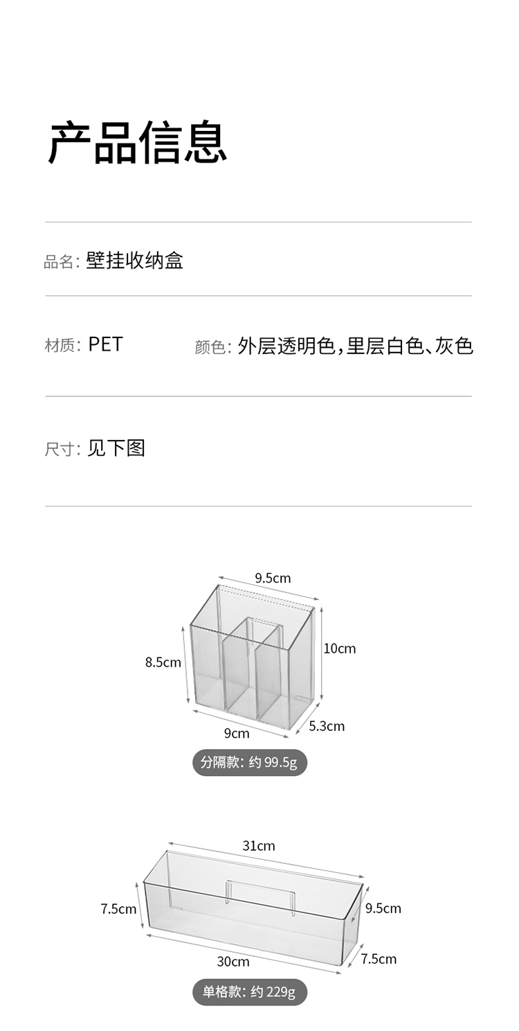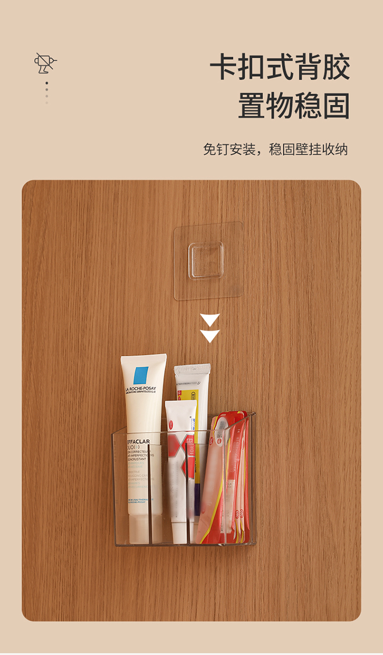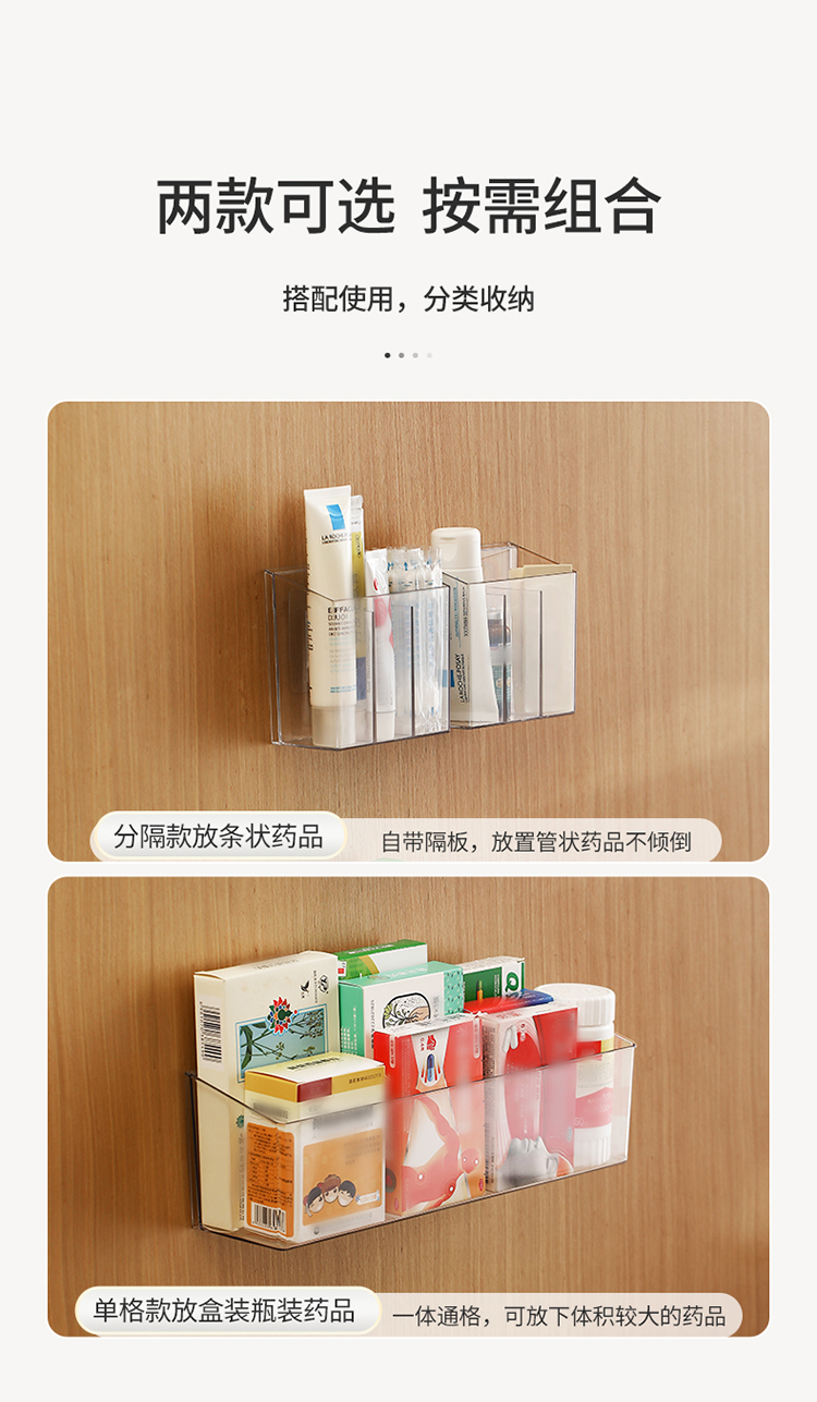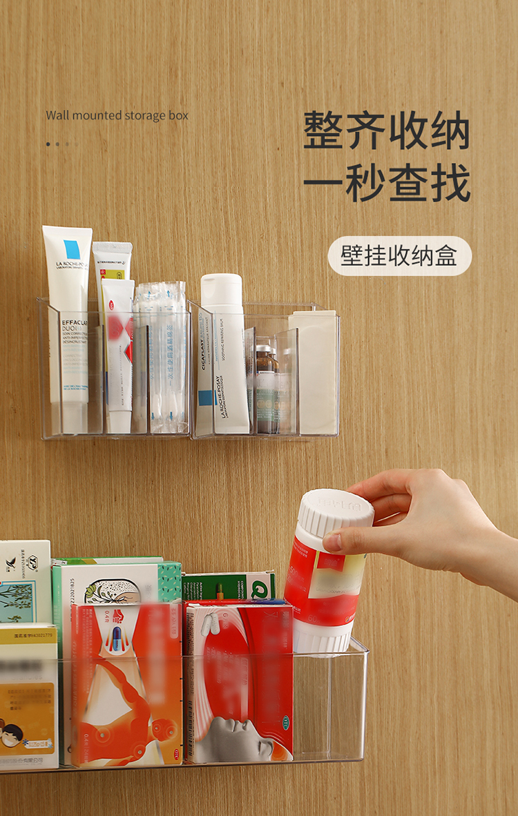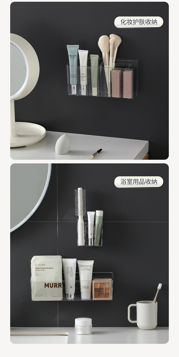 FaSoLa壁挂收纳盒卫生间透明分隔化妆品面膜口红分格浴室柜置物架子