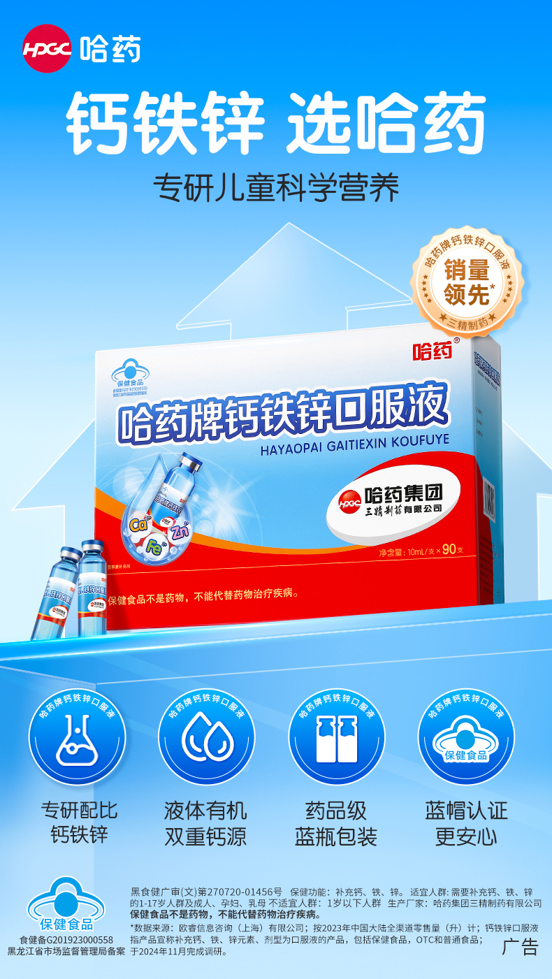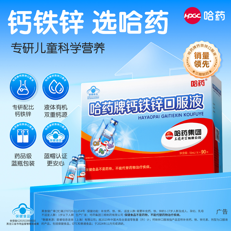 【多妈团购 哈药牌钙铁锌口服液90支装 】甜甜的梨汁口味~双重有机钙,更温和好吸收,孩子爱喝,补充钙、铁、锌, 科学配比,孩子高高又壮壮-咸喜仓