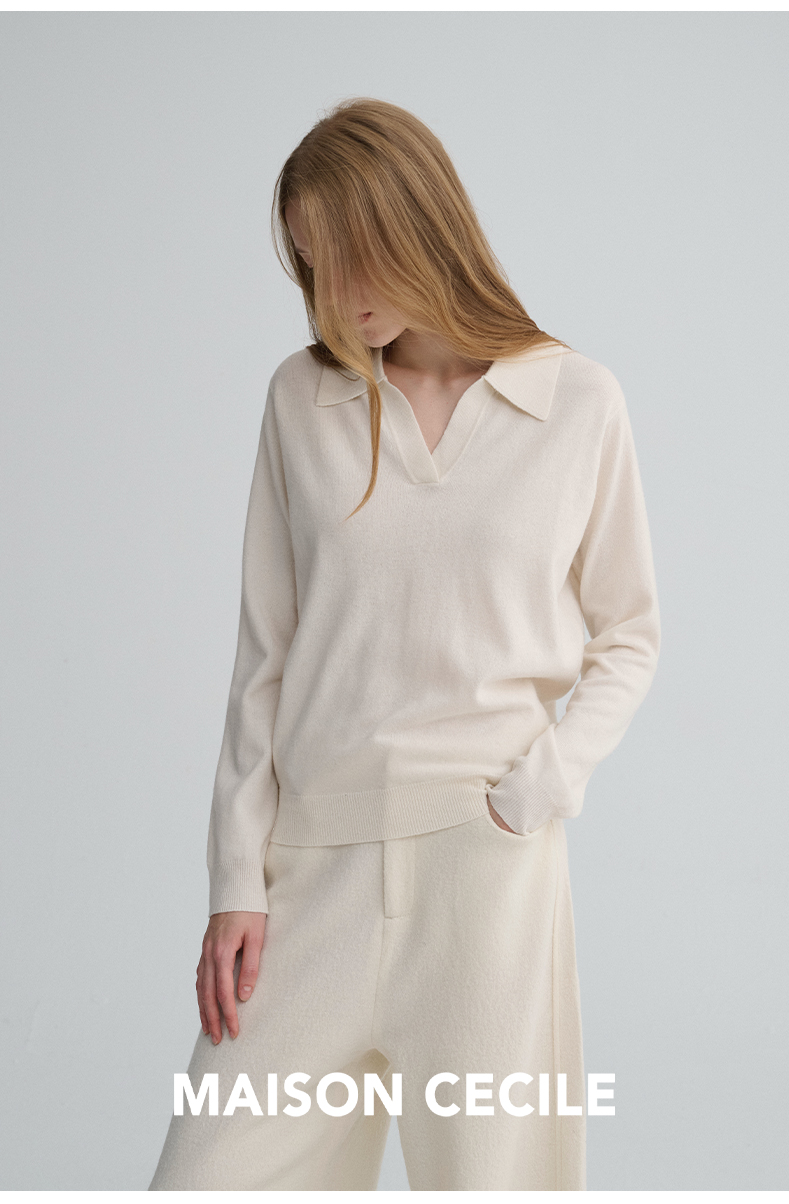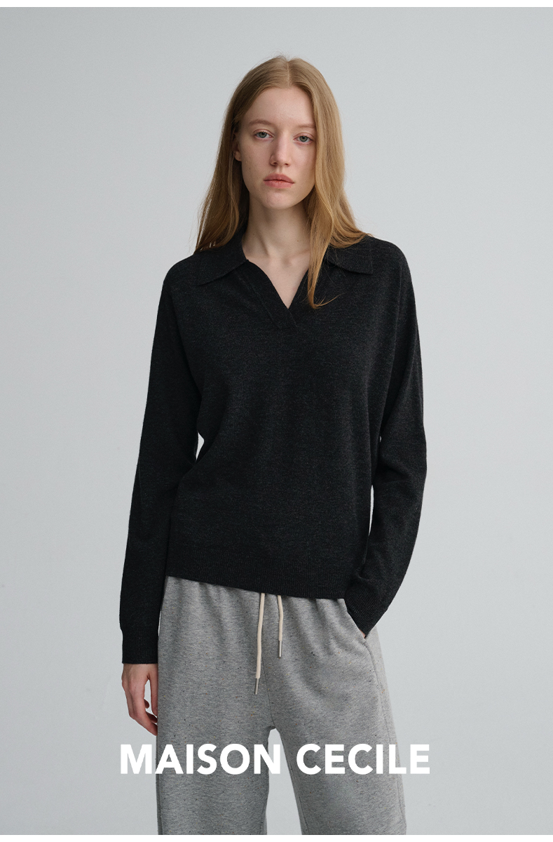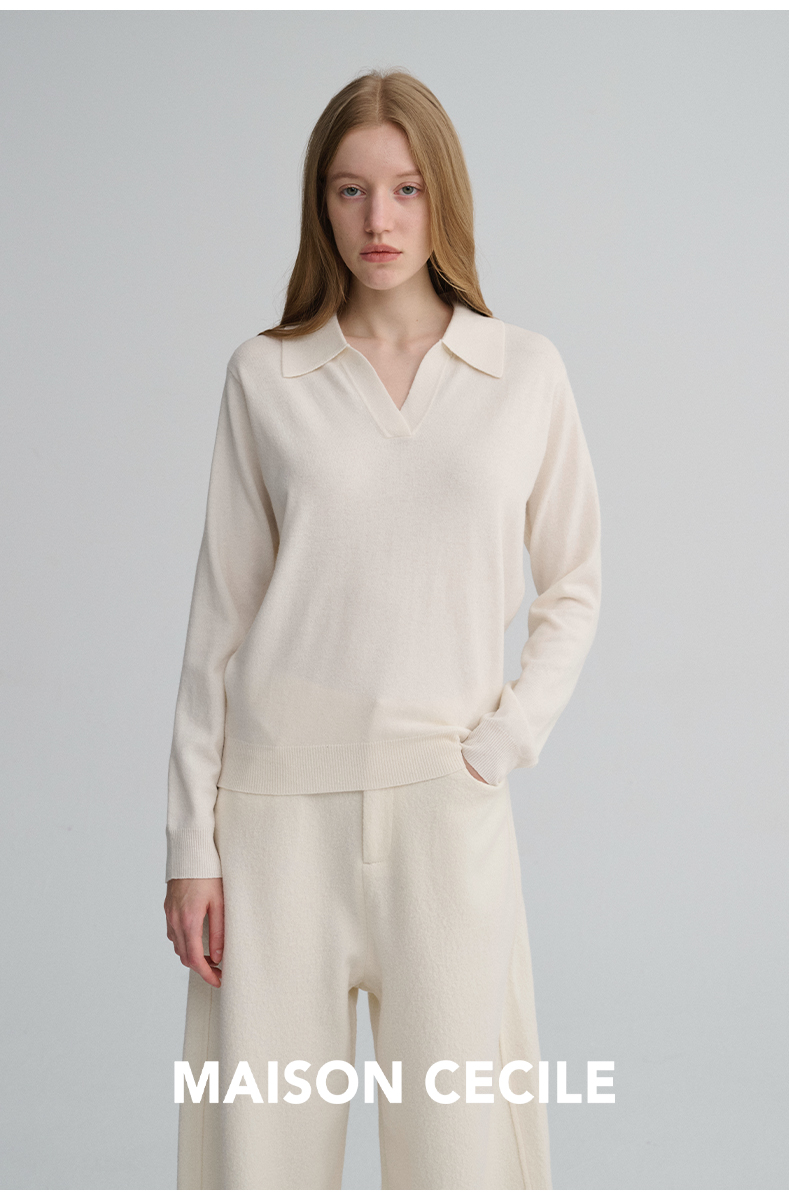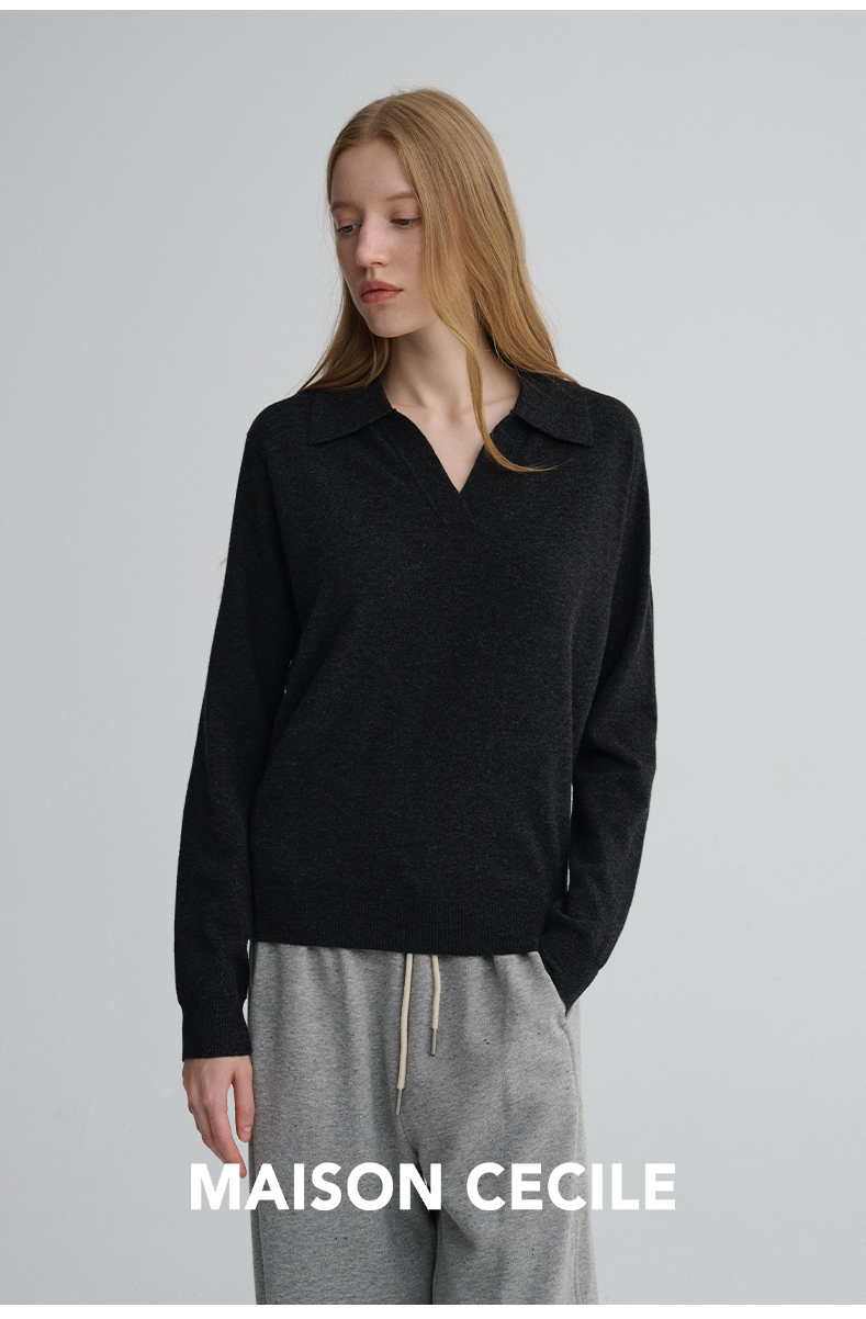 MAISON CECILE 四色|全羊毛品质感复古经典polo松弛百搭针织毛衣