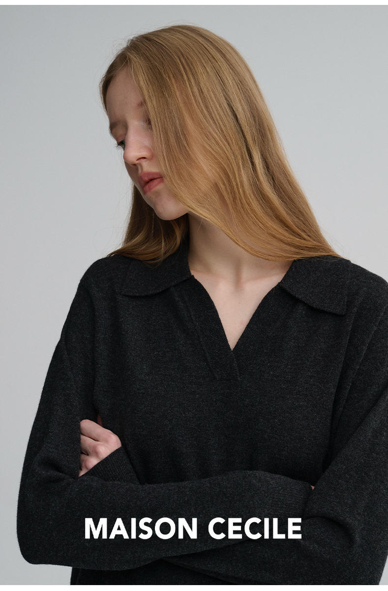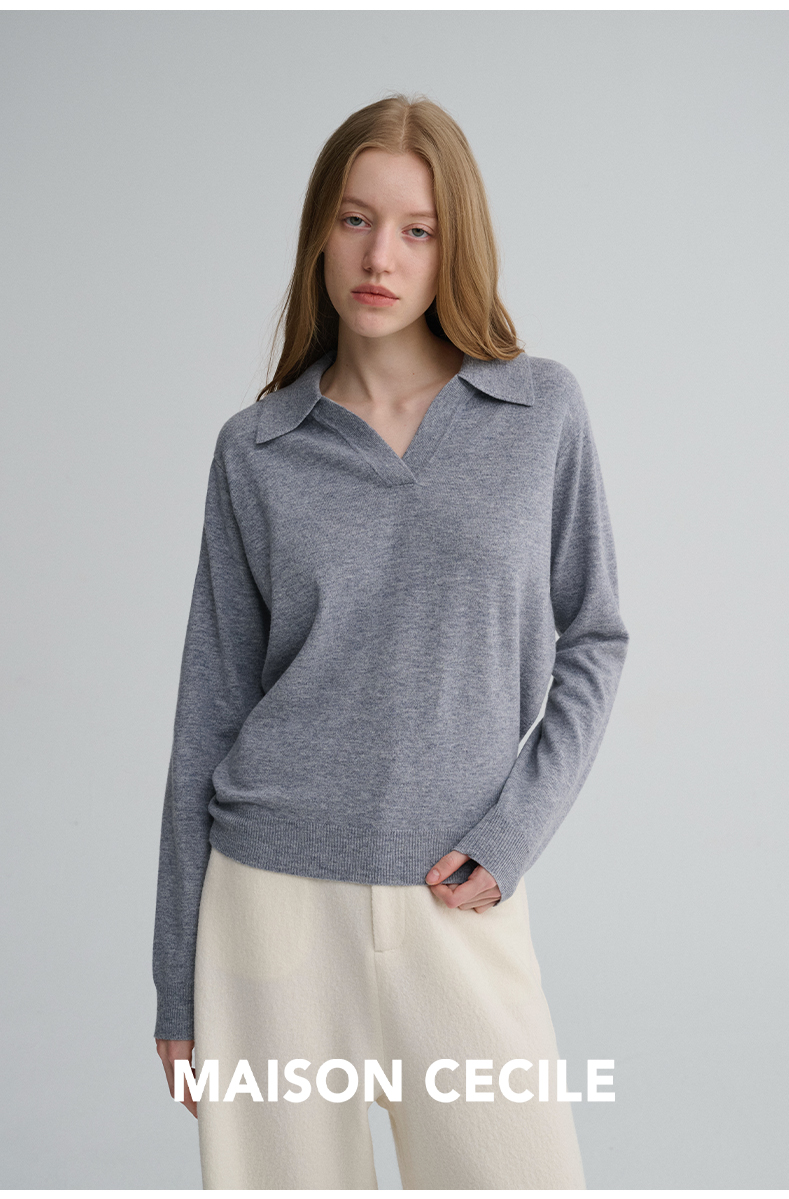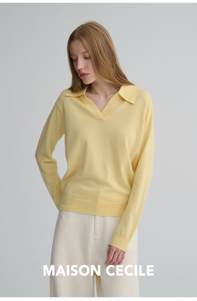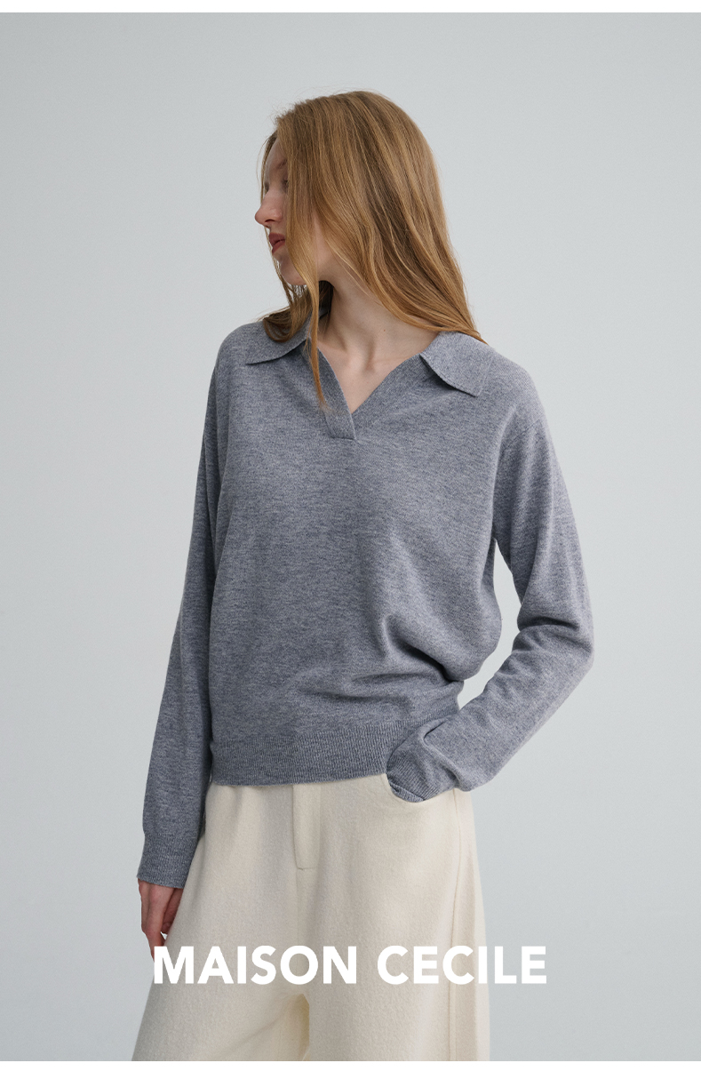 MAISON CECILE 四色|全羊毛品质感复古经典polo松弛百搭针织毛衣